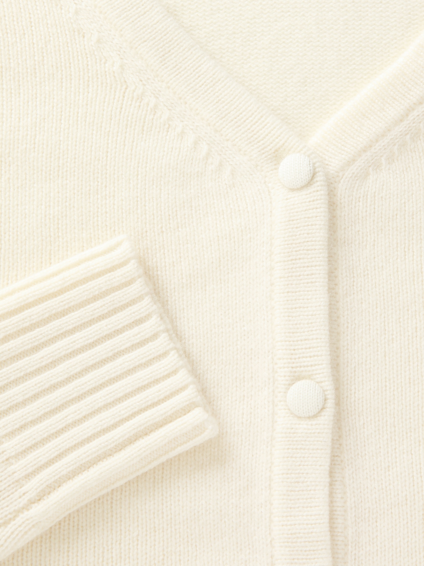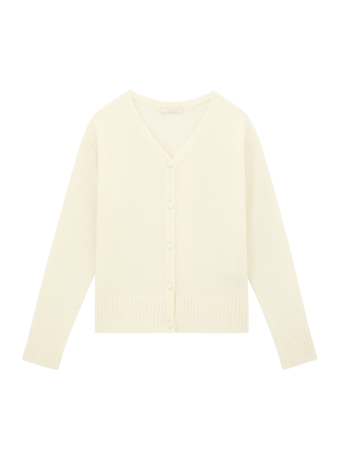 ふくらみのあるカシミヤ混のウール素材を使用した保温性と快適性に優れたニットカーディガン。フロントに施されたクルミボタンが目を惹くポイントに。ふっくらとした素材ながらもVネックにすることでお顔周りをすっきりと見せてくれ、程良くコンパクトなシルエットによってエレガントなエフォートレススタイルを仕上げてくれます。 ・OFF WHITEはやや透け感あり ・ジャストフィット。通常サイズをおすすめします。 ・モデル身長173cm/バスト85cm/ウエスト62cm/ヒップ90cm/38サイズ着用 【お問い合わせ品番】 S738-065
