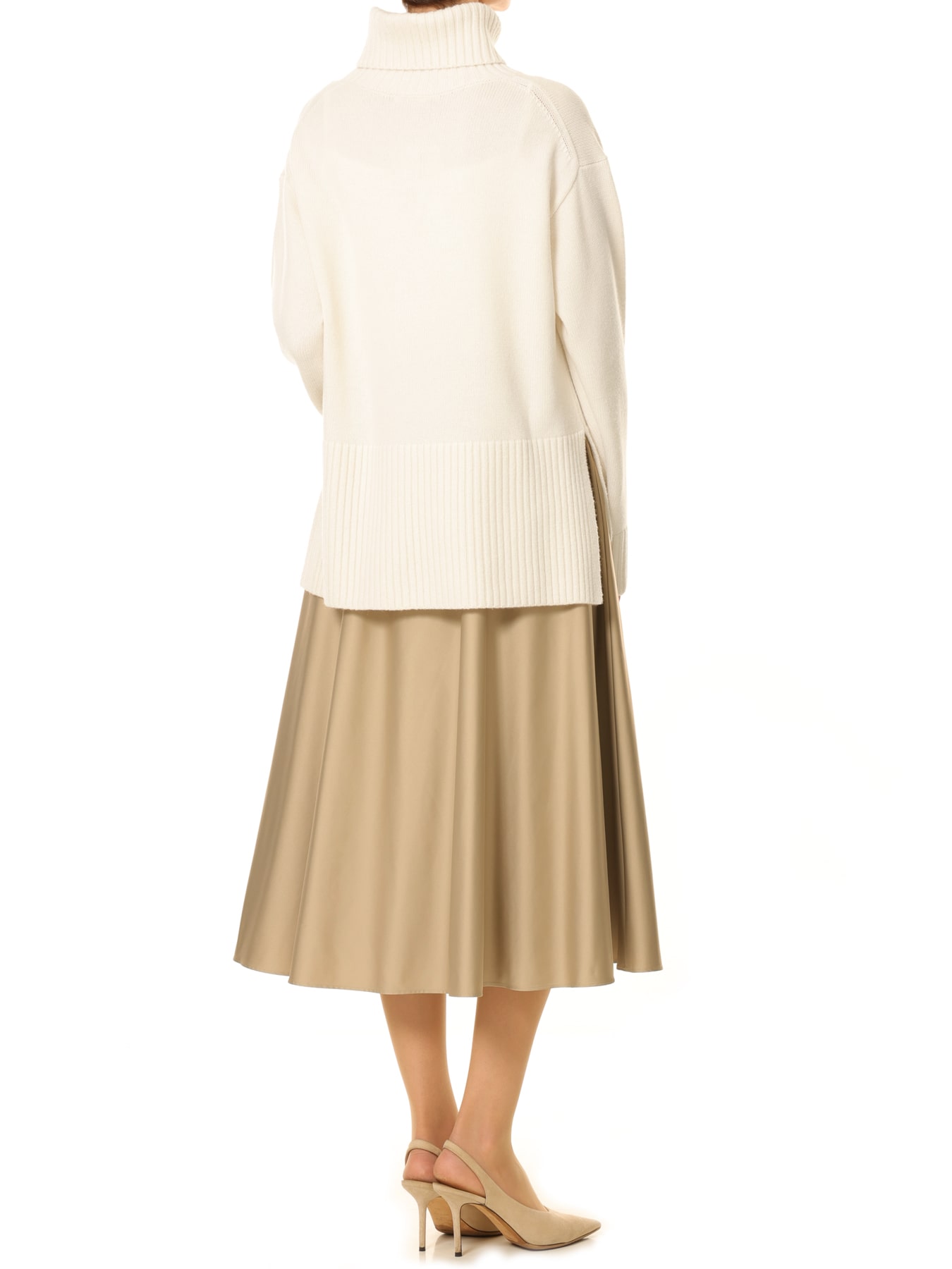ウールカシミヤ裾スリットタートルネックニット