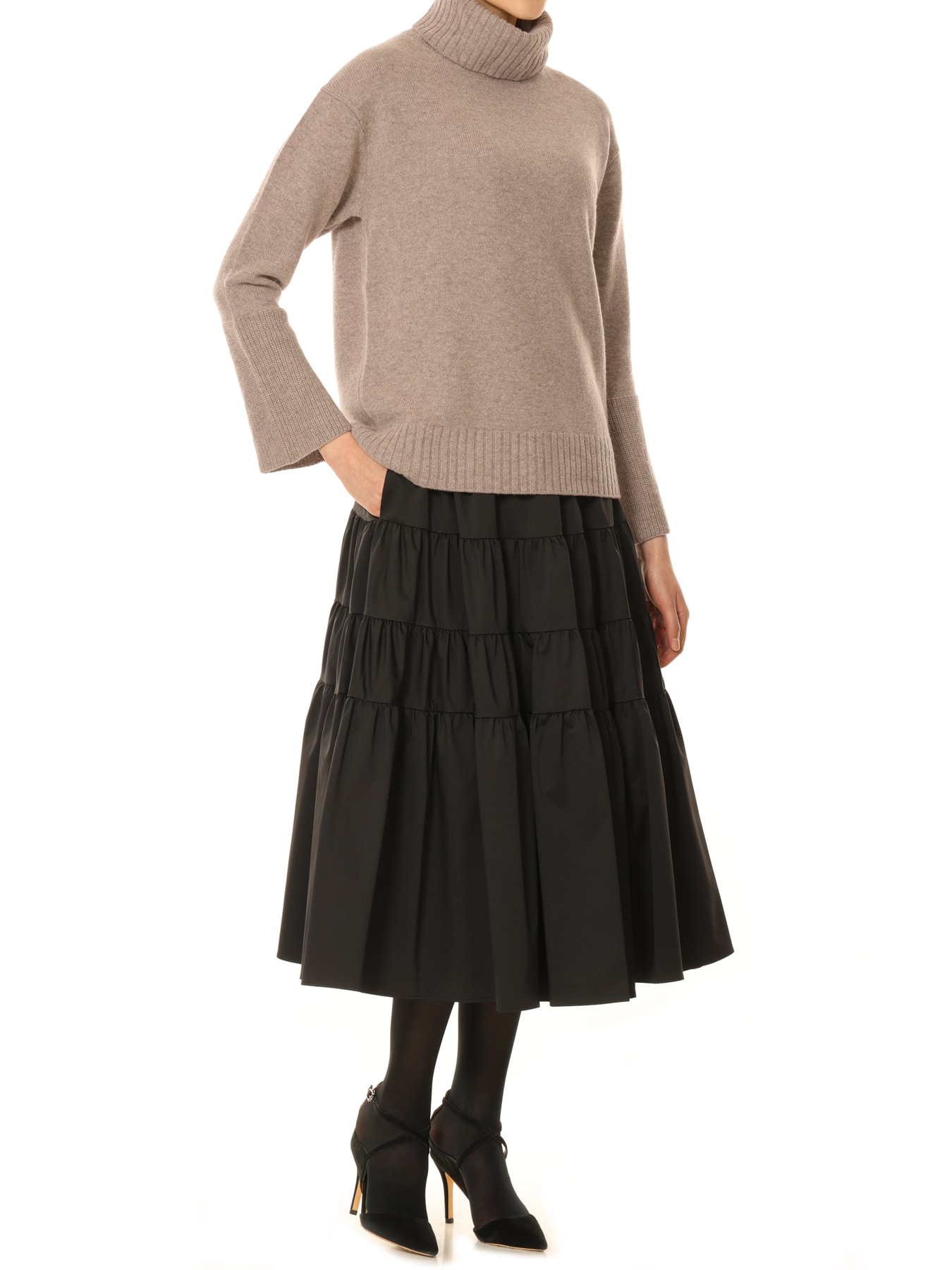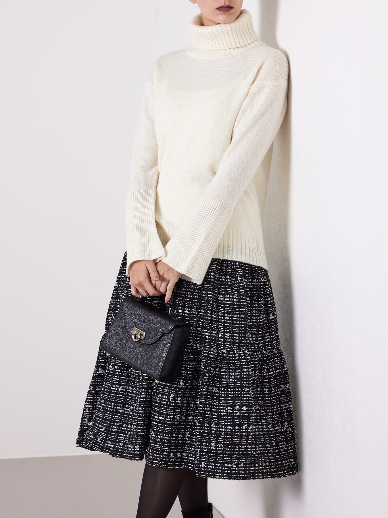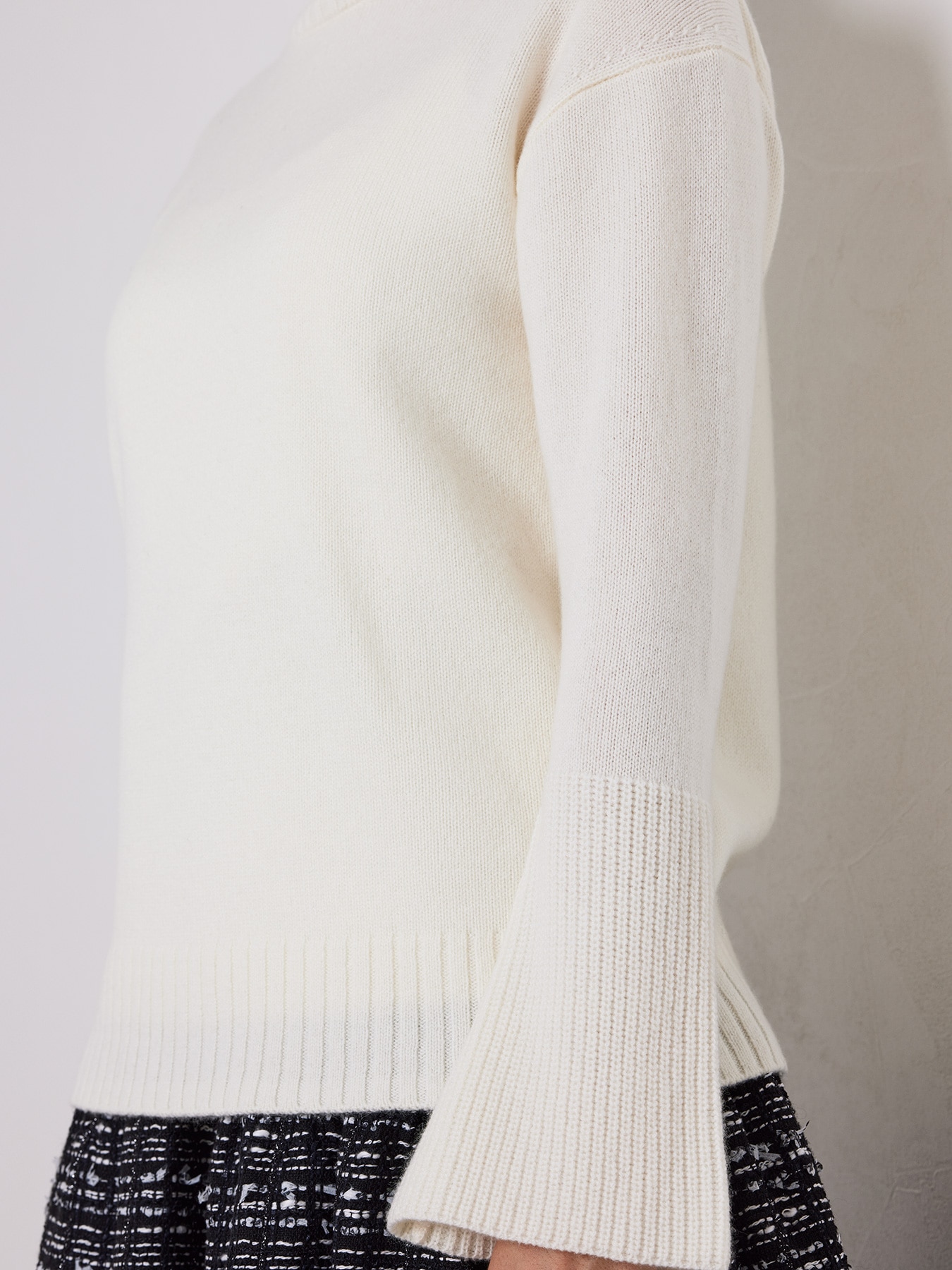 保温性と快適性に優れ、ふっくらと肌触りの良いウールカシミヤ素材を使用したタートルネックニットプルオーバー。手首を華奢に魅せてくれるベルスリーブがポイントとなり、ゆとりを持たせたシルエットながらもエレガントな装いを完成させてくれます。首元を暖かく包み込むボリュームのあるタートルネックもシーズンムードを高めてくれ、シンプルながらも主役級の存在感を誇る一着。裾にはリブを施すことでメリハリのある印象に仕上げてくれるので、ボトムはスカートでもパンツでも。 ・WHITEは透け感あり ・ややゆとりのあるフィット。通常サイズをおすすめします。 ・モデル身長173cm/バスト83cm/ウエスト59cm/ヒップ85cm/38サイズ着用 【お問い合わせ品番】 S741-035