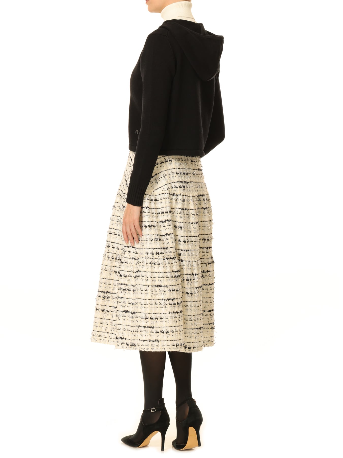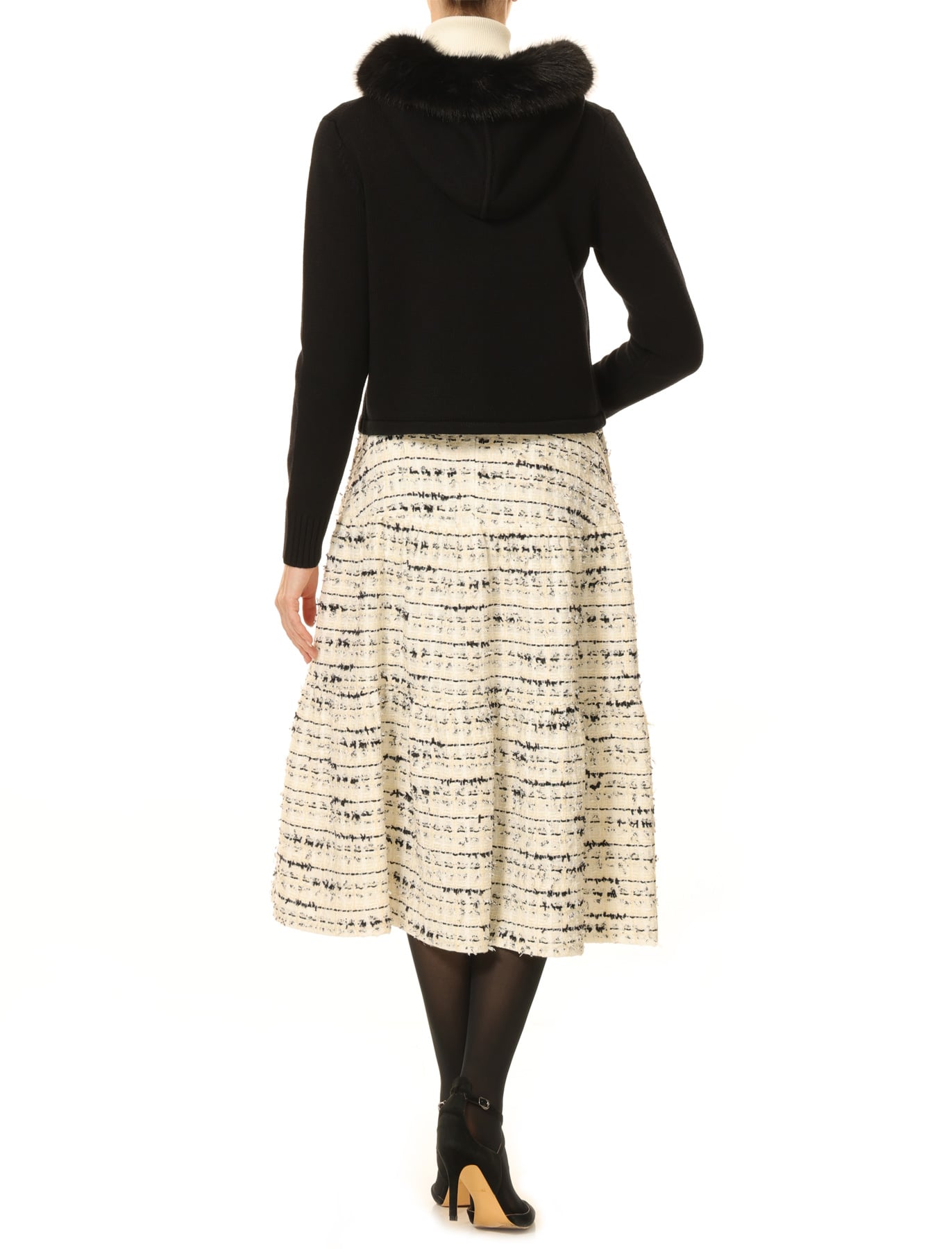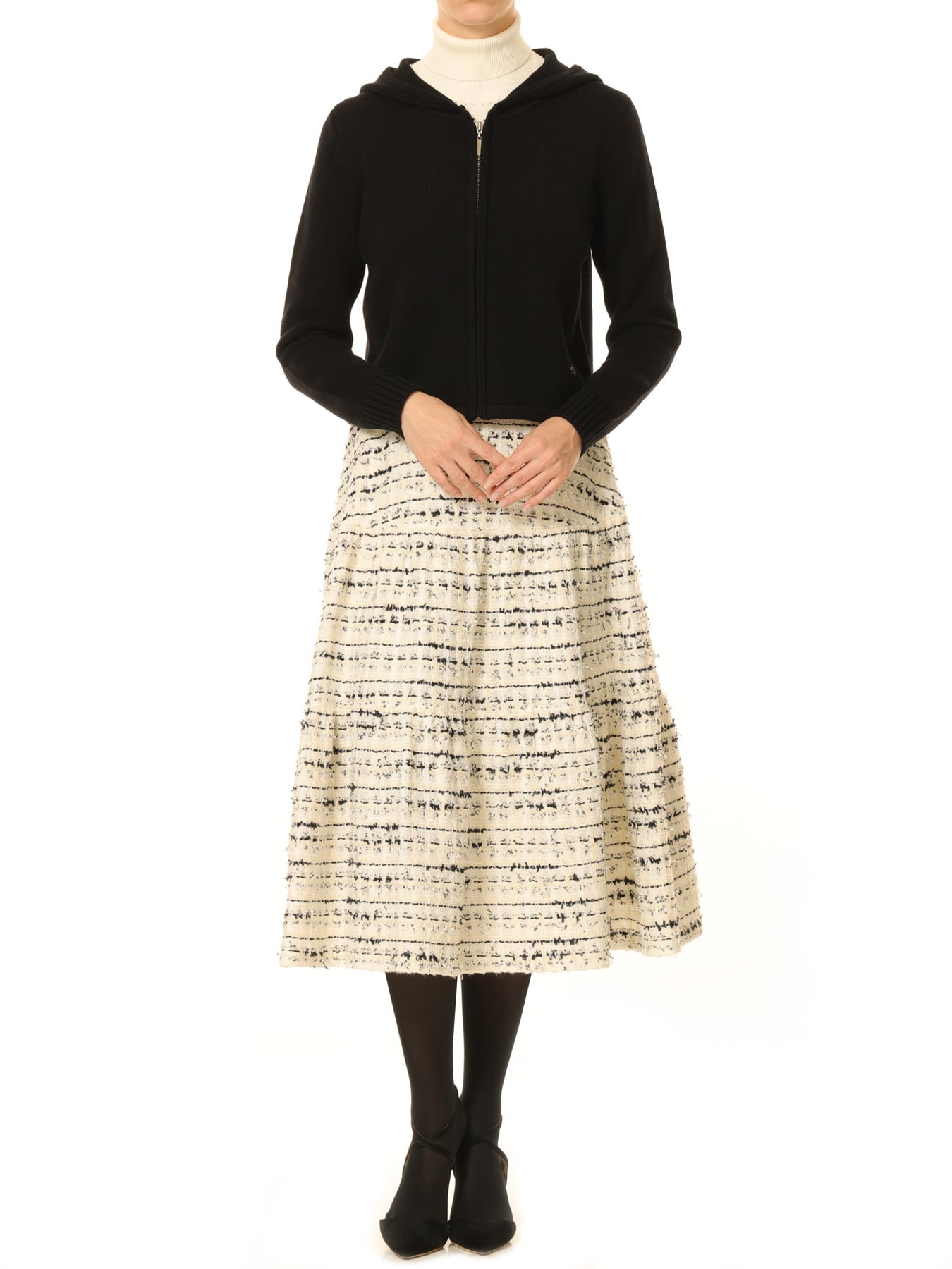 上品な艶感を持つレーヨンベースのニットを使用した、エレガントなジップアップパーカー。程よい厚みと温かみのある素材感で、秋冬シーズンの軽アウターとしても活躍します。フードまわりには、顔まわりを華やかに見せるボリュームのあるフェイクファーをあしらい、取り外し可能なのでシーンや気分に合わせて印象を変えられるのも嬉しいポイント。スカートを合わせれば、女性らしくフェミニンな雰囲気に。パンツスタイルに合わせれば、上品さを残しつつアクティブで洗練された印象に仕上がります。デイリーからお出かけまで幅広く活躍する、ワードローブに加えておきたい大人の女性ならではの一着です。 ・ファーはボタンで取り外し可能 ・ジャストフィット。通常サイズをおすすめします。 【お問い合わせ品番】 S746-008
