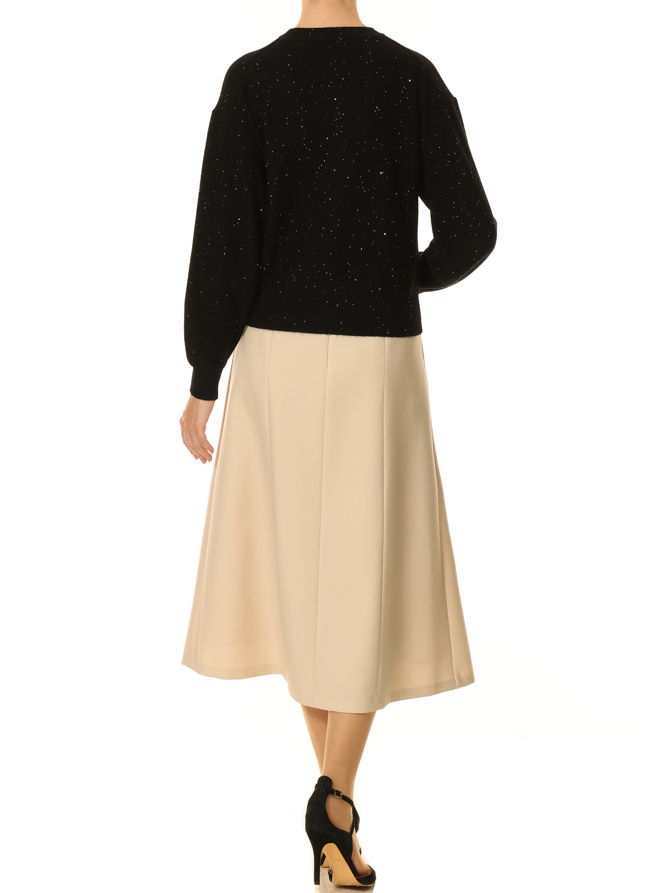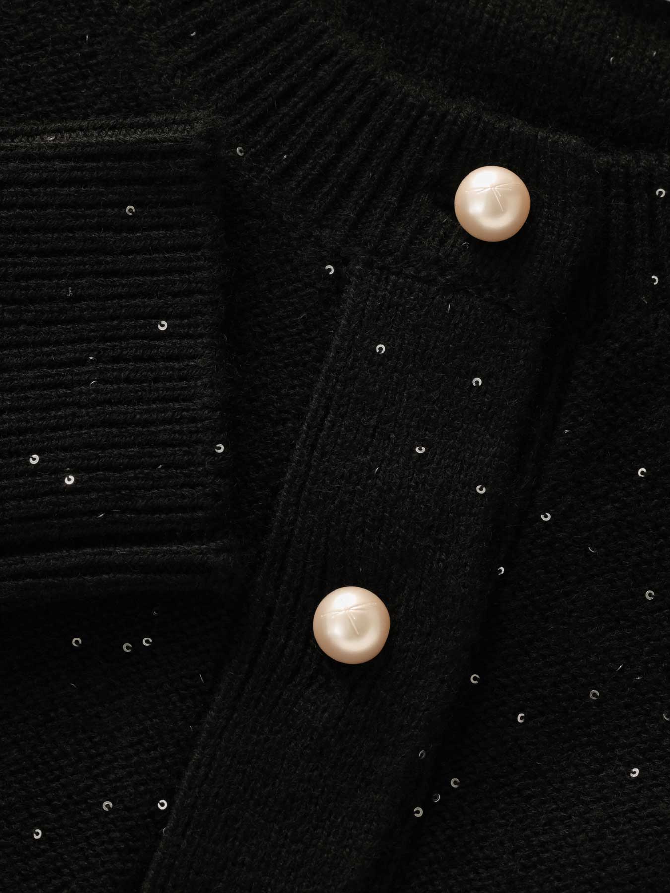 カシミヤをブレンドした、柔らかな風合いが魅力のニットカーディガン。全体に散りばめられた繊細なスパンコールが、動くたびに上品な輝きを放ち、華やかさを添えます。ドロップショルダーとゆとりのある身幅でリラックス感を持たせながらも、コンパクトな丈感によりバランスよく着こなせる一枚です。スカートに合わせれば、フェミニンでエレガントな着こなしに。パンツスタイルでは、シンプルなボトムと合わせることでスパンコールの輝きが際立ち、都会的で洗練された雰囲気を演出します。オンからオフまで幅広いシーンで活躍し、スタイリングに華やぎを添えるアイテムです。 ・身頃はゆとりのあるフィット。通常サイズをお勧めします。 【お問い合わせ品番】 S746-051