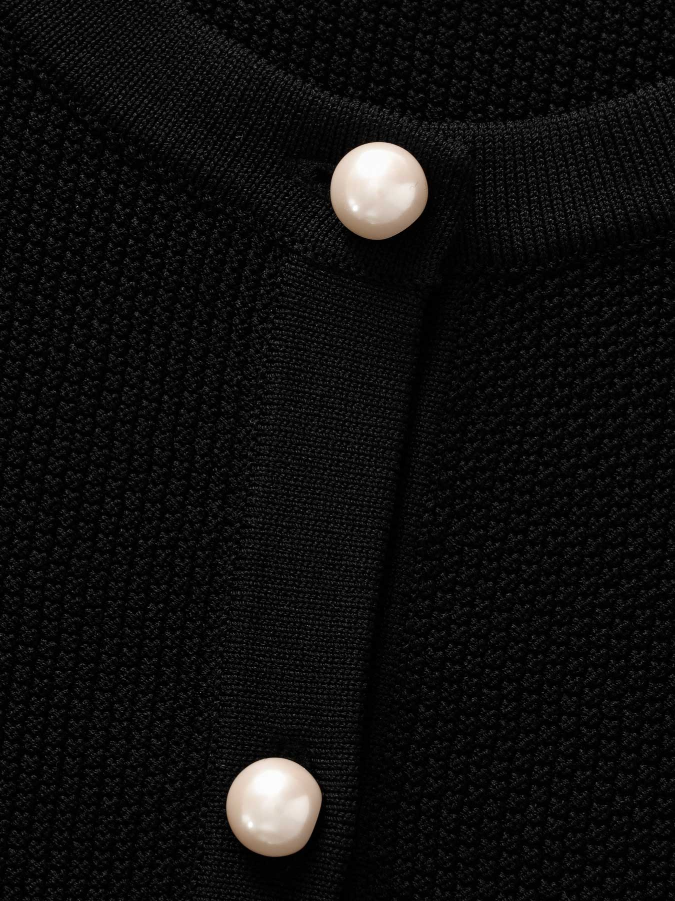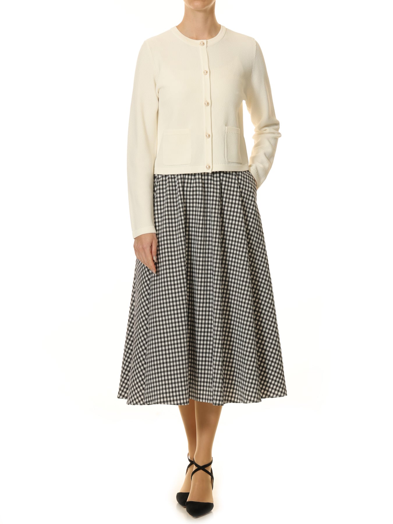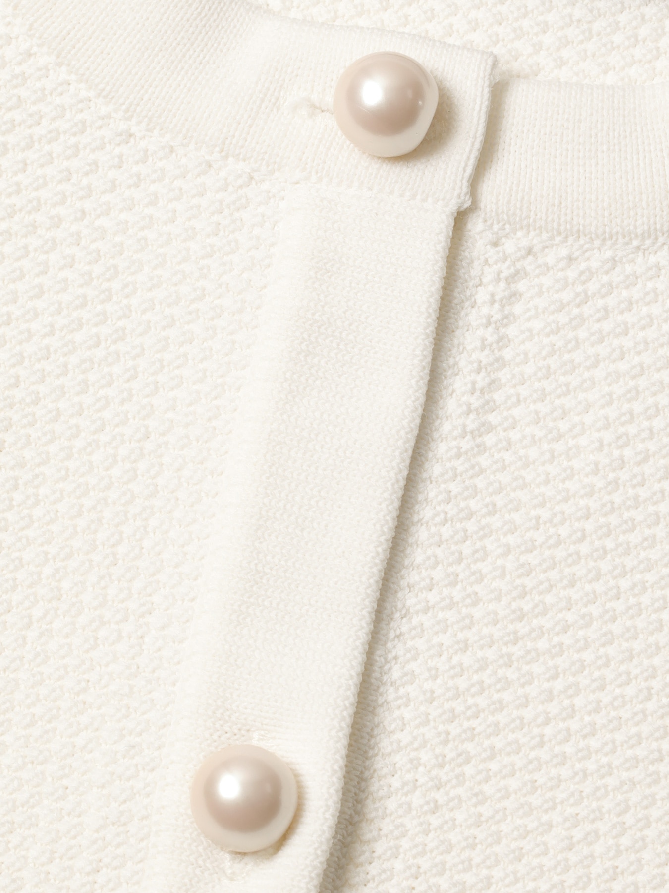 立体感のある鹿の子編みのニット素材に大き目のパールボタンがラグジュアリーなオーラを漂うニットカーディガン。程良い厚みのレーヨンメインのニットでジャケットのような雰囲気でお召しいただけます。すっきりとコンパクトなサイズ感できちんとした印象を演出でき、オケージョンシーンにも着まわして頂けます。 ・ご家庭で手洗いが可能 ・WHITEは透け感あり ・ポケットあり ・ジャストフィット。通常サイズをお勧めします。 ・ボタン部分にアイロンをあてますと、傷が入る可能性がございますので、ご注意ください。 【お問い合わせ品番】 S747-005