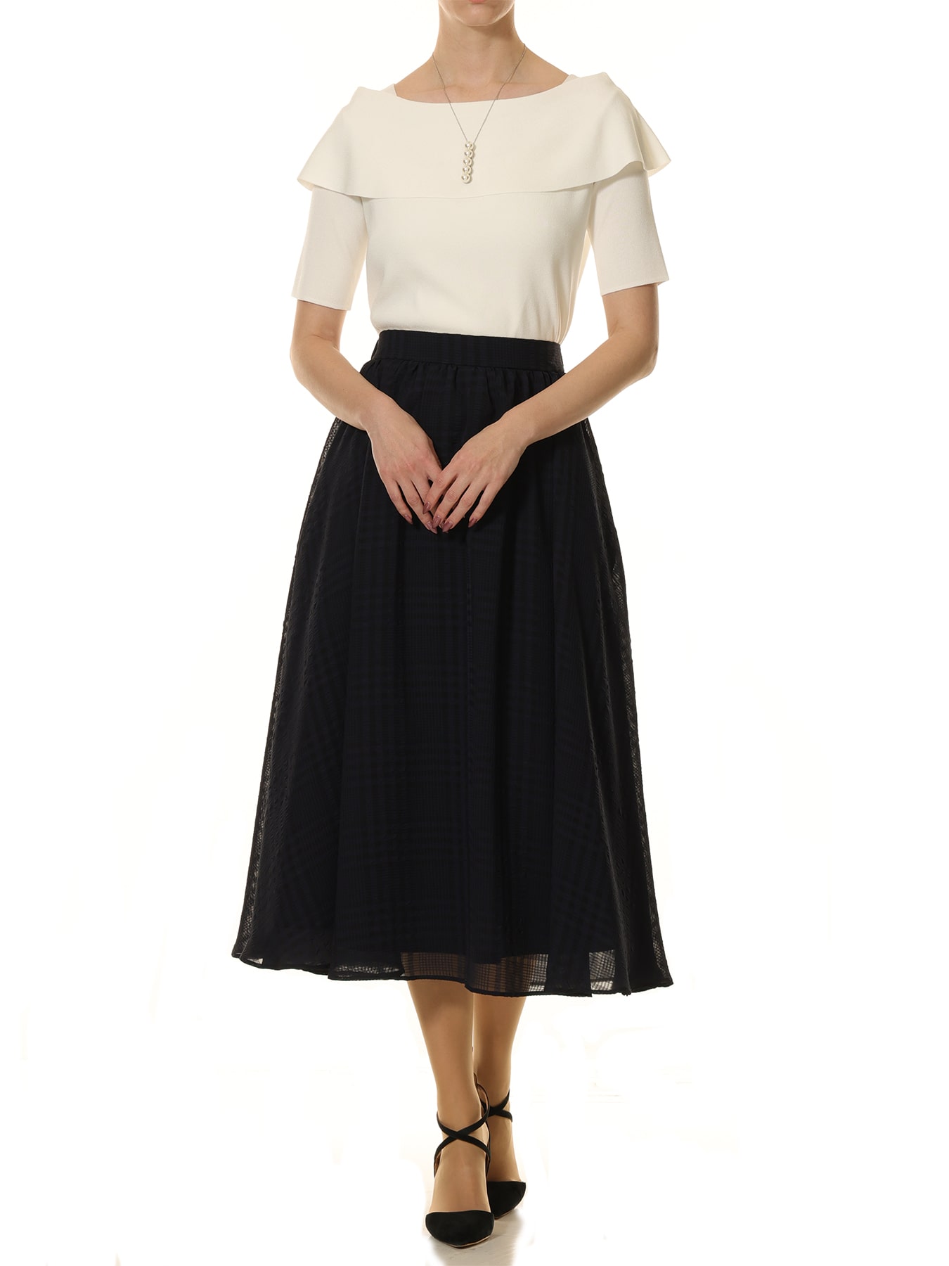 ブランド:AVENIRETOILE 素材:レーヨン75% ナイロン25% 【お問い合わせ品番】 S747-025 [COLOR CODE] WHITE:001 NAVY:075