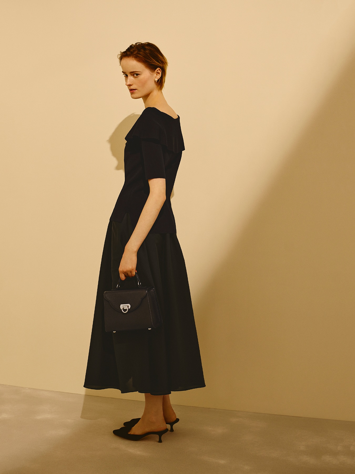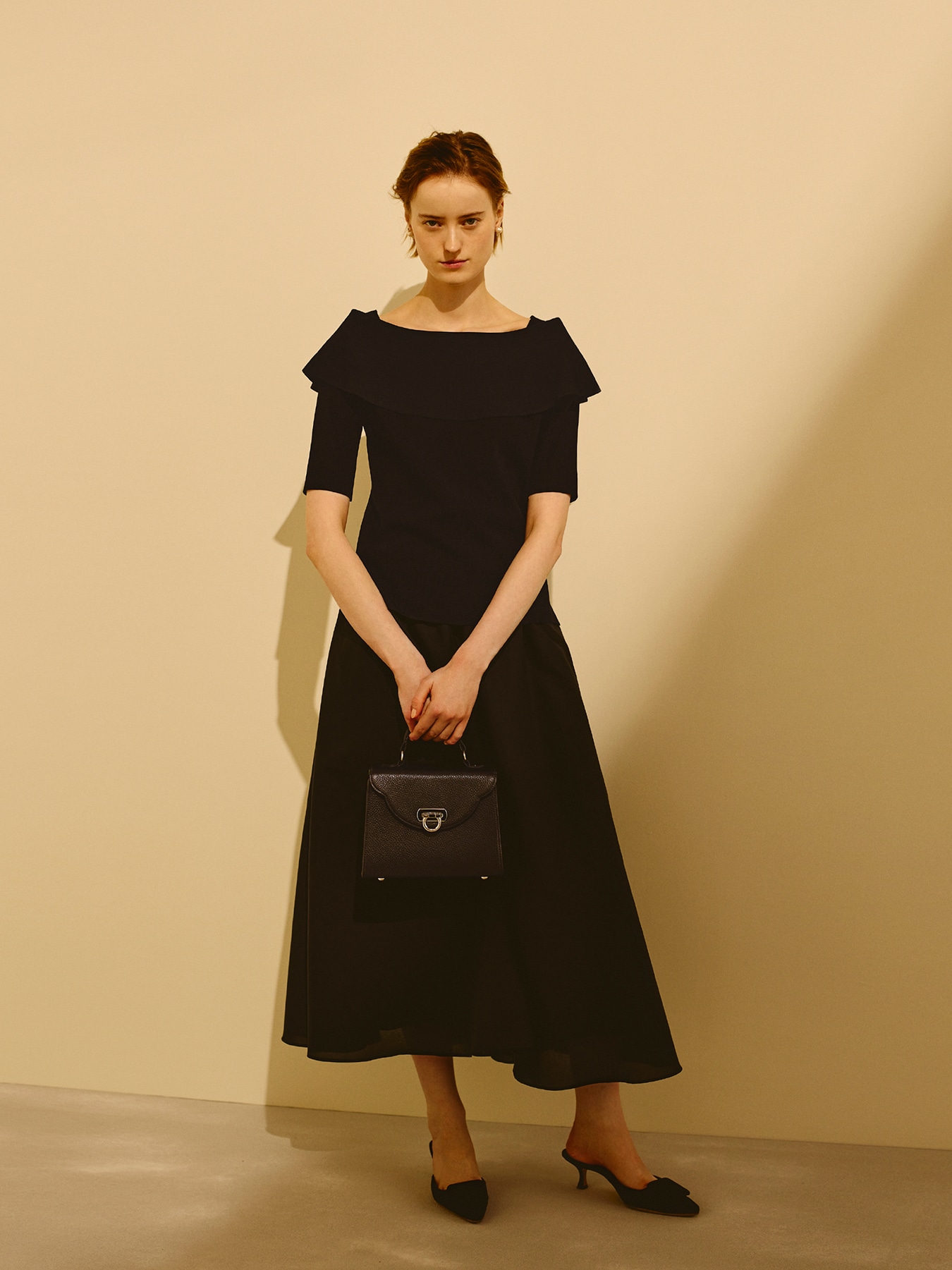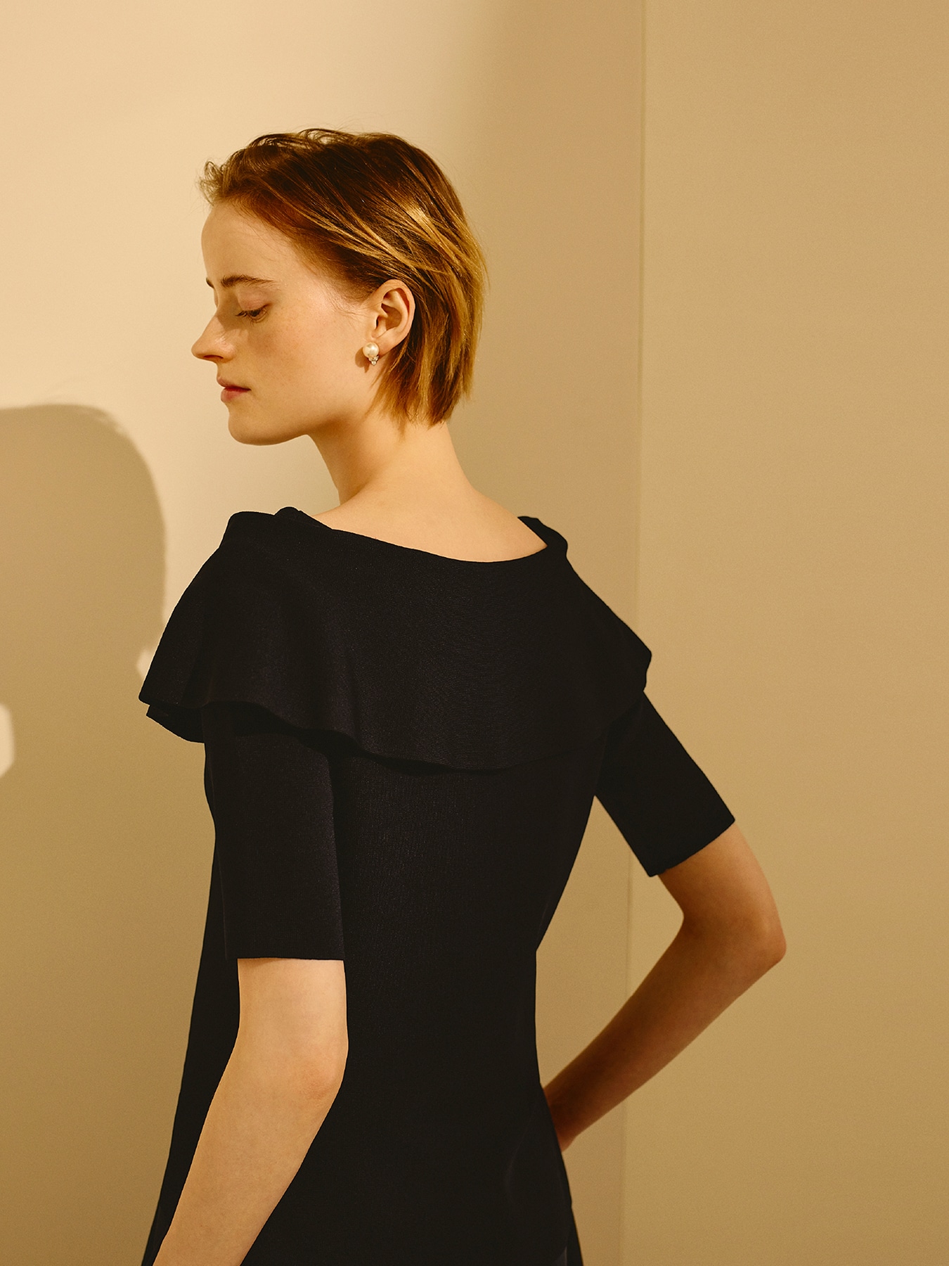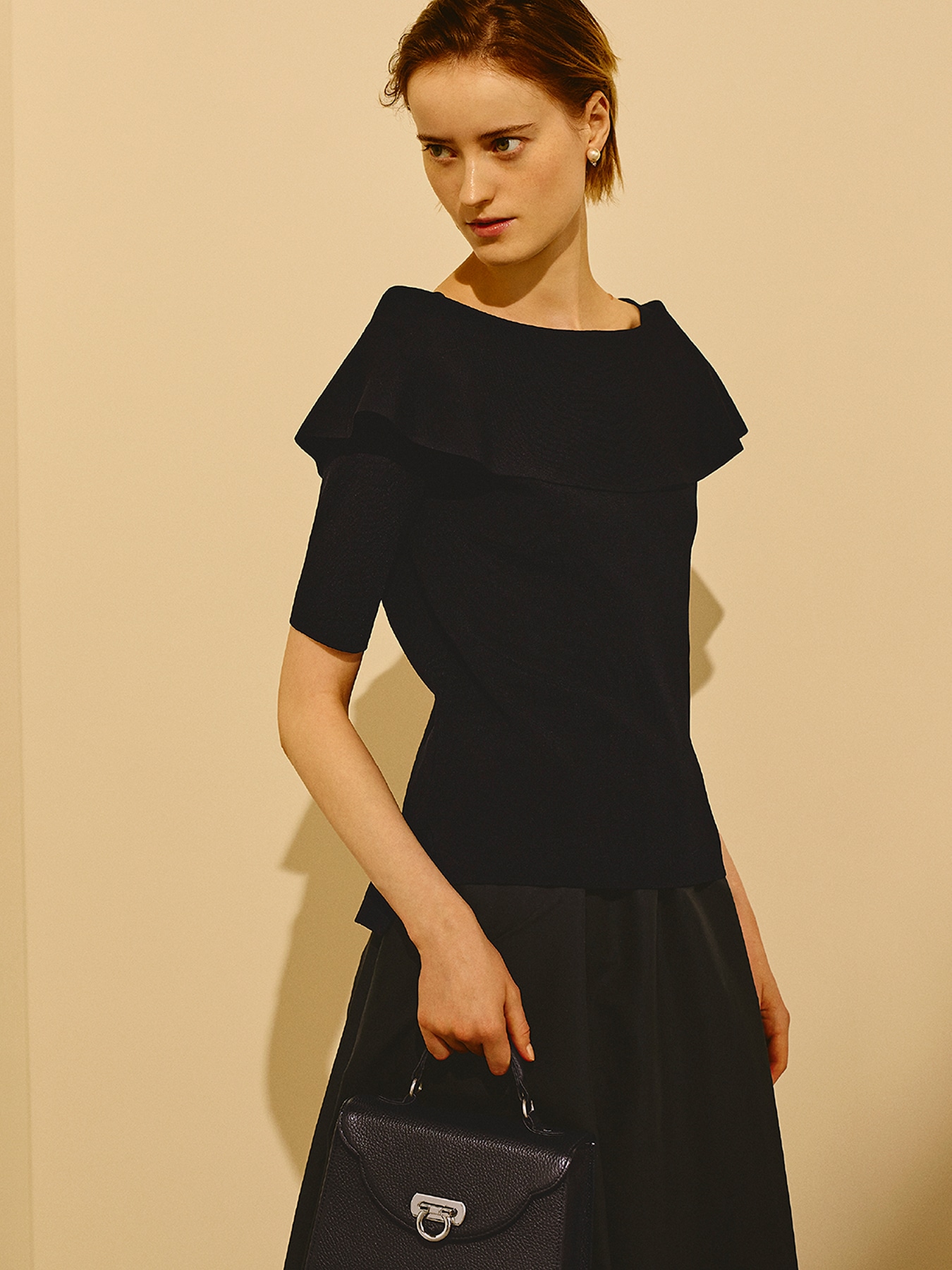 レーヨンベースの総針素材で編み立てた、しなやかで上質な風合いが魅力のニット。程よい落ち感と美しい表面感が、シンプルながらも洗練された印象を演出し、装い全体をエレガントに引き立てます。オフショルダーデザインながら、肩部分は生地を重ねた構造になっているため、肌の露出を抑えつつ女性らしい抜け感をプラスできるのが魅力。立体的なラインがデコルテを美しく見せ、品のある華やぎを添えてくれます。スカートと合わせれば、ニットの柔らかな質感と女性らしいネックラインが際立ち、上品でフェミニンなスタイリングに。フレアやタイトなど様々なシルエットとも好相性で、きれいめなお出かけやお食事のシーンにもおすすめです。パンツと合わせた着こなしでは、すっきりとしたラインが引き立ち、程よくモードな印象に。テーパードパンツやワイドパンツと合わせれば、オフィスシーンにも馴染む洗練された大人の装いが完成します。シーンに合わせて表情を変えながら、日常から特別な場面まで幅広く活躍してくれる一着です。 ・ご家庭で手洗いが可能 ・WHITEは透け感あり ・ジャストフィット。通常サイズをおすすめします。 【お問い合わせ品番】 S747-025