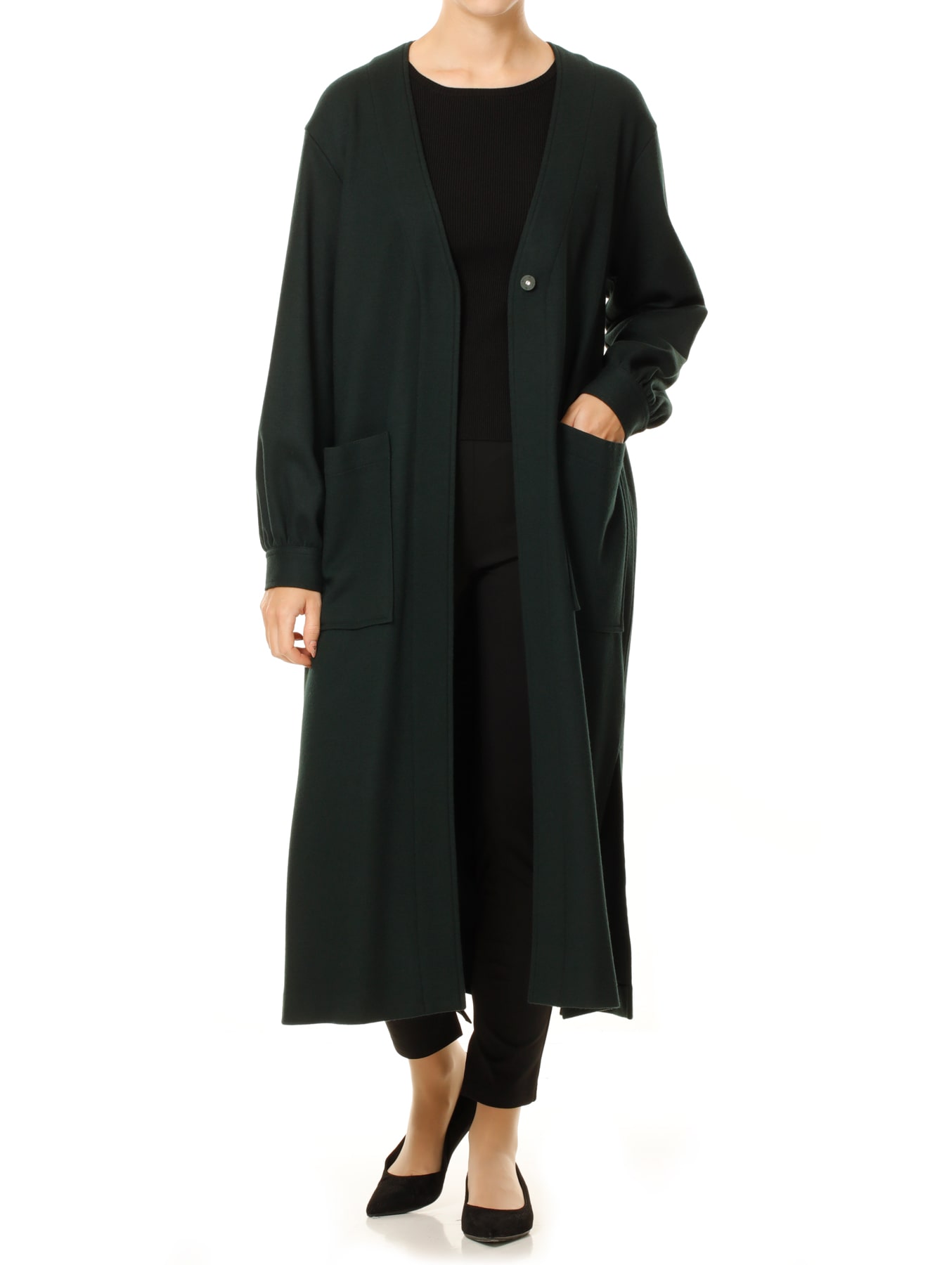 ソフトでしなやかな肌触りが心地よい上質なSuper120'sウールを使用したスムース素材のロングカーディガン。ウォームカラーの落ち着いた雰囲気と上質なウールの光沢感によって、程良くリラクシーなシルエットながらもエレガントさを添えてくれる優秀な一着です。袖にはギャザーを施す事により、女性らしいアクセントをプラス。ロング丈ながらも少し大き目のポケットや深めのVネックデザインがポイントになりバランスよくお召し頂けます。 ・裏地無しの一枚仕立て ・前開きスナップボタン1個 ・ポケットあり ・両裾スリットあり ・ジャストフィット。通常サイズをおすすめします。 【お問い合わせ品番】 U138-020