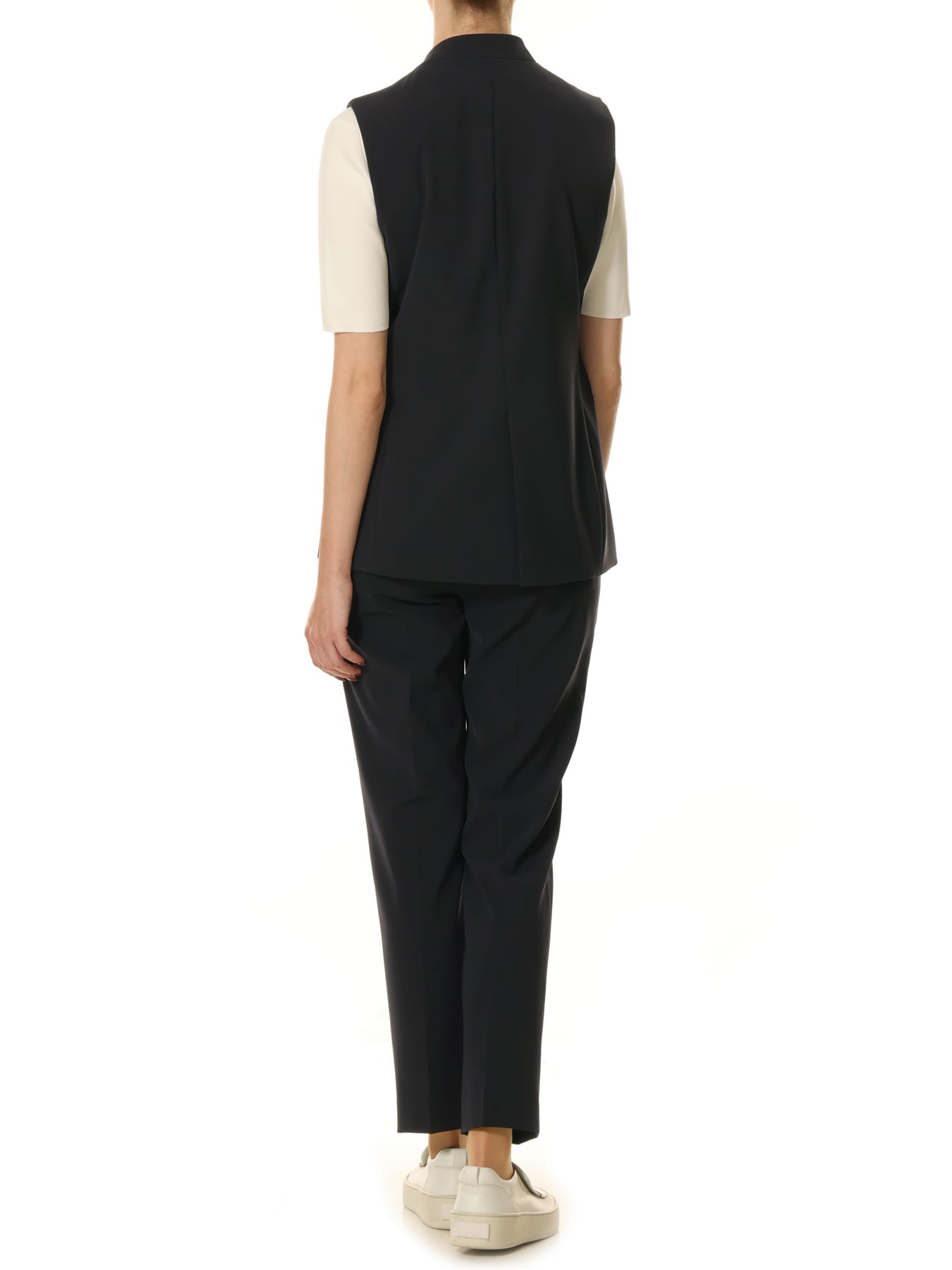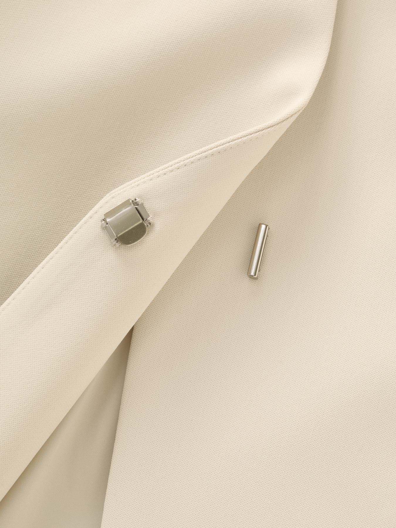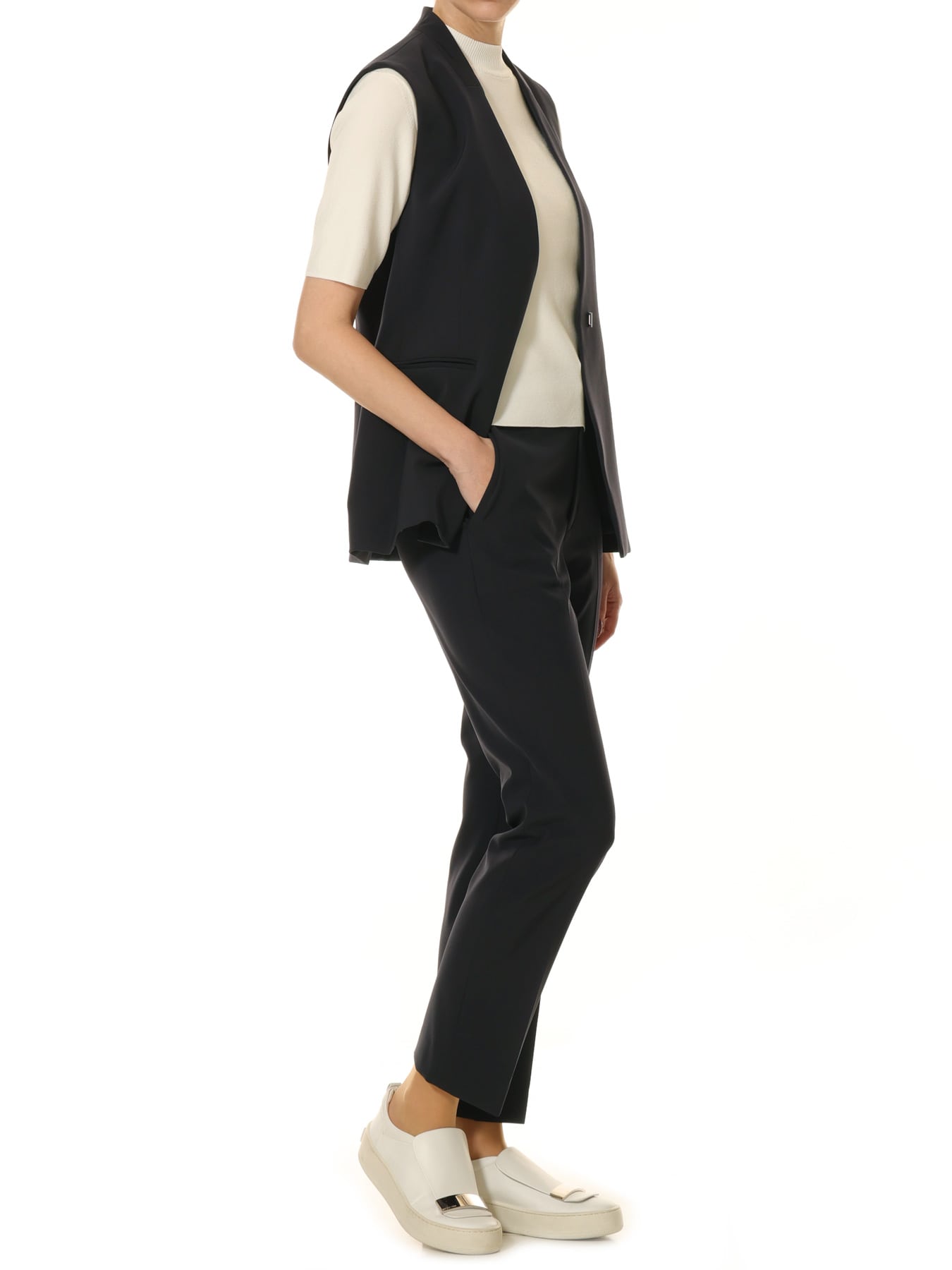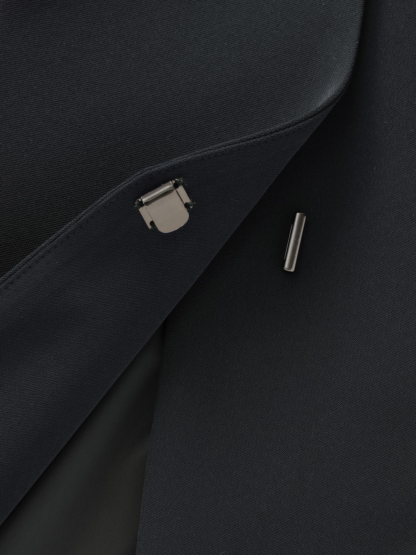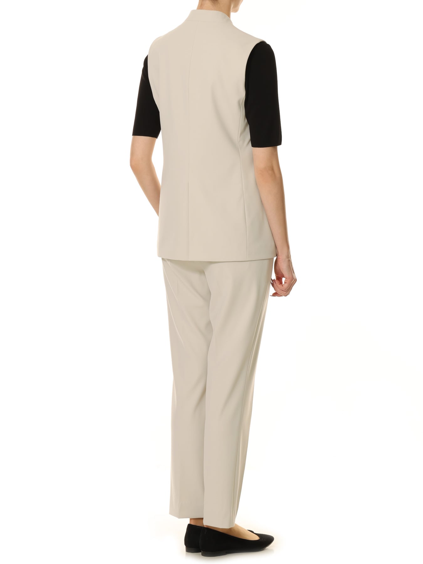 上質な佇まいと洗練されたムードを兼ね備えた、エレガントかつモードなジレです。素材には、しなやかさと適度なハリ感を持ちながら、ソフトなタッチとドレープ性が女性らしさを引き立ててくれるステファニーダブルクロスを使用。滑らかな表面感と美しい落ち感が、羽織るだけでスタイリング全体を格上げしてくれます。フロントはホックひとつで留めるミニマルなデザインに仕上げ、シャープで凛とした印象を演出。深めのVラインが縦のラインを強調し、すっきりとしたバランスを叶えます。インナー次第で表情を変えられるのも魅力のひとつ。シンプルなニットやカットソーを合わせれば、程よく力の抜けた大人のデイリースタイルに。ブラウスを合わせれば、オフィスやきちんと感の求められるシーンにも対応します。また、同素材のテーパードパンツ(U547-005)と合わせたセットアップスタイルは、知的で洗練された印象に。ワイドパンツ(U547-006)と組み合わせれば、よりモード感のあるスタイリングが完成します。単品使いはもちろん、セットアップでも着回しを楽しめる、ワードローブに加えたい一着です。 ・接触冷感素材 ・UVカット加工素材 ・裏地あり ・ポケットあり ・フロントホック開き ・ジャストフィット。通常サイズをお勧めします。 【お問い合わせ品番】 U147-005