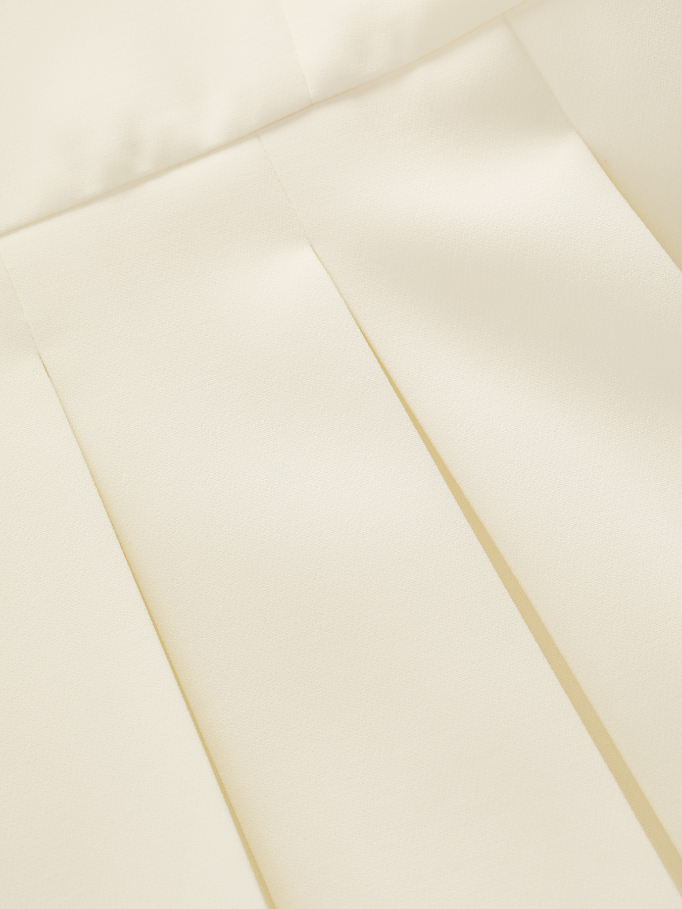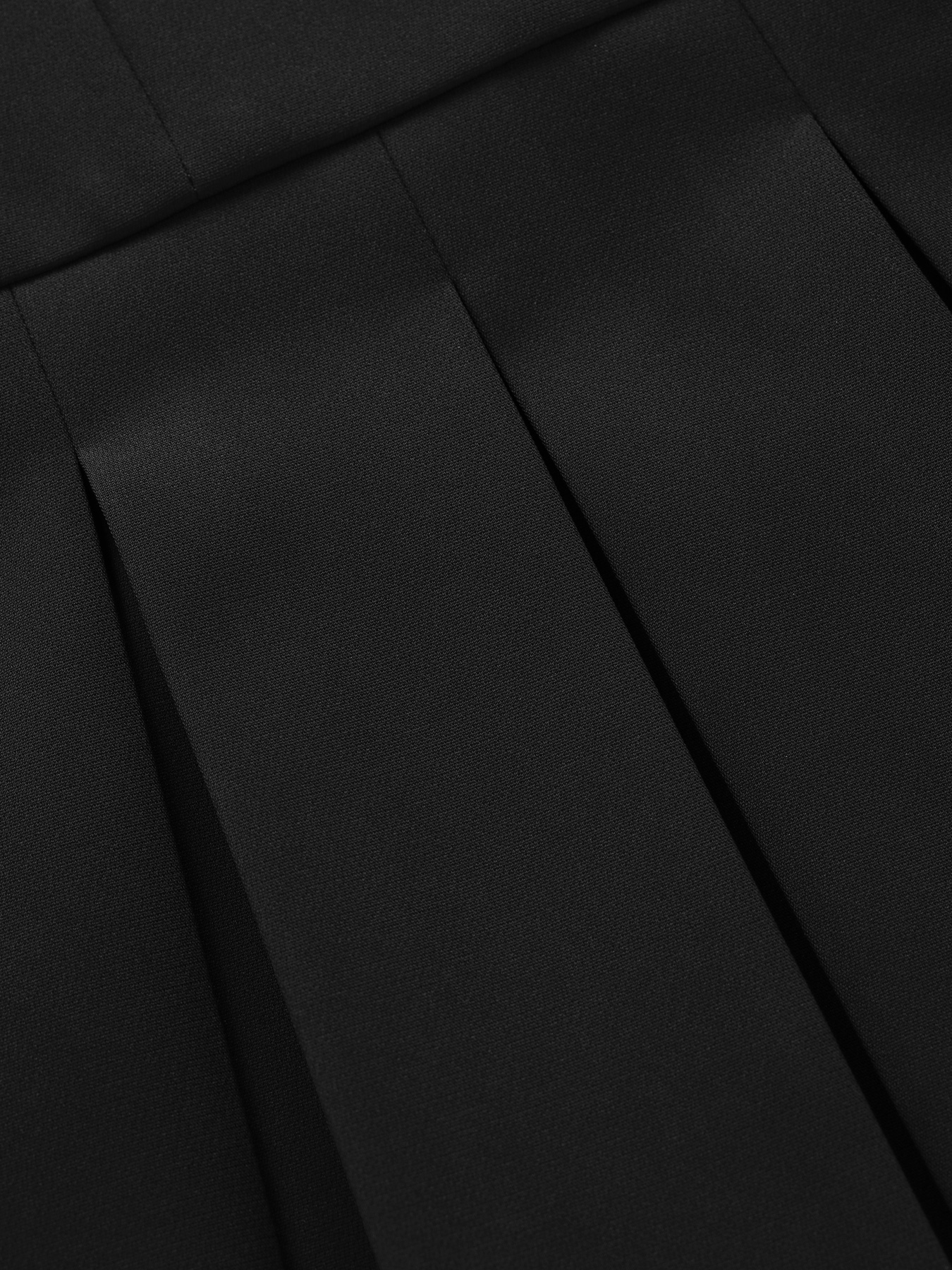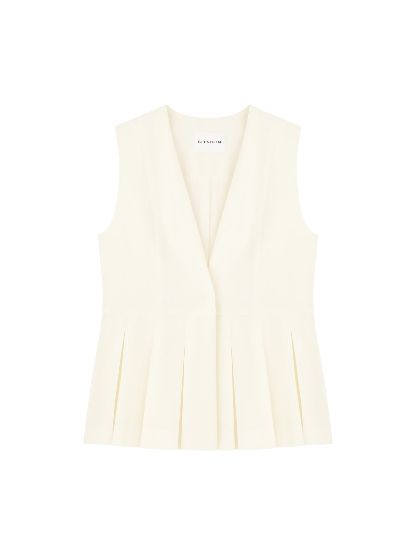 シャープな印象を与える深めのVネックが、顔まわりをすっきりと見せてくれるジレ。無駄を削ぎ落としたミニマルな上身頃から、裾にかけて広がるプリーツ仕立てのペプラムが立体的なシルエットを描き、エレガントさとモード感を併せ持つ一着に仕上げました。ウエスト位置で切り替えることで自然とスタイルアップを叶え、動くたびに揺れるプリーツが洗練された存在感を放ちます。きちんと感を求められるシーンでは、細身のテーパードパンツなど同系色のパンツと合わせてセットアップ風にまとめることで、凛とした佇まいに。インナーにコンパクトなニットやブラウスを重ねれば、より端正で都会的な印象が高まります。デイリーには、シンプルなカットソーやハイゲージニットに重ね、パンツやナロースカートと合わせることで、程よい抜け感のあるモードスタイルに。合わせるアイテム次第で表情を変え、オンオフ問わず活躍する主役級ジレです。 ・裏地あり ・フロントスナップボタン開き ・ジャストフィット。通常サイズをおすすめします。 ・モデル身長171cm/バスト82cm/ウエスト60cm/ヒップ88cm/Mサイズ着用 【お問い合わせ品番】 U147-006