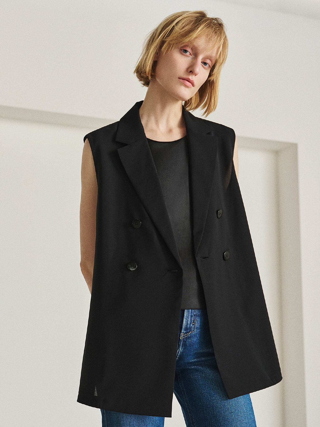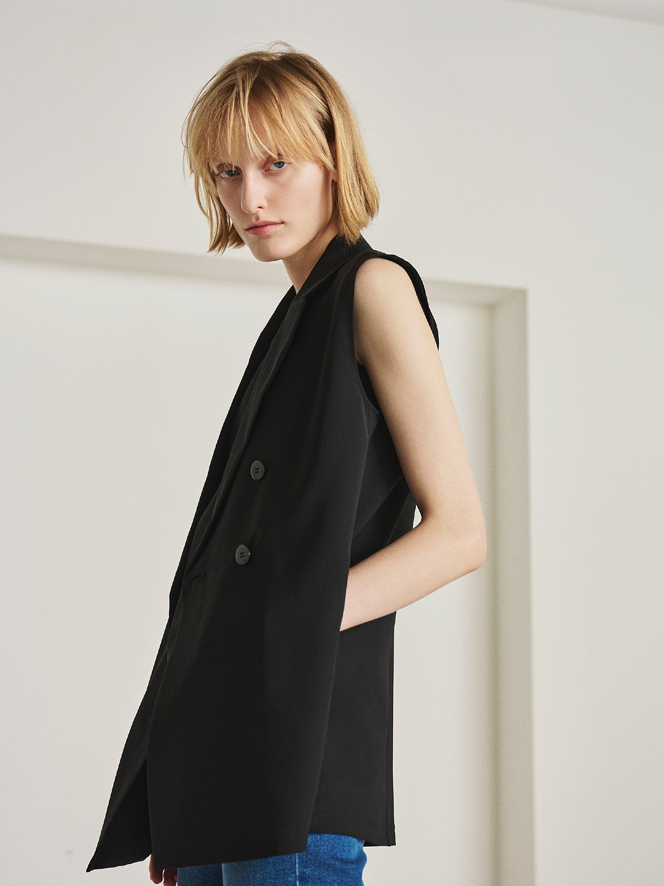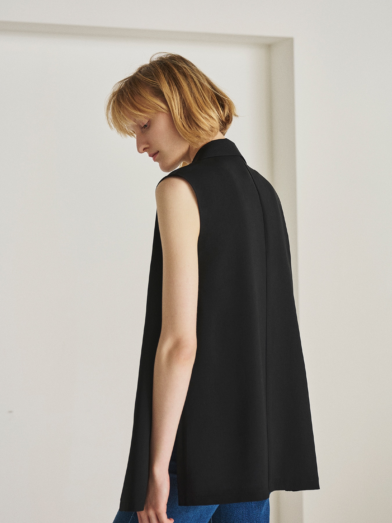 程よい透け感と軽やかさが魅力のボイル素材で仕立てた、エレガントかつモードな佇まいのジレ。ゆとりを持たせたシルエットがリラクシーな印象を与えながらも、テーラードカラーとダブルボタンのデザインが全体を引き締め、洗練されたバランスへと導きます。両サイドに施された深めのスリットが動きに軽やかさをプラスし、レイヤードスタイルに奥行きをもたらしてくれる一着です。スカートスタイルでは、女性らしさの中にモードなエッセンスをプラスした着こなしに。ジレの縦長ラインが全体をすっきりと見せ、上品な印象へと導きます。インナーにはコンパクトなニットやノースリーブトップスを合わせることで、バランスよくまとまります。パンツスタイルには、テーパードパンツやワイドパンツを合わせて、シャープで都会的なスタイリングに仕上げるのがおすすめです。シンプルなインナーに重ねるだけでコーディネートが引き締まり、デイリーから通勤まで幅広いシーンで活躍。軽やかな素材感が季節の変わり目にも心地よく、着るだけでスタイリングを格上げしてくれる一枚です。 ・ポケットあり ・透け感あり ・フロントボタン2カ所留め ・両裾スリットあり ・スチーム可能 ・ややゆとりのあるフィット。通常サイズをお勧めします。 ・モデル身長171cm/バスト82cm/ウエスト60cm/ヒップ88cm/Mサイズ着用 【お問い合わせ品番】 U147-007