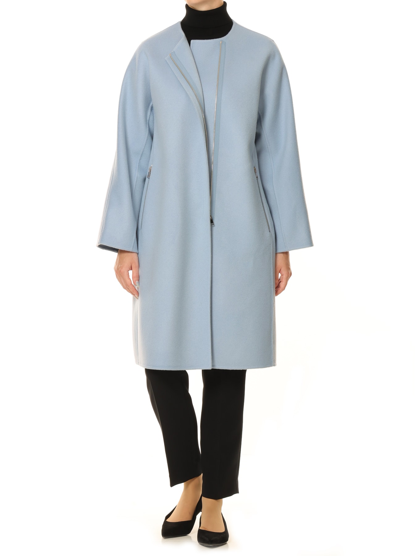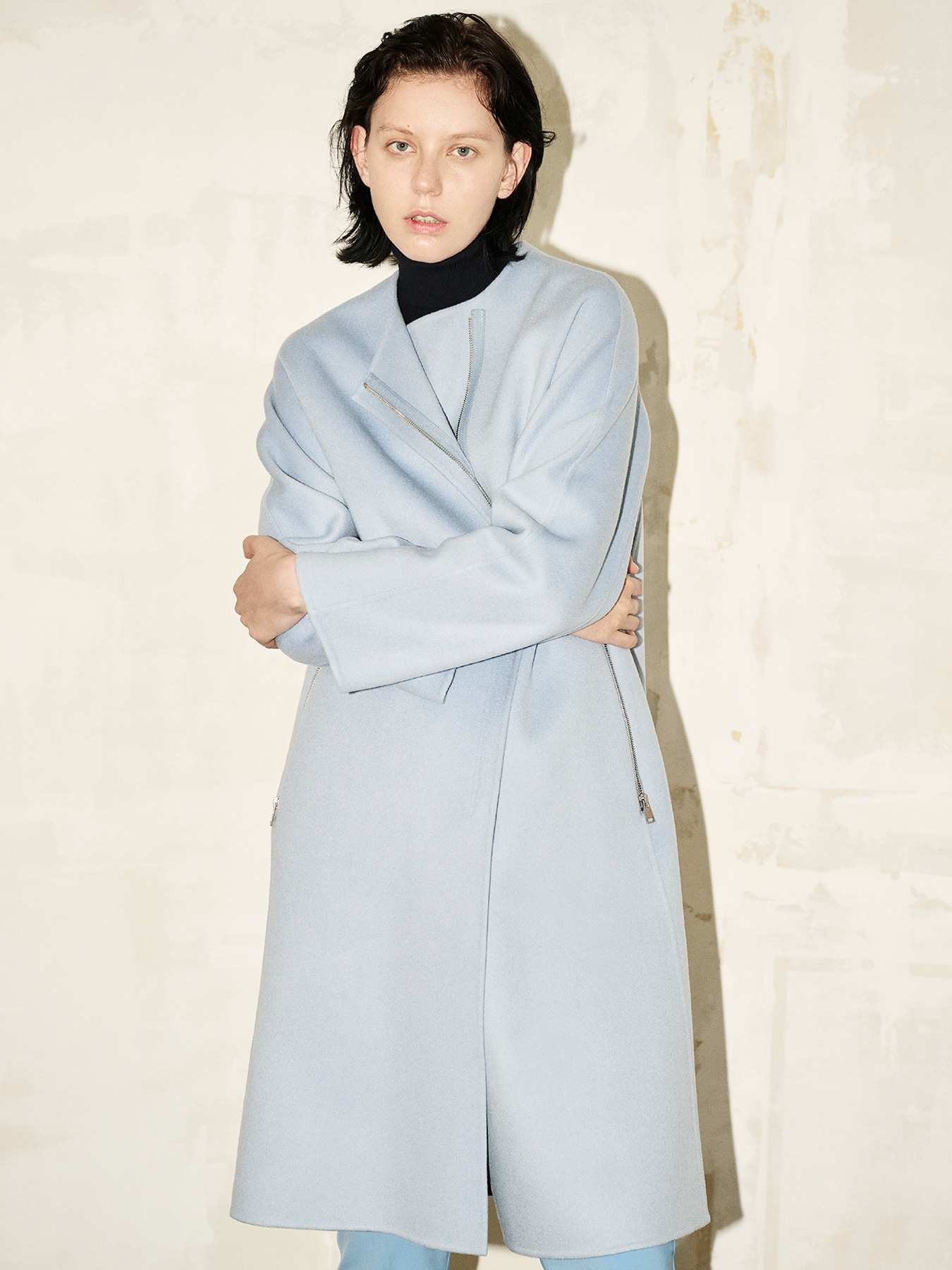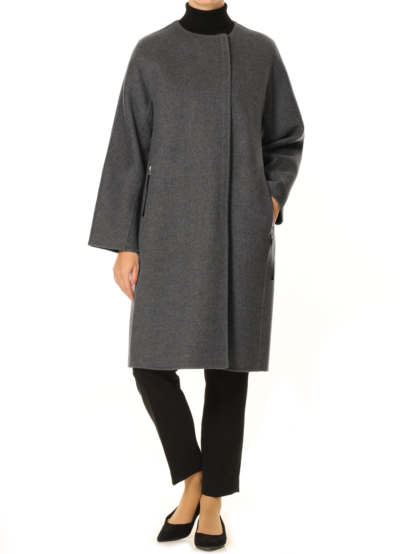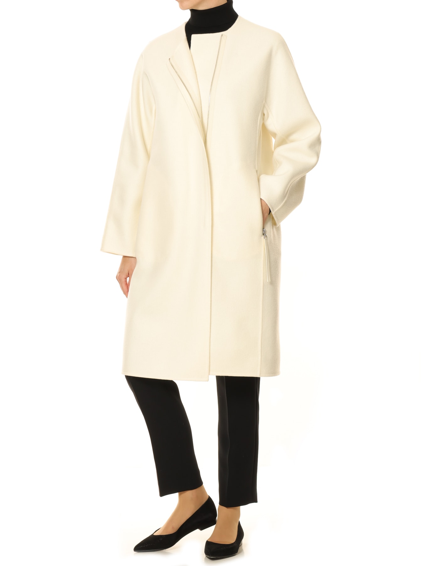 ウールリバージップアップノーカラーコート