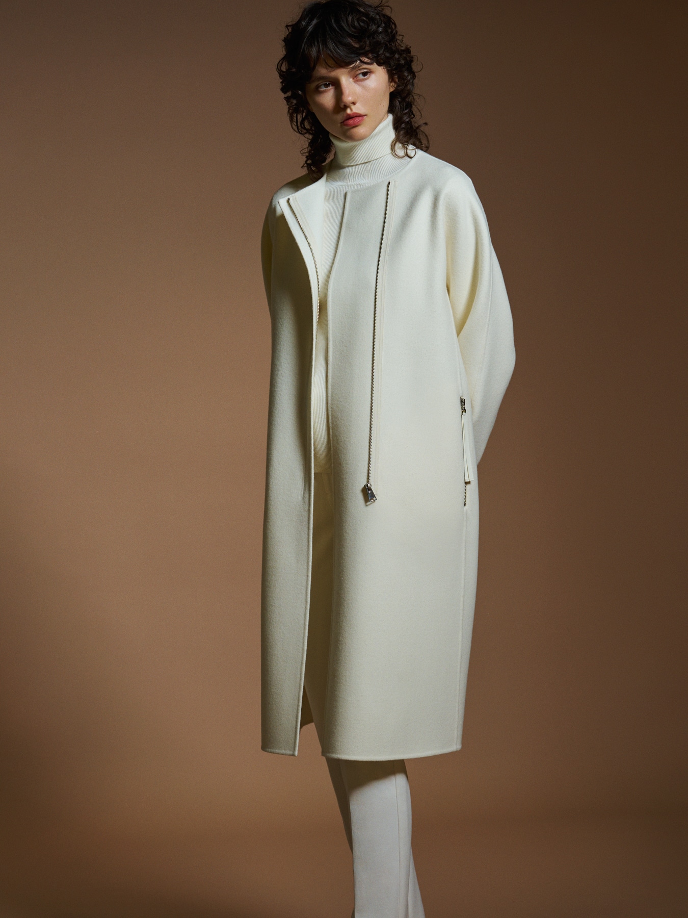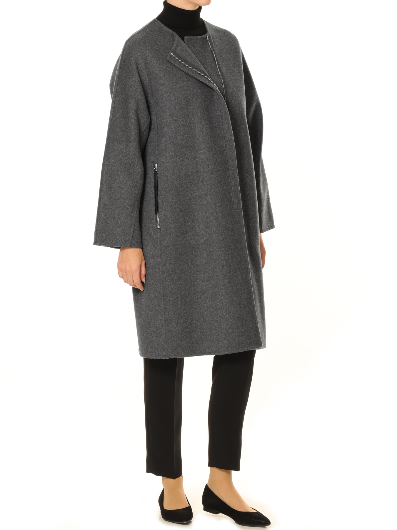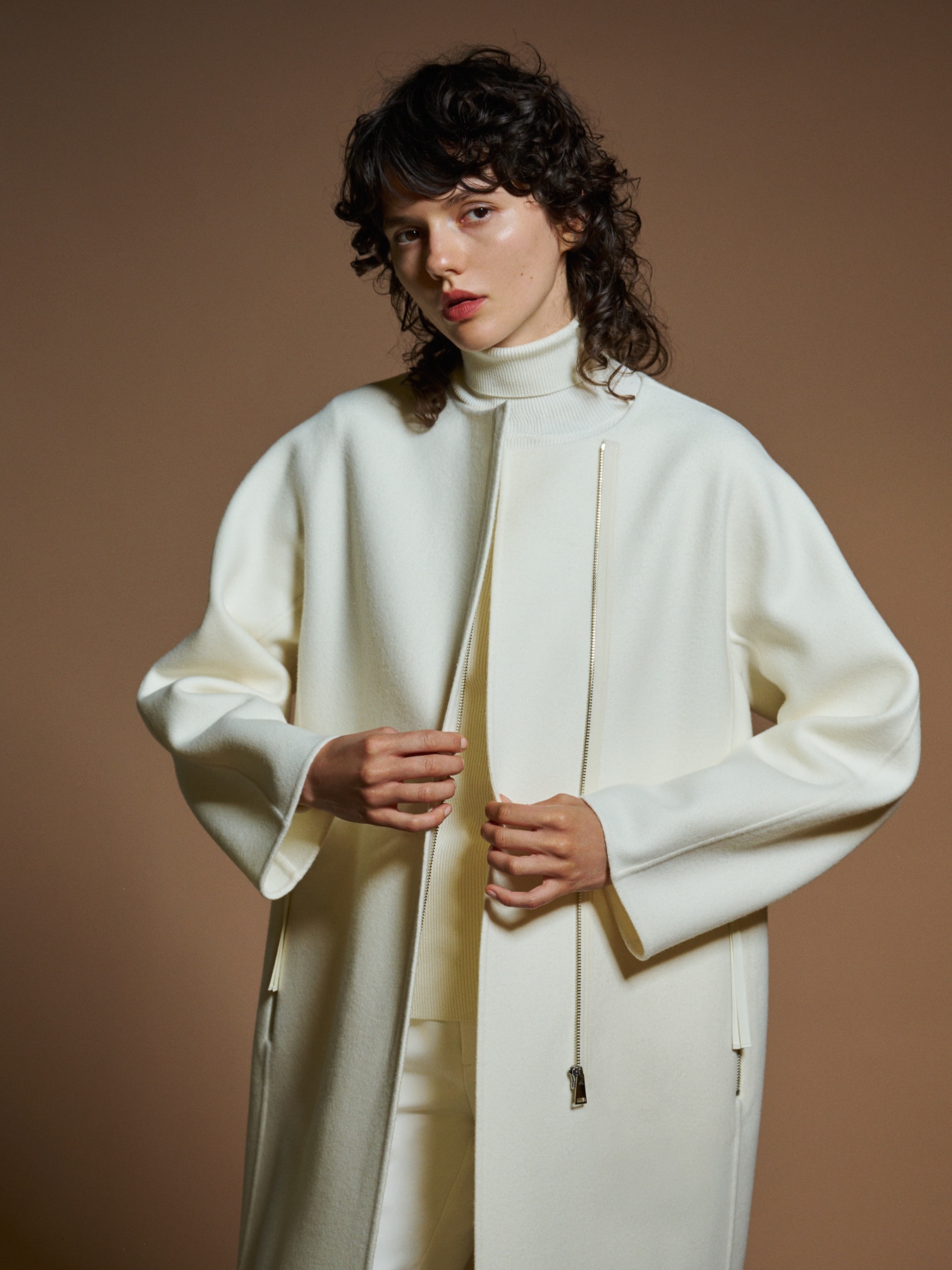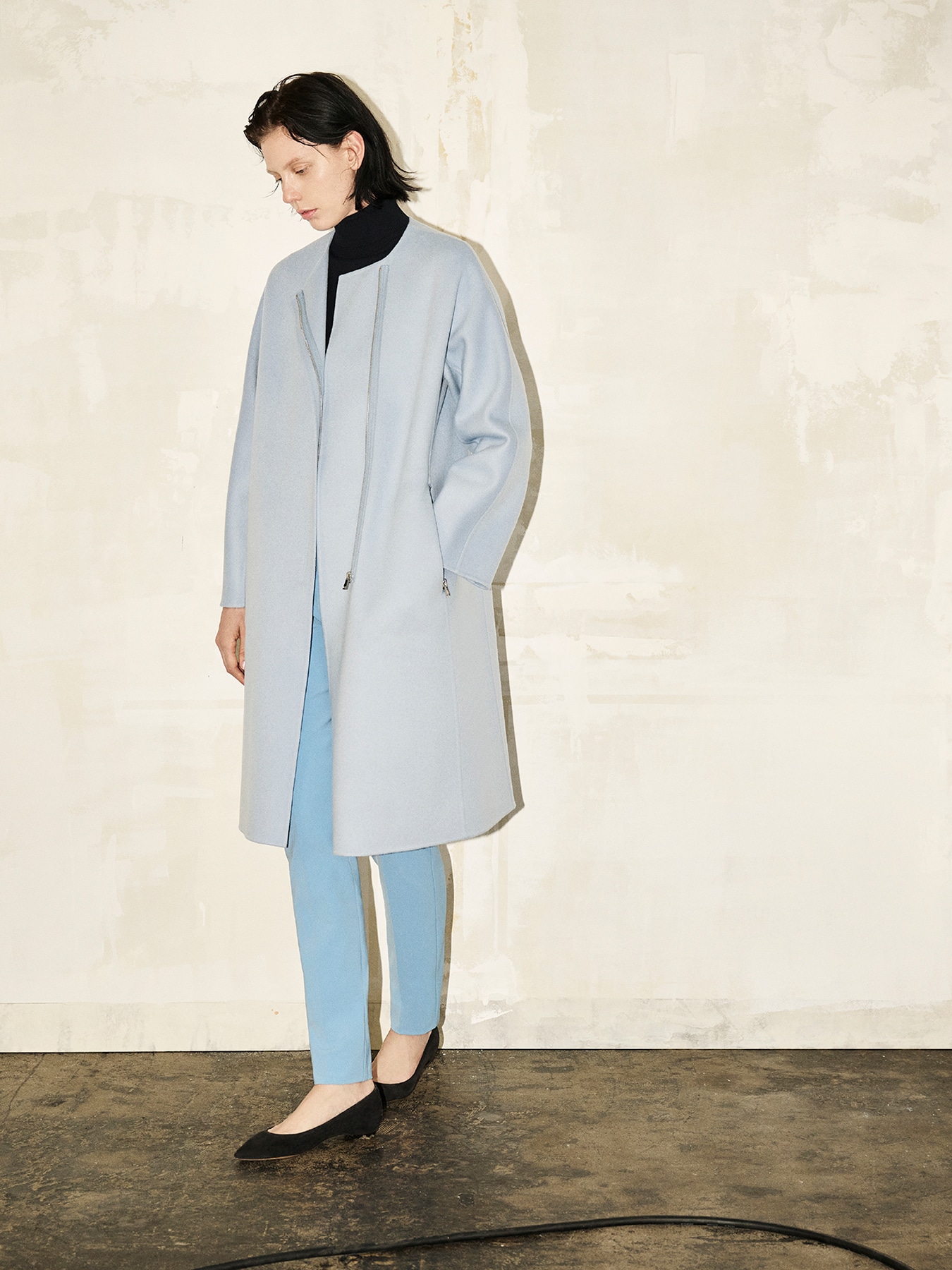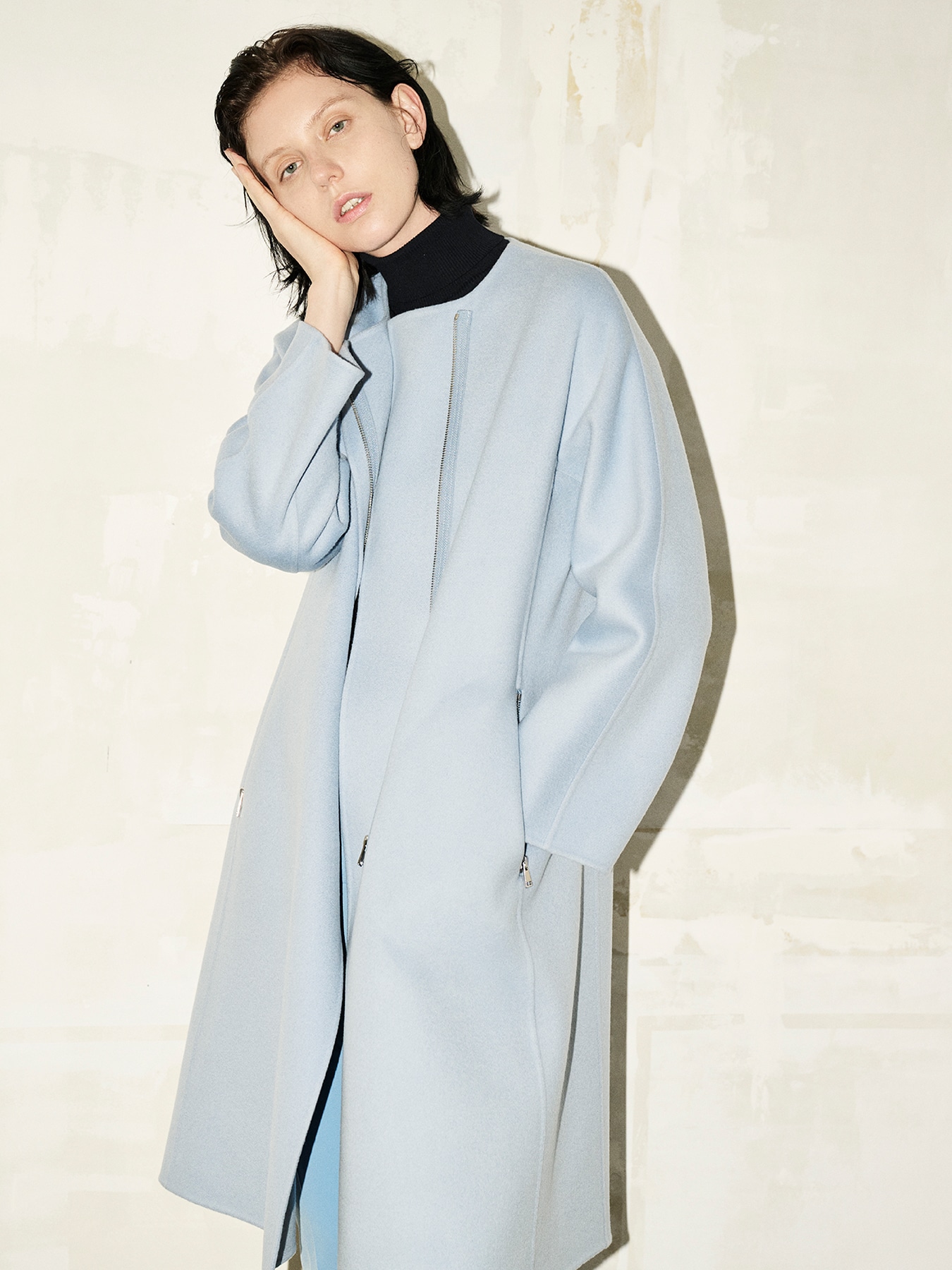 ウールリバージップアップノーカラーコート