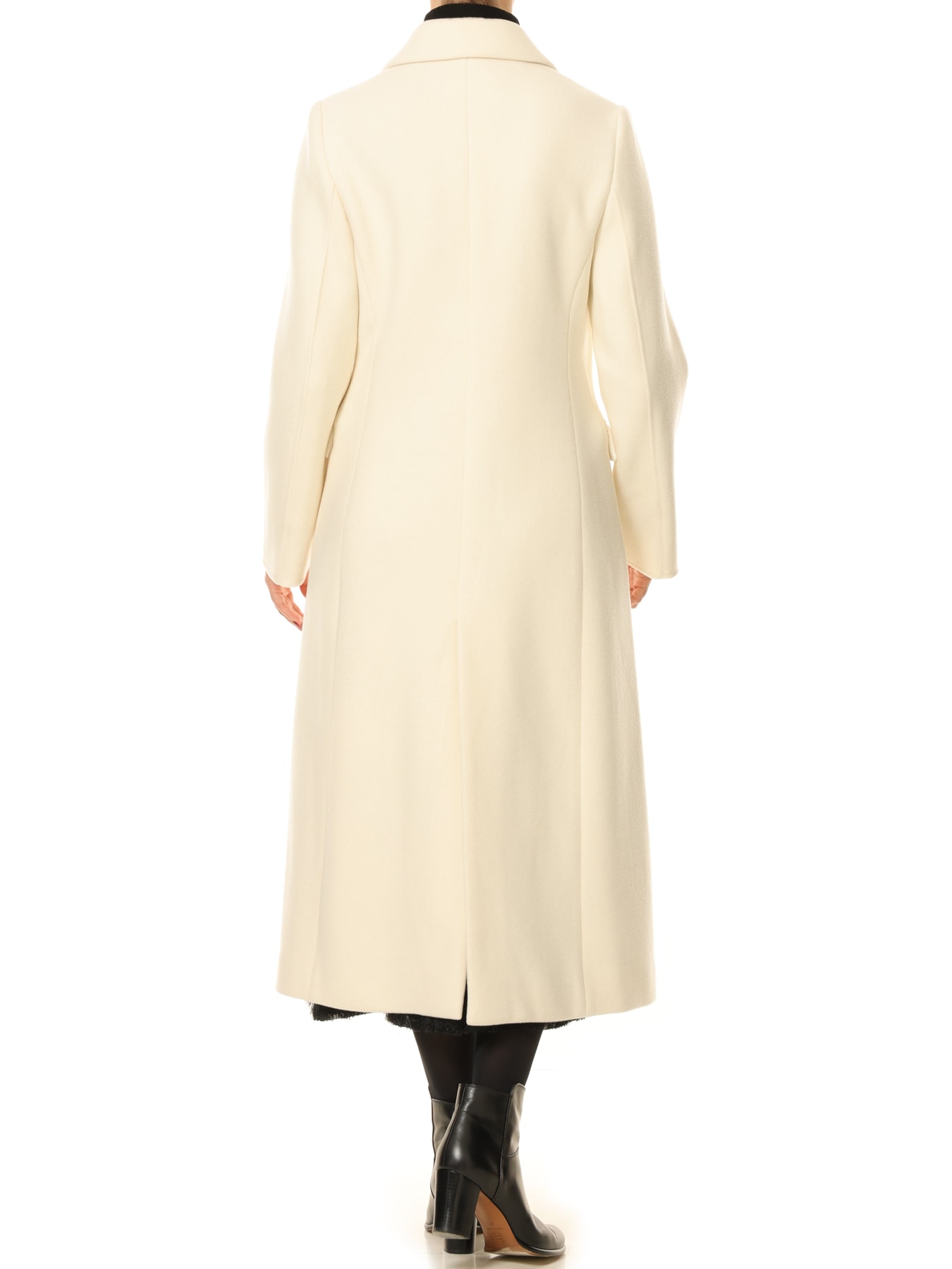 柔らかい肌触りを持ちながらも引き締まった印象の上質な表情が魅力のPURE LAMBSメルトン素材を使用したチェスターコート。フラップ付きのポケットがさりげないデザインポイントになったハンサムな雰囲気のコートも、ウエストラインを程よくシェイプすることで、女性らしい美しいシルエットを作り上げてくれます。袖はリバー縫製の軽い仕上がりによって、きちんと感がありながらも抜け感を併せ持つスタイルが完成。上品な雰囲気を纏うロング丈も、バックの深めのベンツ開きによって足捌きよくお召しいただけます。着回し力に優れ幅広くコーディネートに馴染み、タイムレスに重宝いただけるコートです。 ・袖のみリバー縫製(裏地あり) ・裏地あり ・フロントホック開き ・フラップ付き両玉縁ポケットあり ・ジャストフィット。通常サイズをお勧めします。 ・重量約1260g ・モデル身長171cm/バスト82cm/ウエスト60cm/ヒップ88cm/Sサイズ着用 【お問い合わせ品番】 U243-026