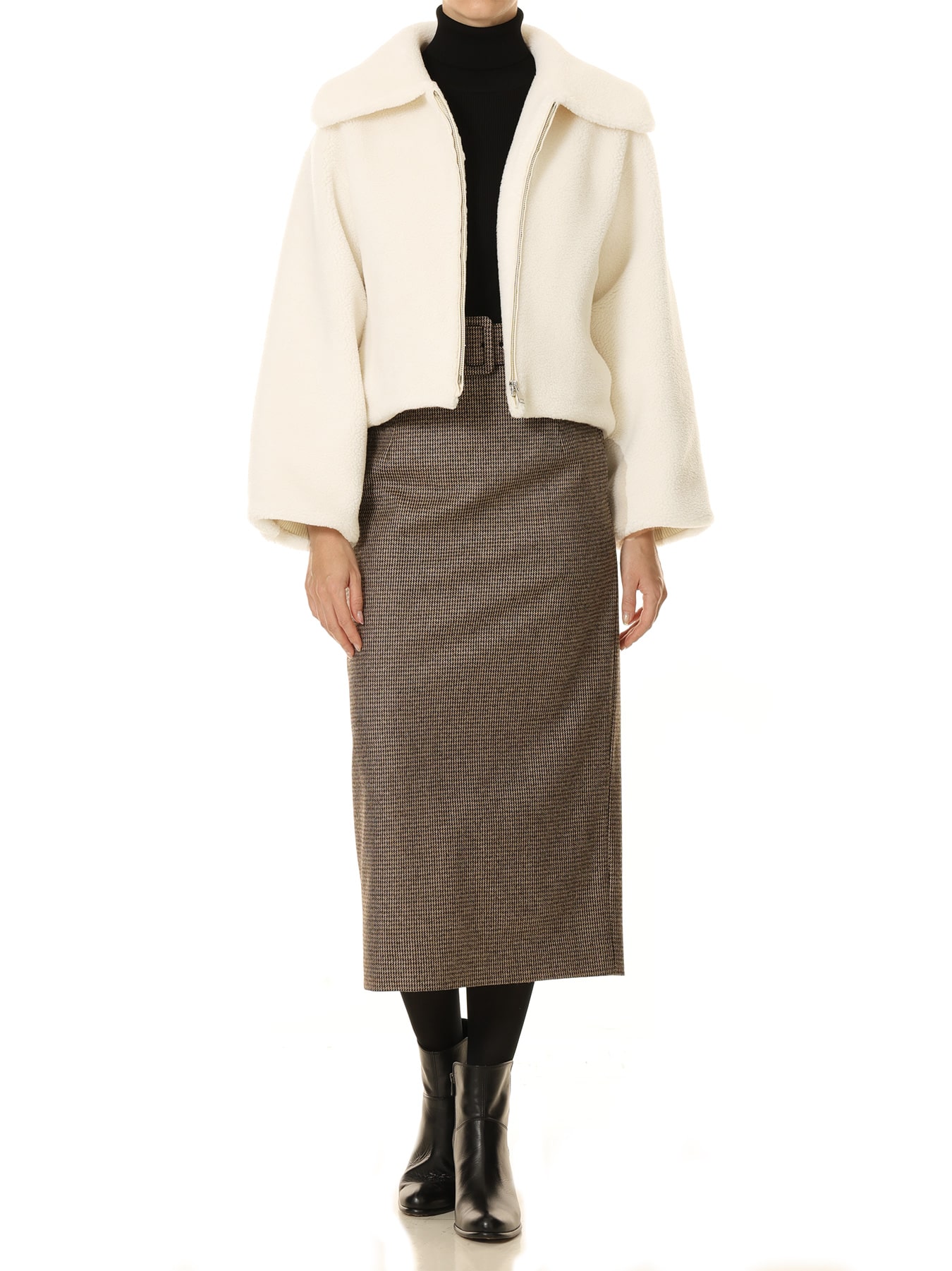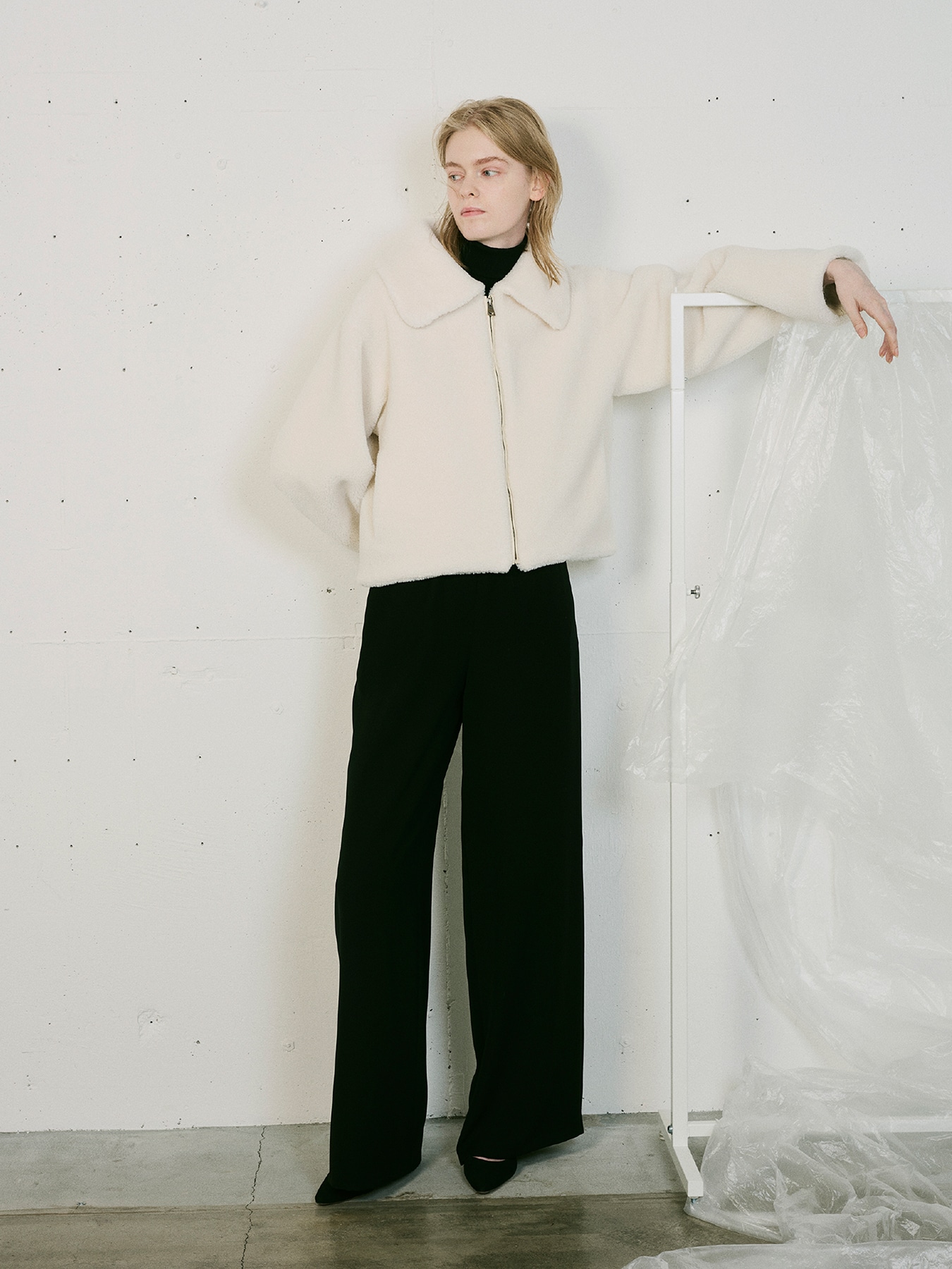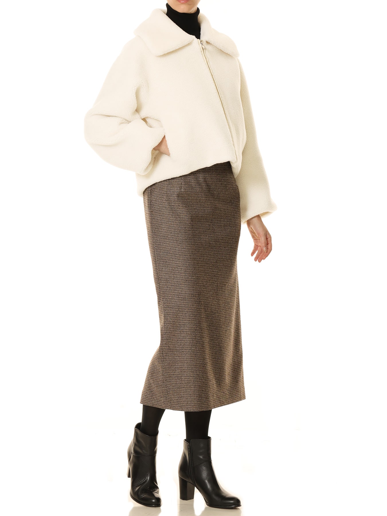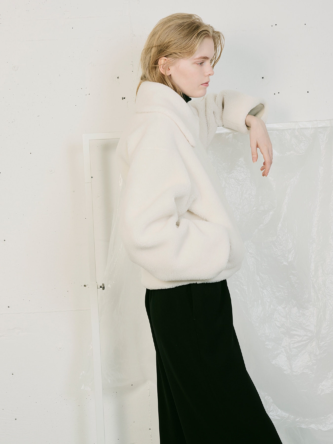 ふんわりとした素材感がシーズンムードを高める、ボアショートコート。コンパクトな丈感が全身のバランスを美しく整え、軽やかさとモード感を両立した一枚です。柔らかく上品な表情のボア素材は、羽織るだけで装いに華やぎを添えてくれるのも魅力。パンツスタイルに合わせればスタイリッシュに、スカートと組み合わせれば女性らしいエレガンスが引き立ちます。デイリーからお出かけまで幅広いシーンで活躍する、汎用性の高いショートアウターです。 ・裏地あり ・ポケットあり ・フロントファスナー開き ・ジャストフィット。通常サイズをおすすめします。 【お問い合わせ品番】 IVORY:U246-002 BLACK:U246-003
