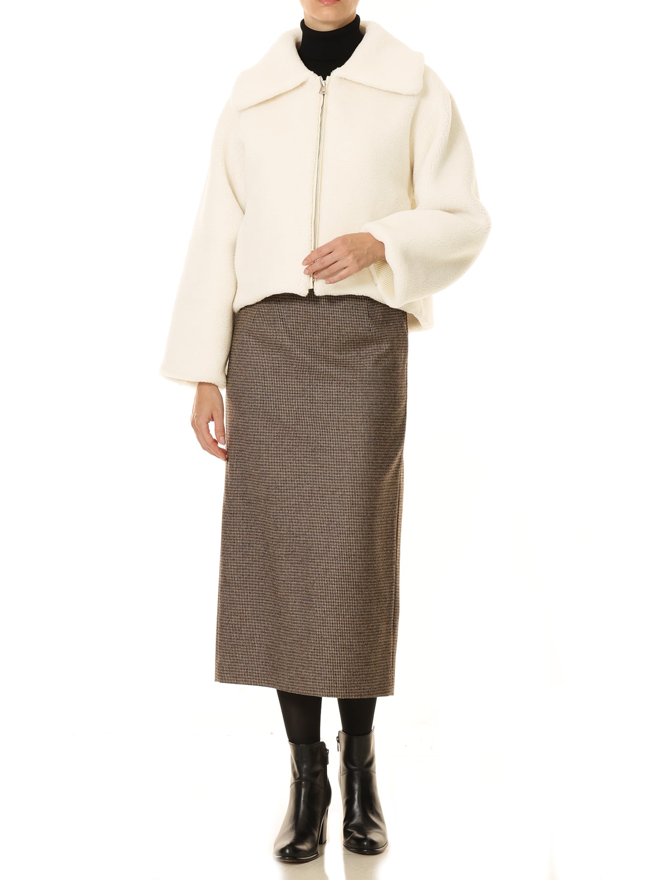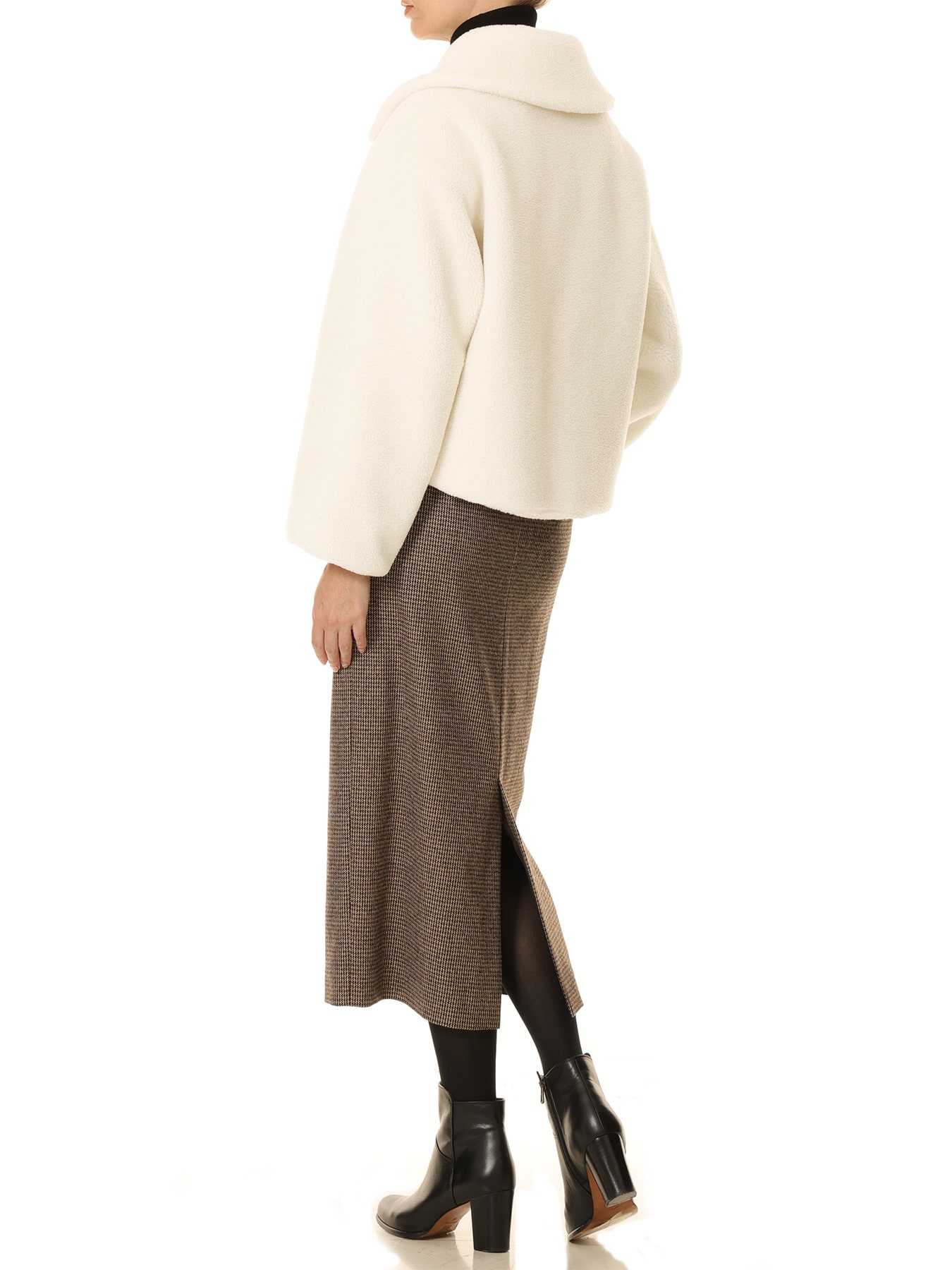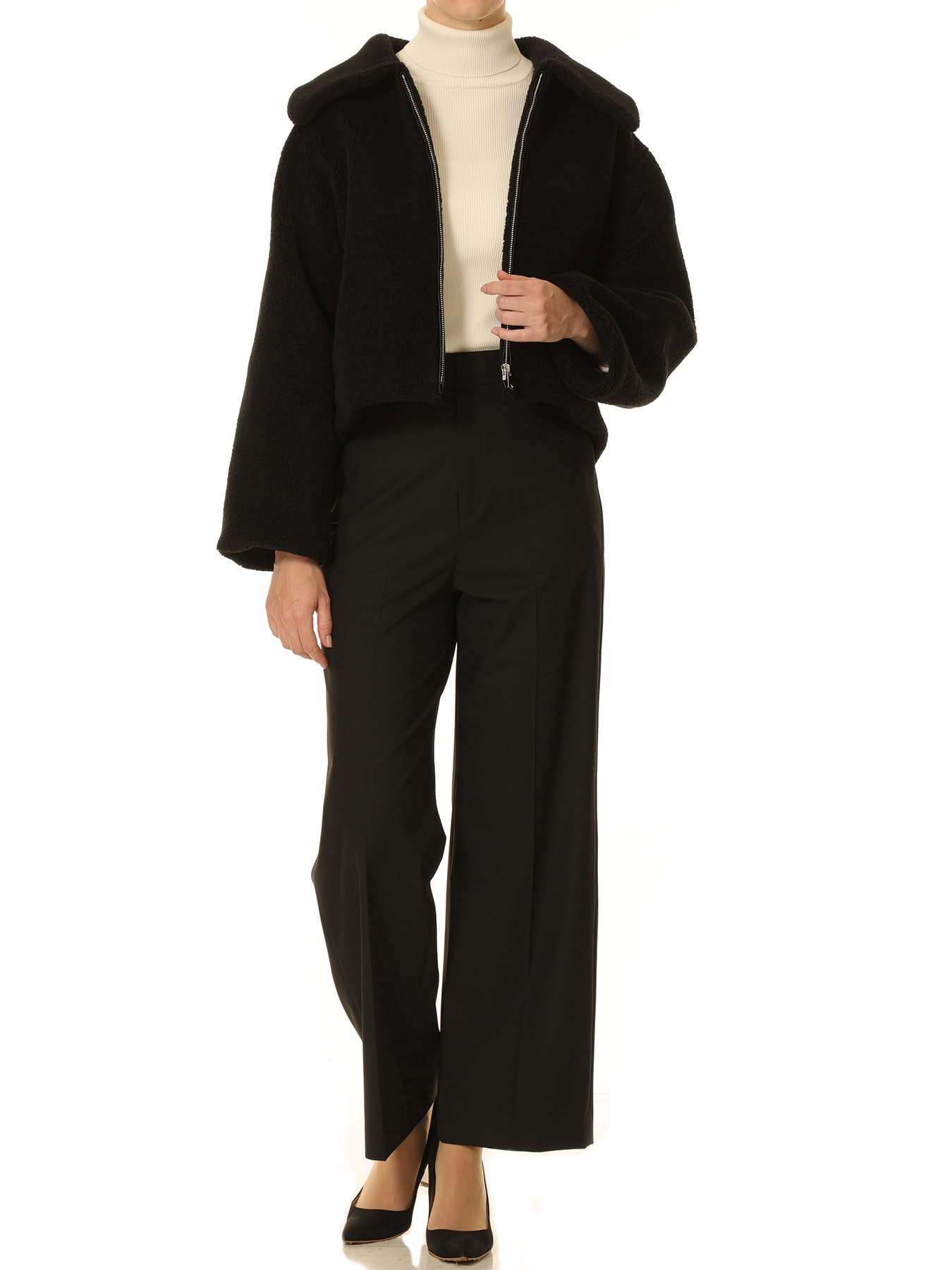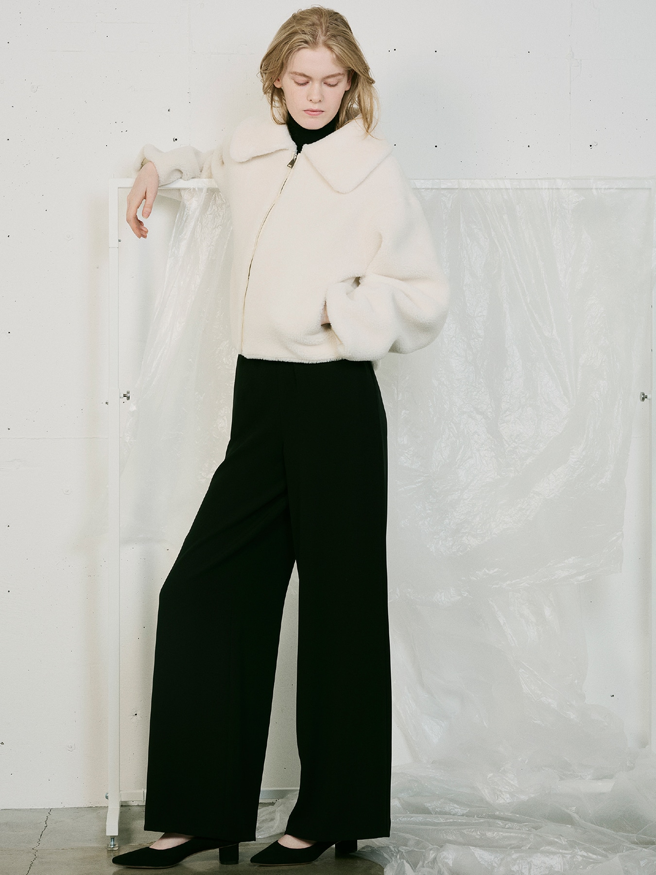 ふんわりとした素材感がシーズンムードを高める、ボアショートコート。コンパクトな丈感が全身のバランスを美しく整え、軽やかさとモード感を両立した一枚です。柔らかく上品な表情のボア素材は、羽織るだけで装いに華やぎを添えてくれるのも魅力。パンツスタイルに合わせればスタイリッシュに、スカートと組み合わせれば女性らしいエレガンスが引き立ちます。デイリーからお出かけまで幅広いシーンで活躍する、汎用性の高いショートアウターです。 ・裏地あり ・ポケットあり ・フロントファスナー開き ・ジャストフィット。通常サイズをおすすめします。 【お問い合わせ品番】 IVORY:U246-002 BLACK:U246-003
