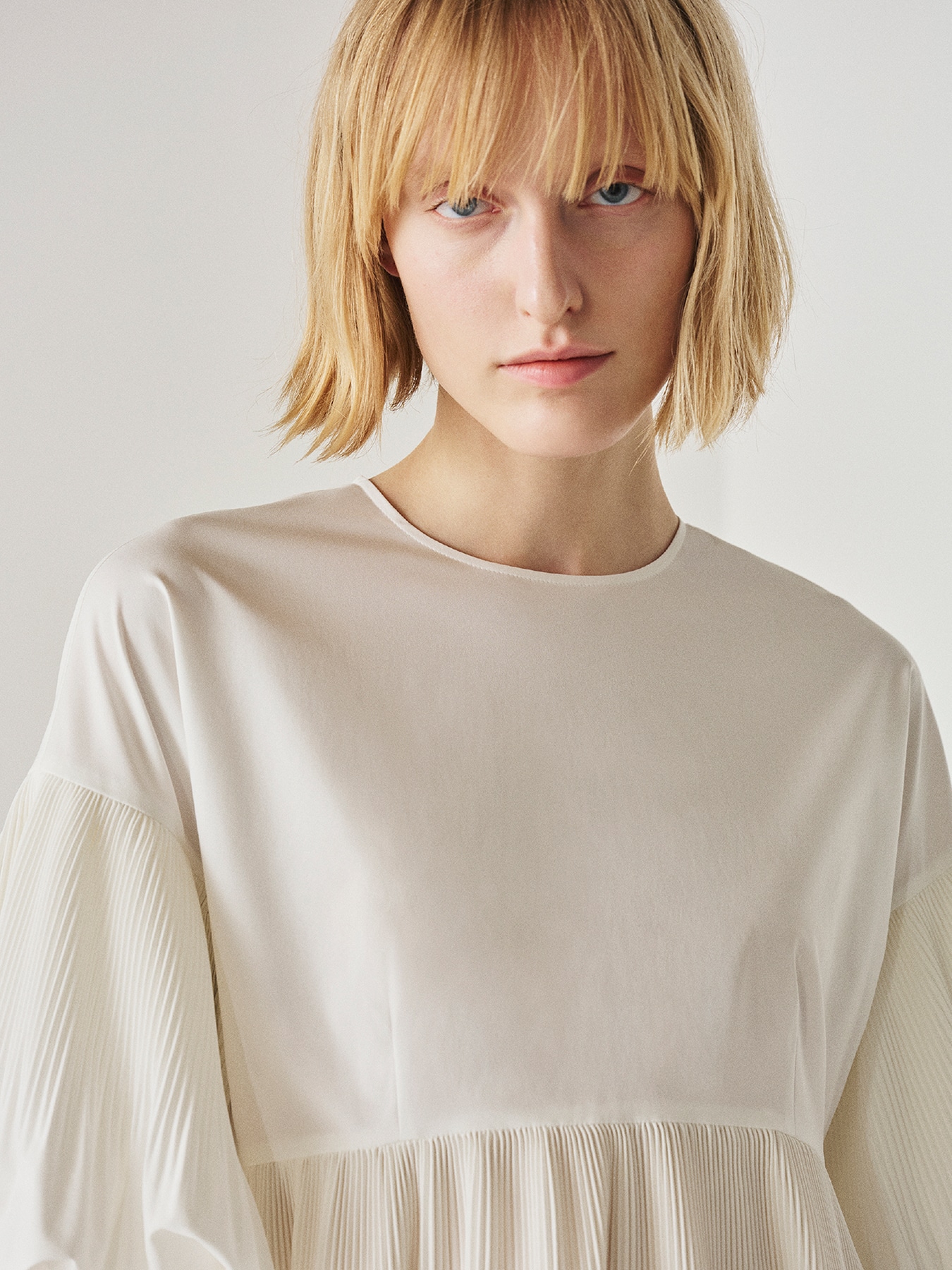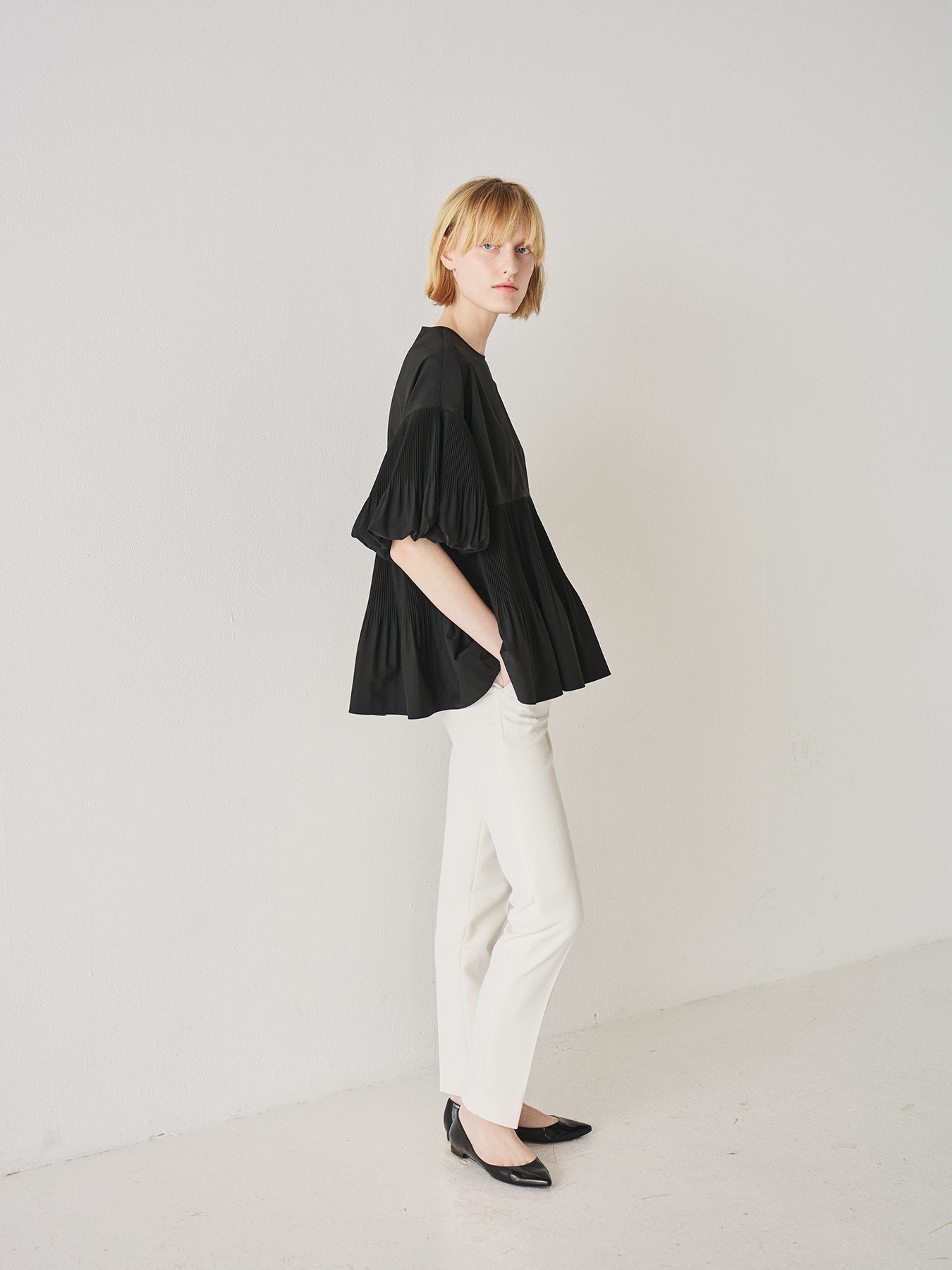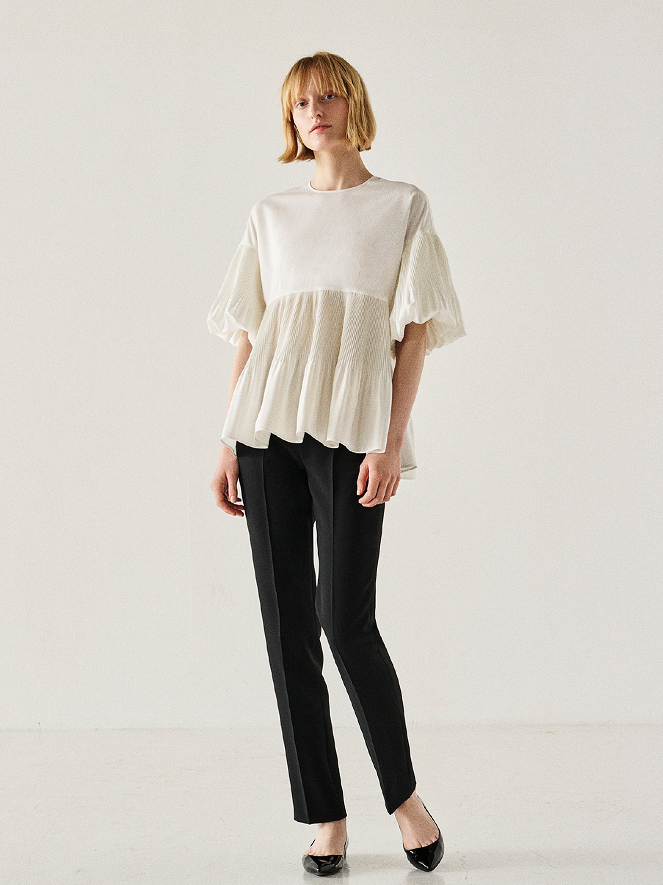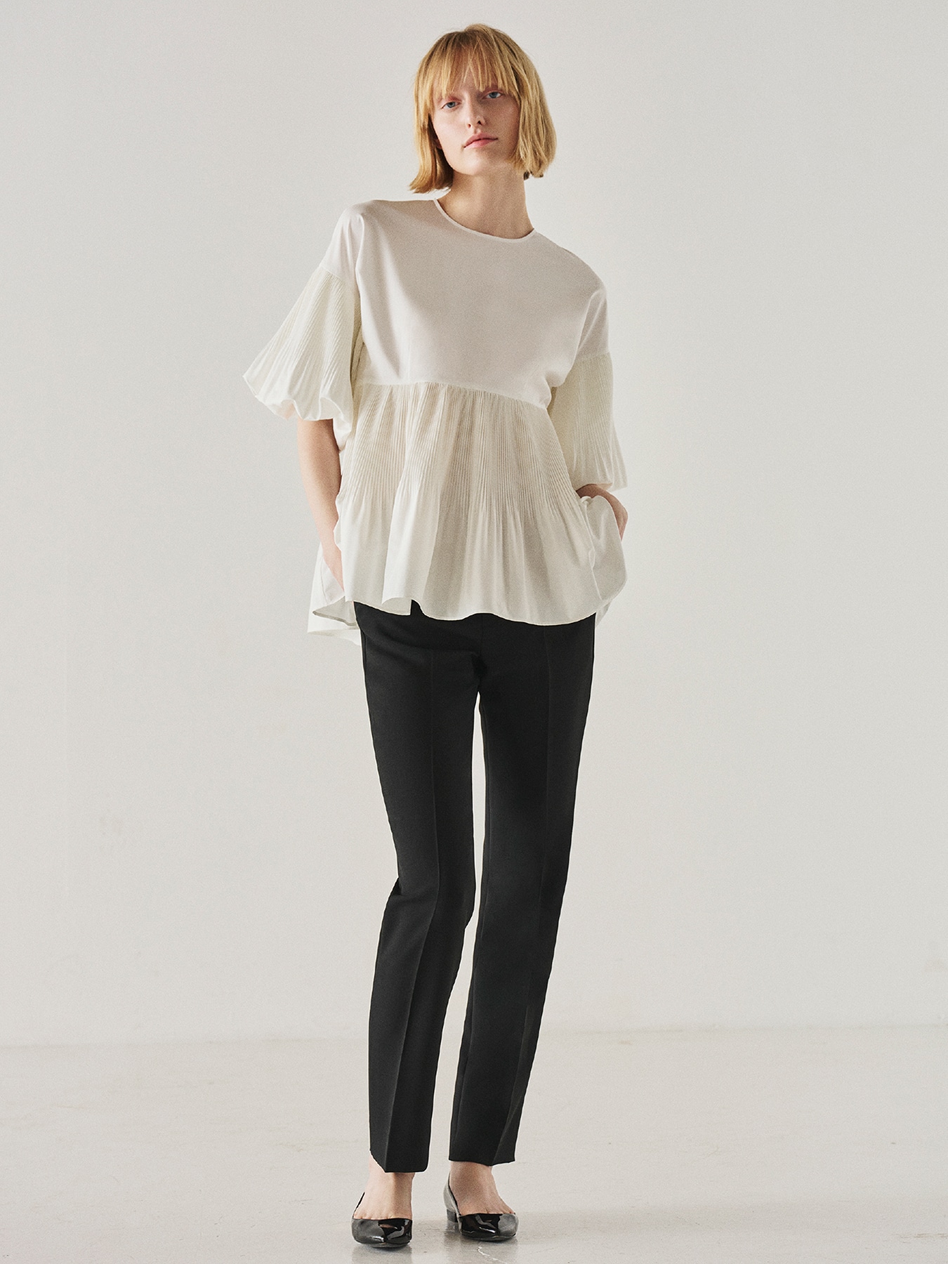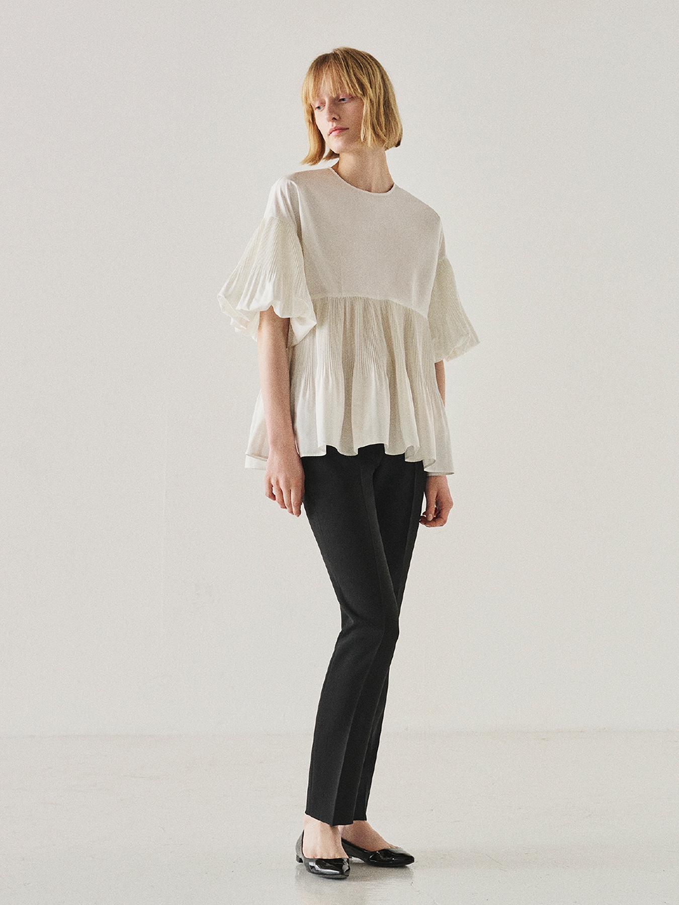 アコーディオンプリーツフレアブラウス