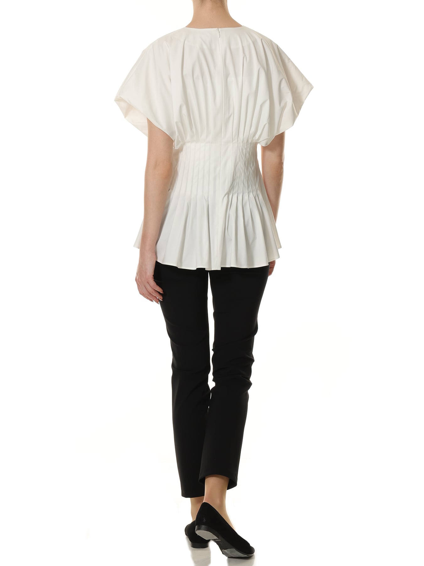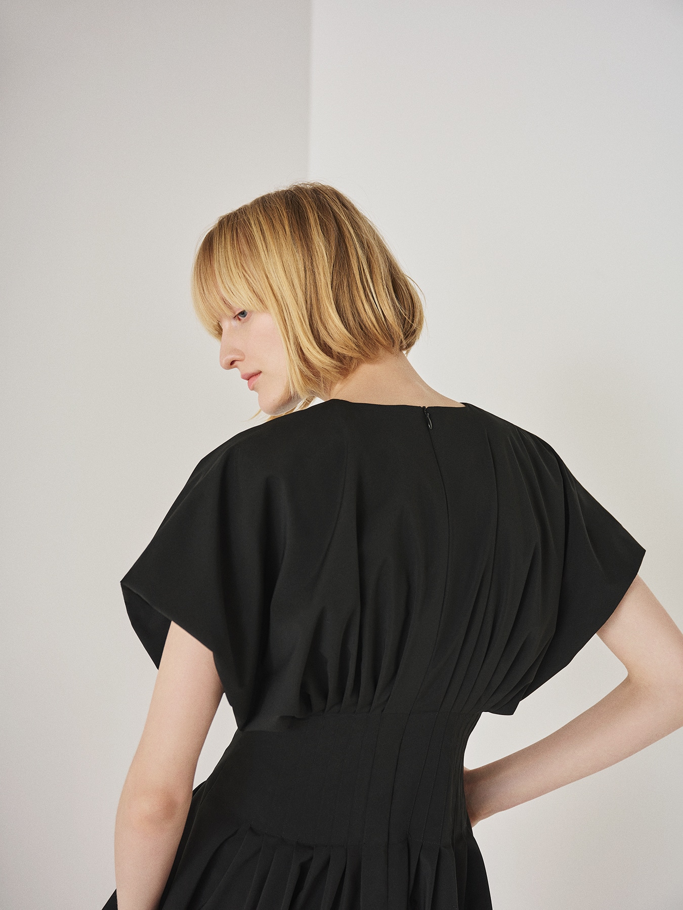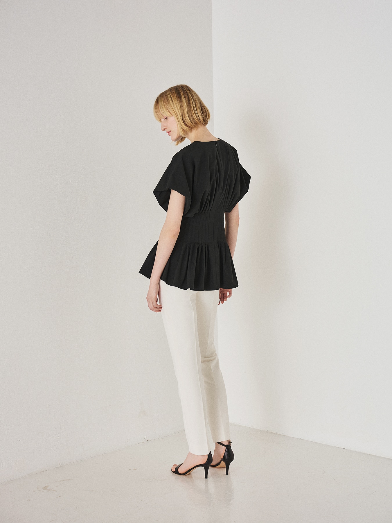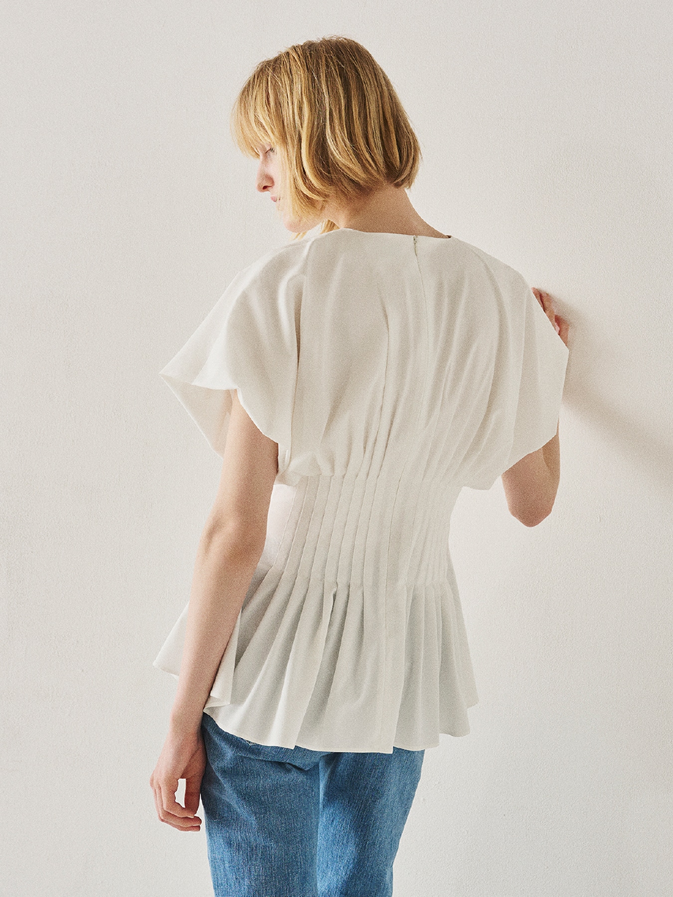 ウエストのタックシェイプのデザインがスタイルアップを叶えるブラウス。肩幅が目立ちにくく華奢見えが叶うスリーブデザインは、袖山に細かくギャザーを寄せた膨らみ感のあるパフスリーブ。暑くなる季節にも嬉しい吸水速乾性を備えた、柔らかく清涼感のあるタイプライターの素材感。程よいはり感のあるナチュラルな質感で、しわになりにくく透けにくいのも魅力の一つ。すっきりとしたテーパードパンツなどシンプルなボトムと合わせていただくだけで洗練されたスタイルが完成します。 ・ご家庭で手洗い可能 ・身頃上側のみ裏地あり ・バックコンシールファスナー開き ・WHITEは透け感あり ・スチーム可能 ・ジャストフィット。通常サイズをお勧めします。 ・モデル身長171cm/バスト82cm/ウエスト60cm/ヒップ88cm/Mサイズ着用 【お問い合わせ品番】 U347-002