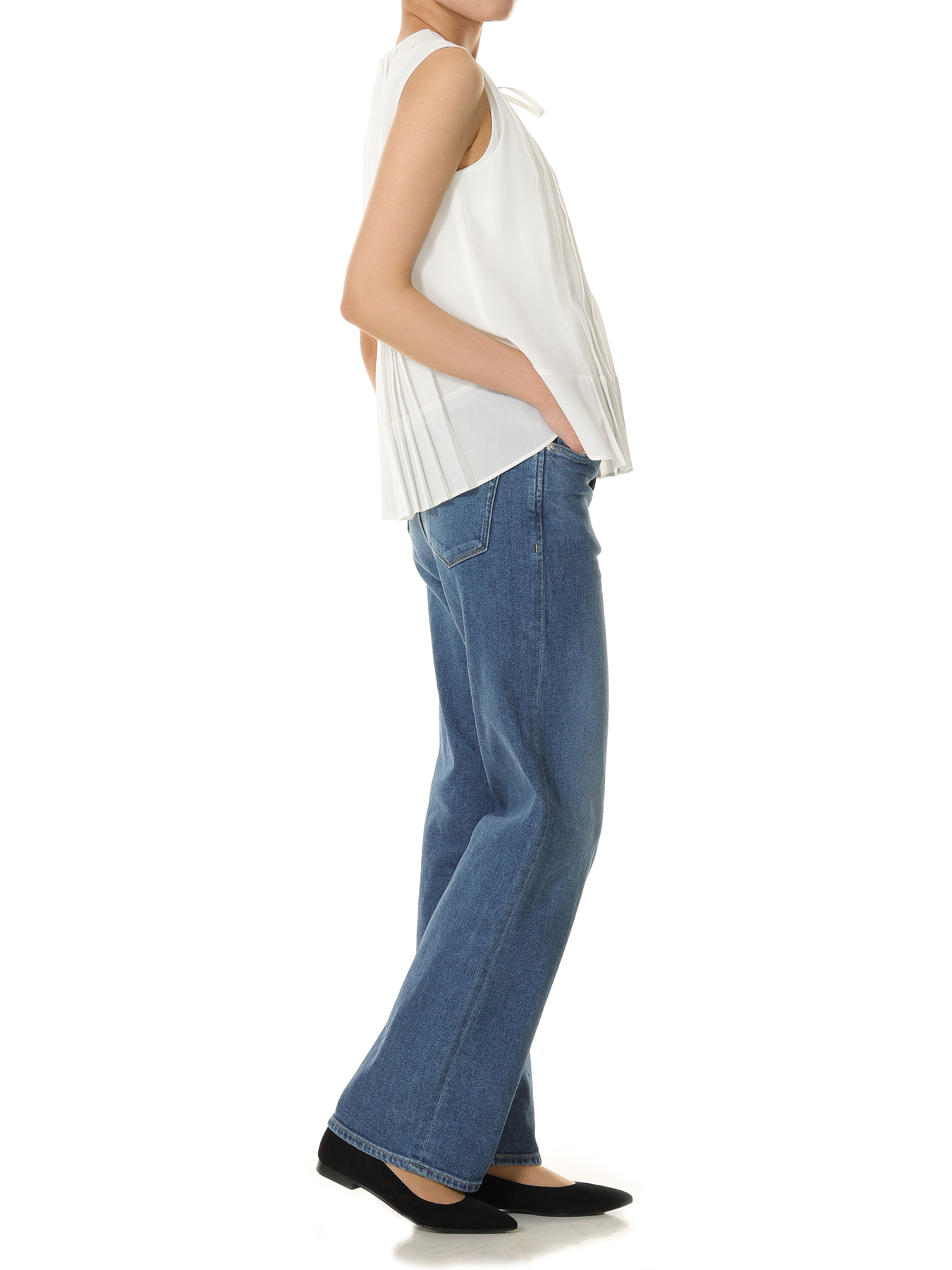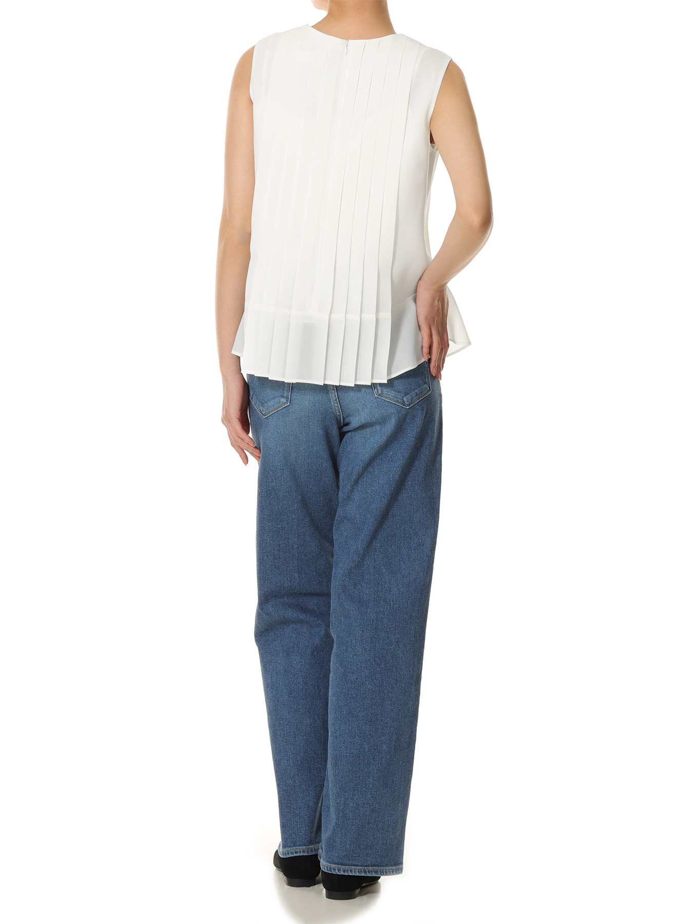 繊細なディテールが際立つ、エレガントかつモードな印象のブラウス。前後にたっぷり施された立体的なタックデザインが縦のラインを美しく引き立て、すっきりと洗練された表情を演出します。ネック部分の華奢なリボンがさりげないアクセントとなり、甘さを抑えた上品な女性らしさをプラス。軽やかな透け感を持つボイル素材を使用し、空気を含むような柔らかな動きが、装いに抜け感と軽快さをもたらします。スカートスタイルには、タイトスカートやナロースカートを合わせて、トップスのボリューム感とのコントラストを楽しむ着こなしがおすすめです。ワントーンでまとめることで、よりモードで洗練された印象に仕上がります。フレアスカートと合わせれば、軽やかで女性らしいエレガントスタイルが完成します。パンツスタイルには、センタープレスパンツやテーパードパンツを合わせてシャープに。フロントのタックが縦ラインを強調し、スタイルアップ効果も期待できます。デニムと合わせたカジュアルミックススタイルも、素材の軽やかさが上品さを保ち、大人の抜け感ある着こなしをお楽しみいただけます。 ・ご家庭で手洗いが可能 ・透け感あり ・裏地あり ・バックコンシールファスナー開き ・スチーム可能 ・ジャストフィット。通常サイズをおすすめします。 ・モデル身長170cm/バスト82cm/ウエスト59cm/ヒップ87cm/Mサイズ着用 【お問い合わせ品番】 U347-003