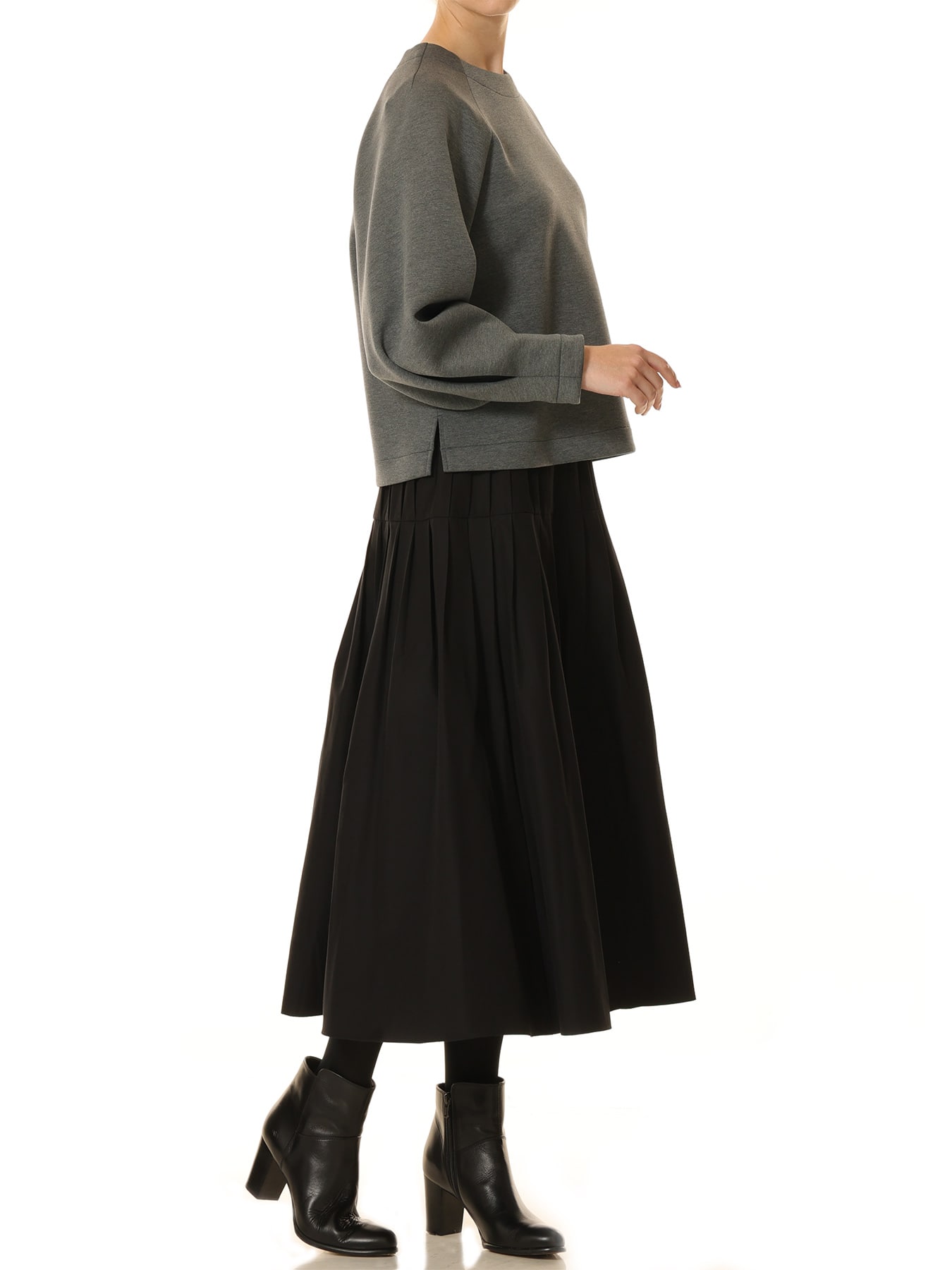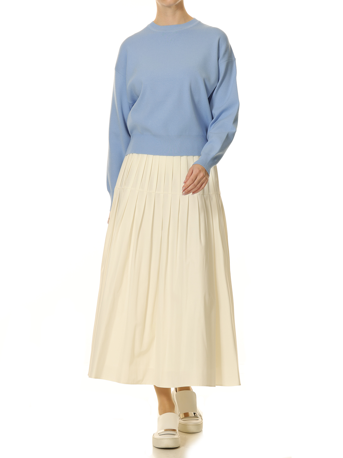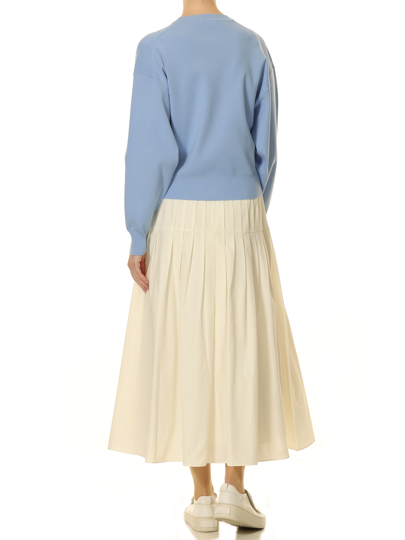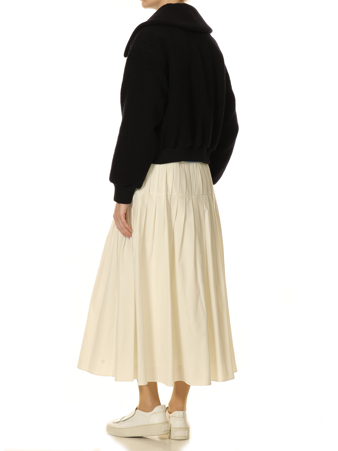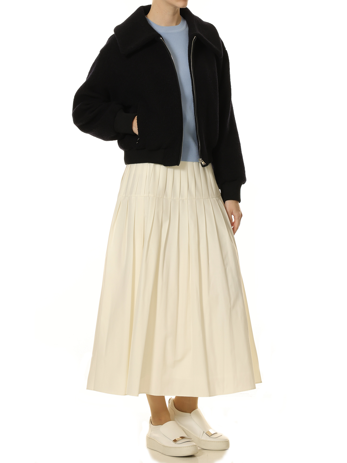タックテクニックによって規則的に並んだプリーツデザインがBLENHEIMらしいモダンな雰囲気を醸すロングスカート。程よいはり感を持つ素材感は撥水機能で雨の日も安心してお召いただけ、UV加工や接触冷感によって暑い季節にも快適に着用いただけるのが嬉しいポイント。ヒップ回りはタイトなフィットに裾のフレア感がエレガントな一枚は、プレスの効いたプリーツデザインによって縦のラインが生まれ、着やせ効果が叶います。トップスはコンパクトな丈感のアイテムやタックインしてすっきりとまとめてコーディネートしていただくのがお勧めです。 ・抗UVカット加工素材 ・接触冷感素材 ・撥水加工素材 ・ご家庭で手洗い可能 ・OFF WHITEは裏地あり ・バックコンシールファスナー開き ・スチーム可能(プリーツ部分は不可) ・OFF WHITEはやや透け感あり ・ジャストフィット。通常サイズをお勧めします。 【お問い合わせ品番】 U446-003 OFF WHITEのみ:U446-002