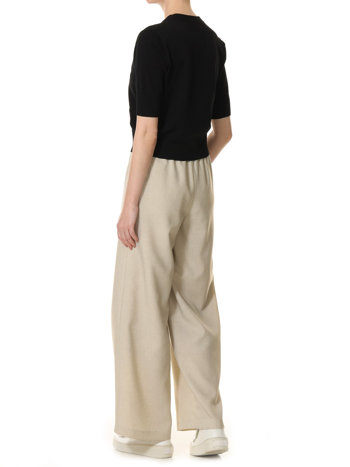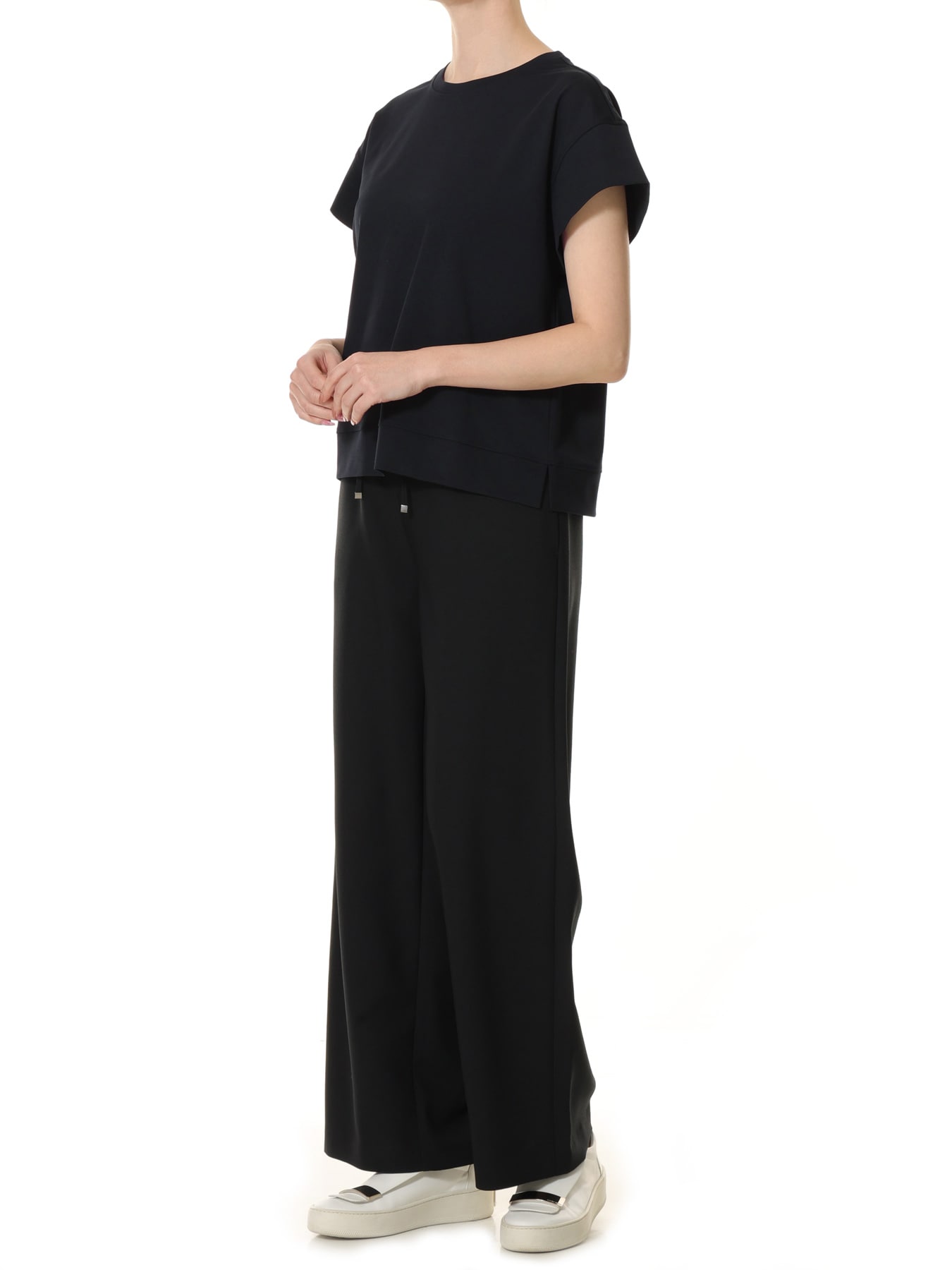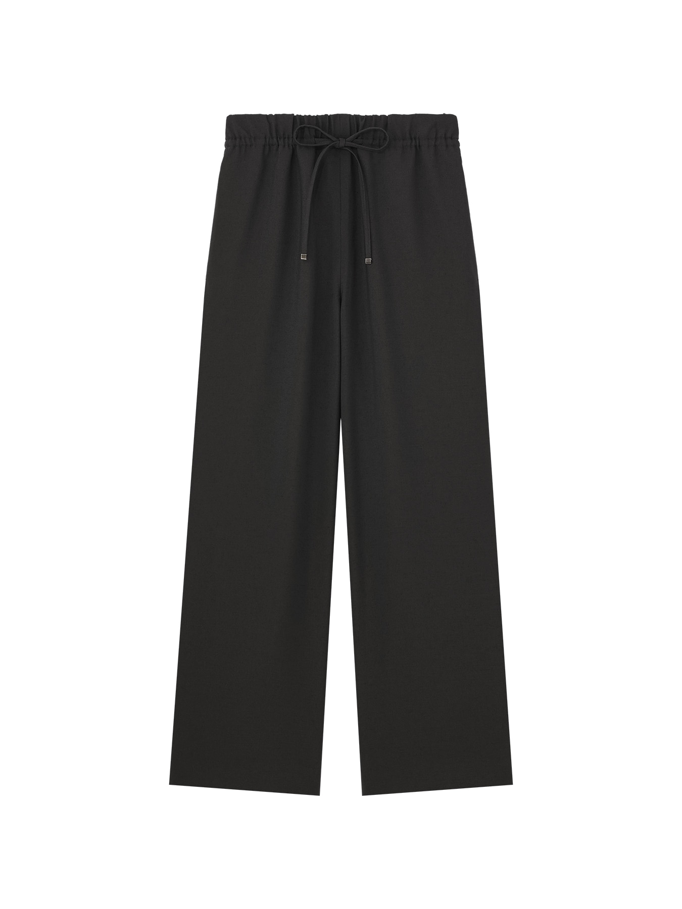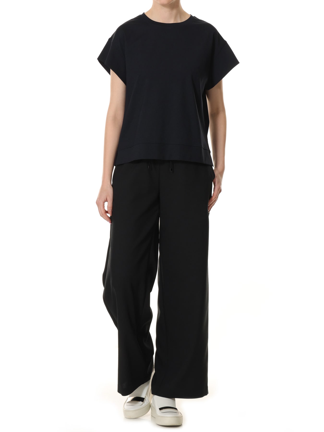 ウエストの総ゴム仕様にドローストリングデザインがアクセントになったワイドパンツ。ナチュラルな風合いが特徴のオックス素材によって、軽やかに季節感漂うスタイルへ導きます。リラックス感あるストレッチ性も魅力の一つで、普段使いからお出かけにも頼れるストレスフリーな着用感。ウエストのデザインを引き立てるようにトップスはタックインしてのコーディネートもお勧め。デザインがありながらもコンパクトな腰回りなので、トップスアウトもすっきりとお召いただけます。落ち感のあるマテリアルによって美しいシルエットが叶います。 ・ご家庭で手洗い可能 ・IVORYのみ裏地あり ・IVORYはやや透け感あり ・両脇シームポケットあり ・スチーム可能ですが、過度なスチームを当てることにより、水分を多く含んでしまうと縮みや波打ちが発生しやすくなりますのでご注意ください。 ・ジャストフィット。通常サイズをお勧めします。 ・モデル身長171cm/バスト82cm/ウエスト60cm/ヒップ88cm/Mサイズ着用 【お問い合わせ品番】 IVORY:U547-011 BLACK:U547-012