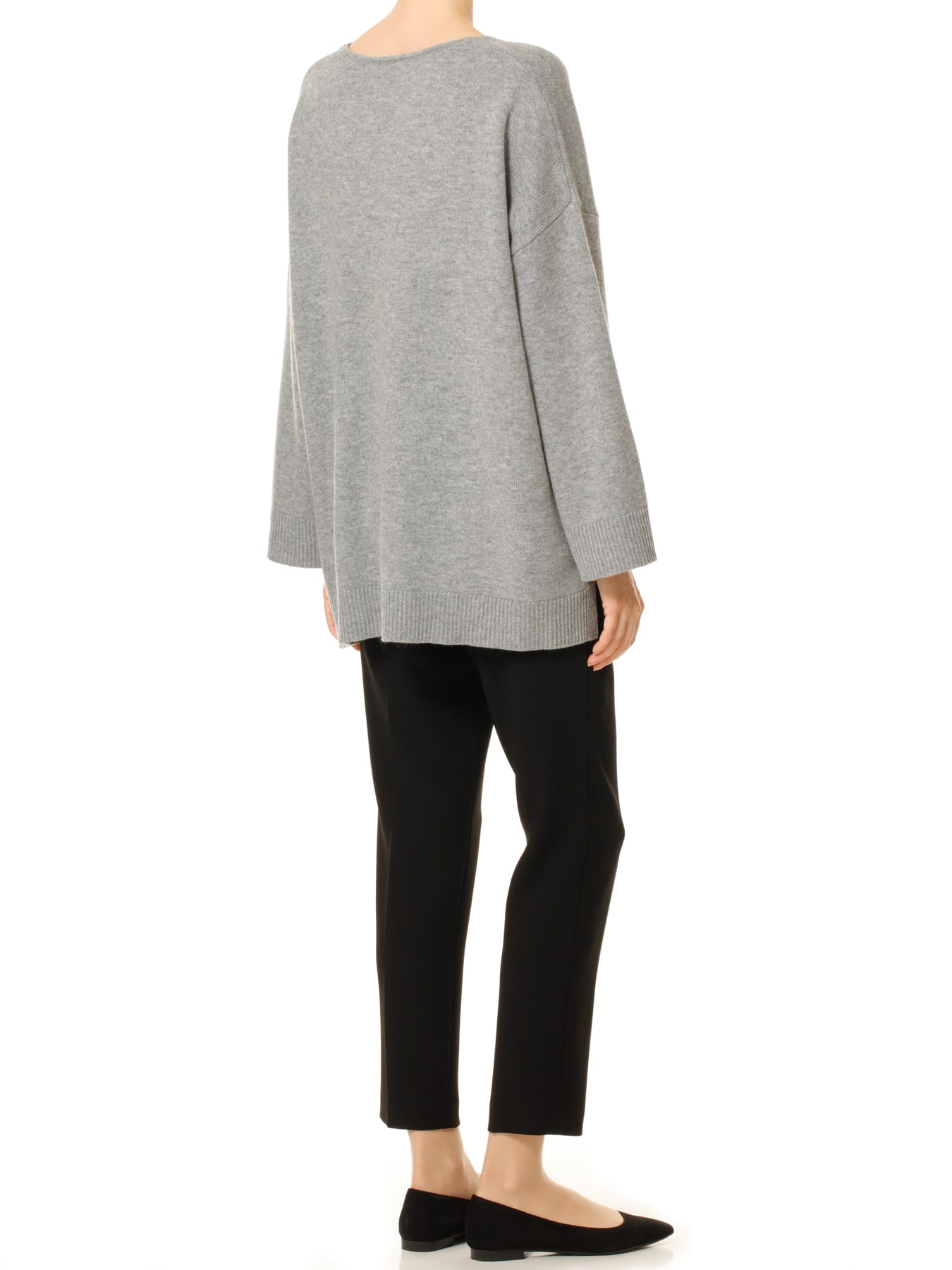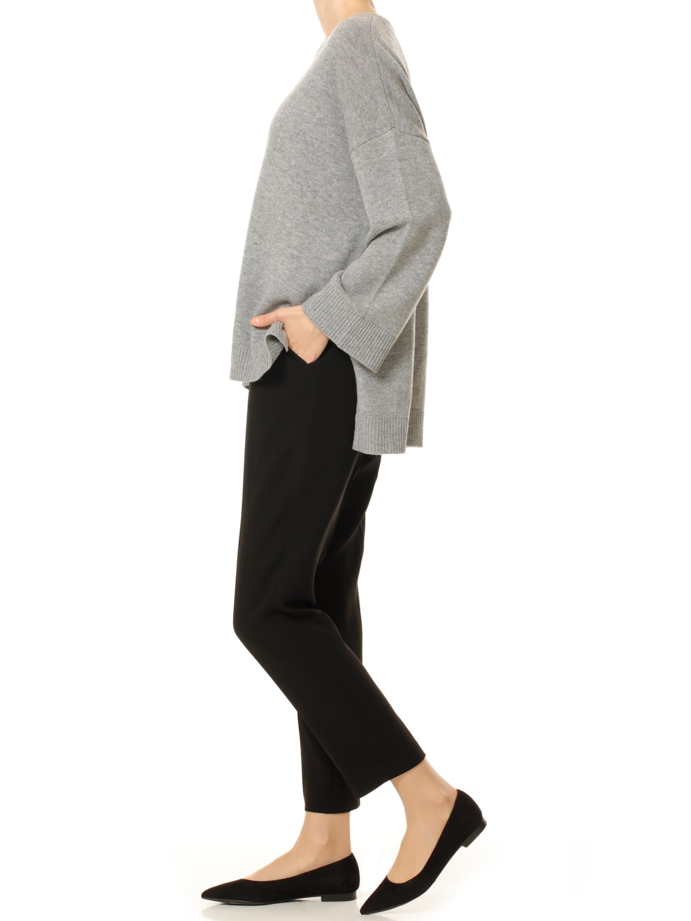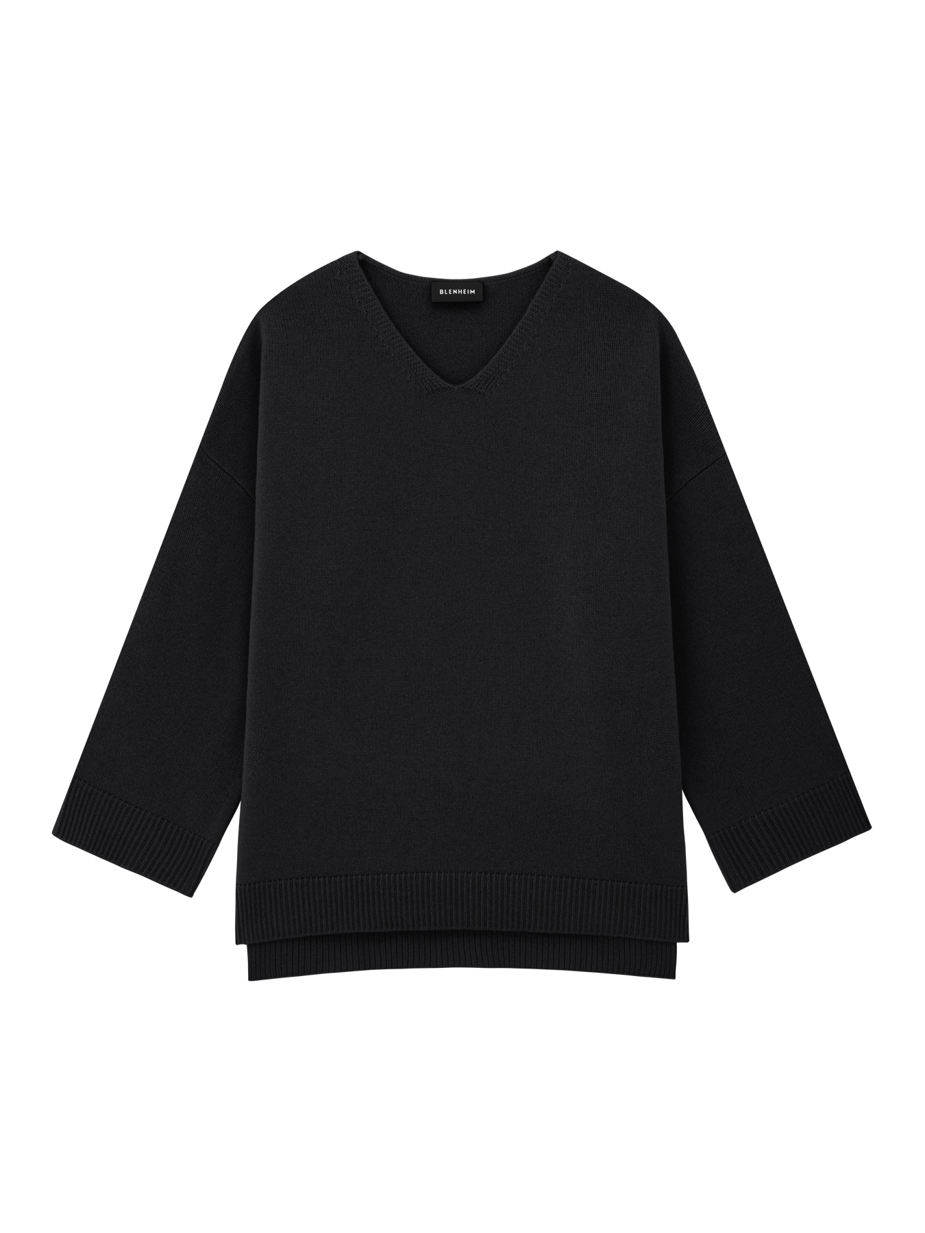 カシミヤとウールブレンドの素材感が暖かく包み込むニットプルオーバー。前後差のあるヒップが隠れる程の丈感で、身幅のゆとりのあるサイズ感と、華奢みえするドロップショルダーがボディラインをカバーしながらリラックスしてお召しいただけます。首元のVネックラインはデコルテを美しく演出します。サイドのスリットは抜け感をプラスしボトムとも合わせやすく、コーディネートしていただけます。 ・淡色はやや透け感あり ・身幅はゆとりのあるフィット。通常サイズをお勧めします。 ・モデル身長173cm/バスト85cm/ウエスト62cm/ヒップ90cm/Mサイズ着用 【お問い合わせ品番】 U741-015
