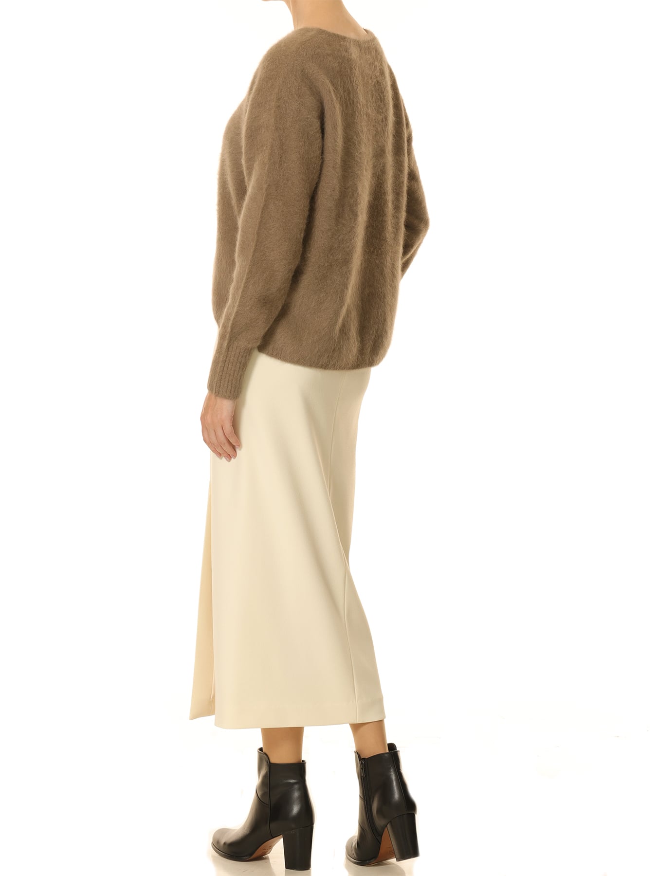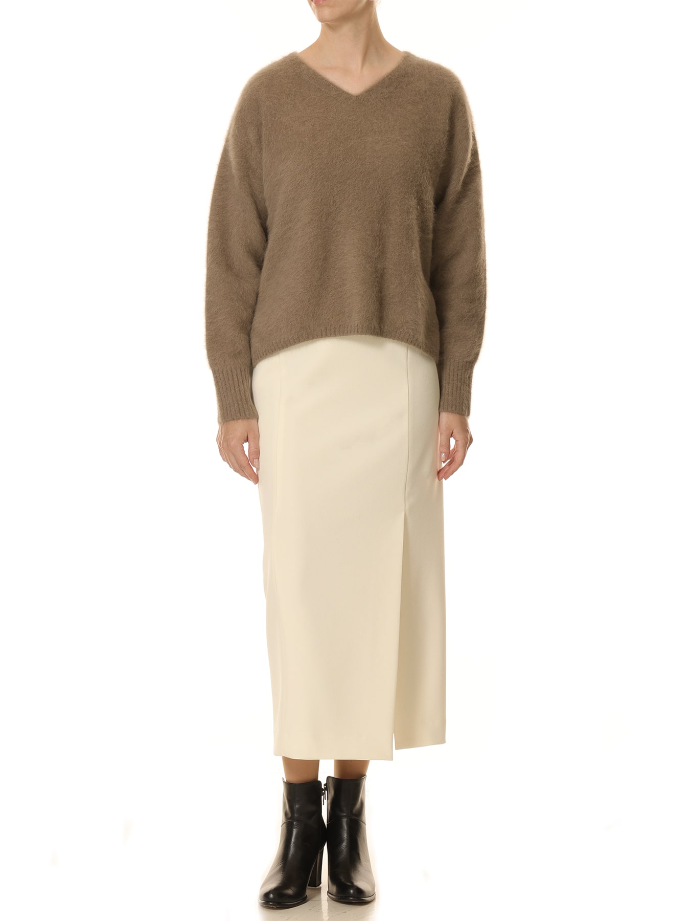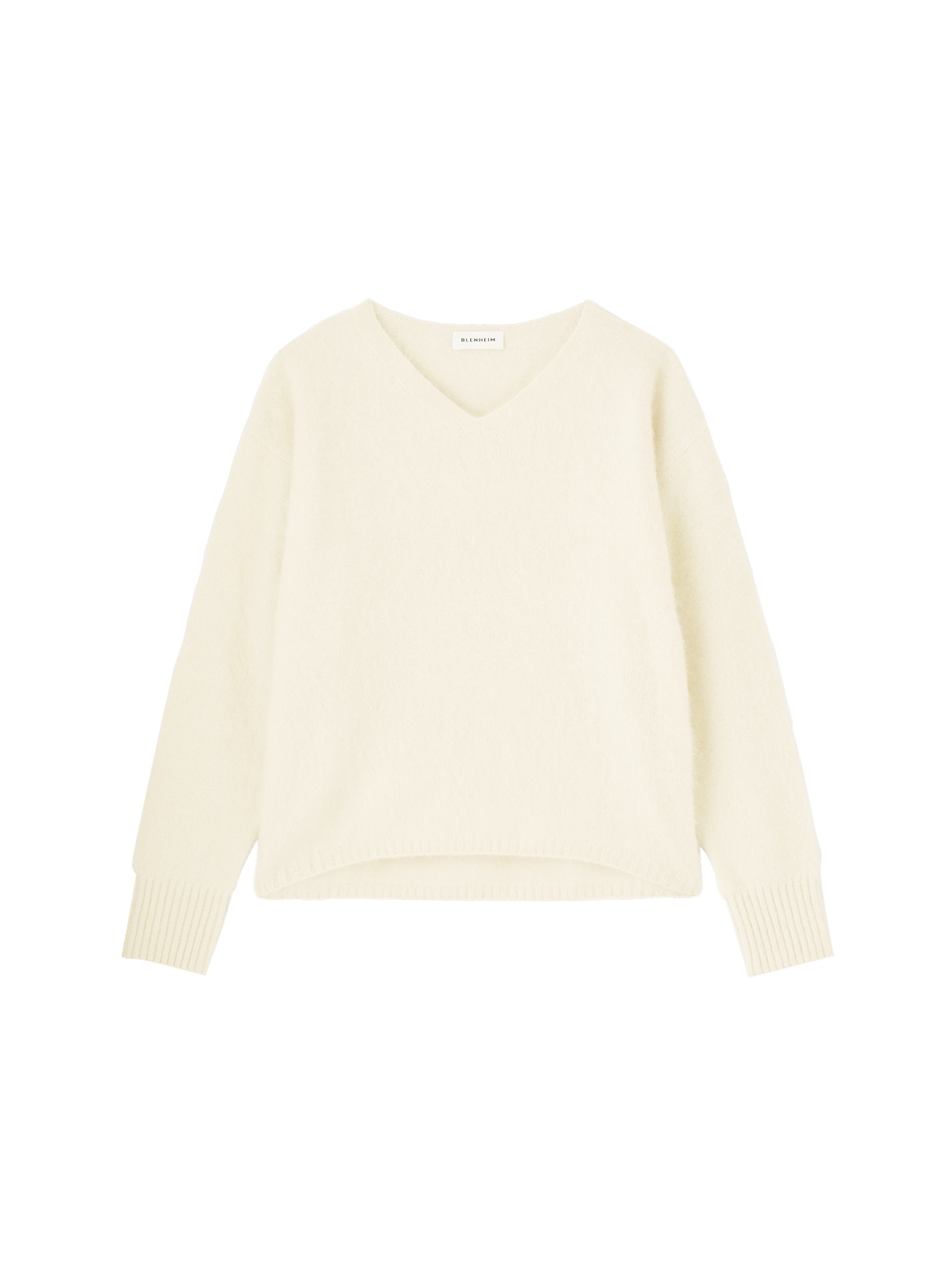 カシミヤブレンドの保温性に優れたニットプルオーバー。思わず触れたくなるようなふわふわと柔らかな質感が体を優しく包み込みストレスフリーな着心地が魅力です。ゆとりのある身幅のデザインが程よく抜け感を与えてくれ、Vネックにすることでお顔周りはすっきりと見せてくれます。両脇にはスリットがあり、丈感はコンパクトなのでボリュームのあるボトムとも好相性。ベーシックなカラー展開で着回し力に優れ、一枚で上質な印象を与えてくれる優秀なニットです。 ・身頃はゆとりのあるフィット。通常サイズをお勧めします。 ・モデル身長171cm/バスト82cm/ウエスト60cm/ヒップ88cm/Sサイズ着用 【お問い合わせ品番】 U746-008