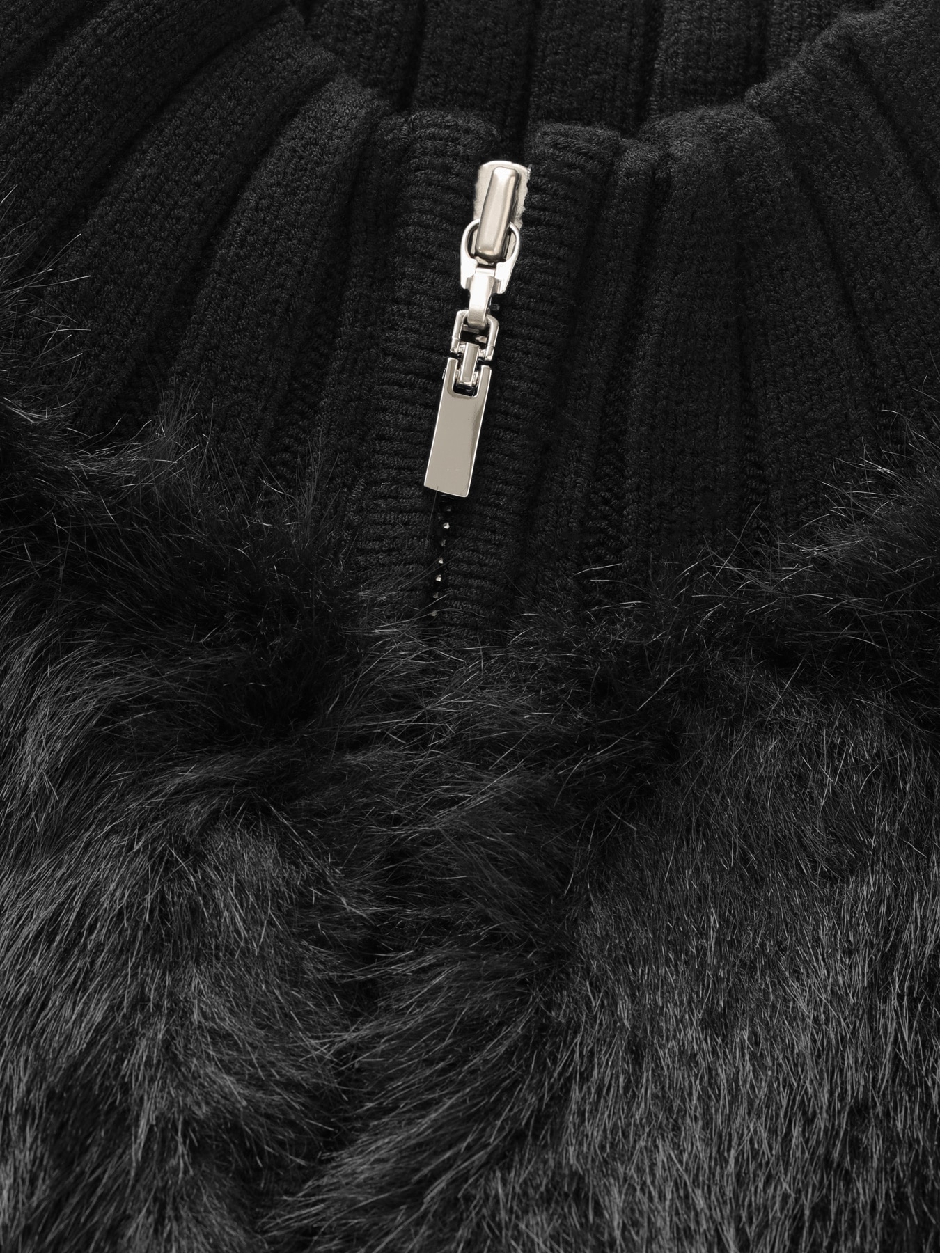 フロントにあしらわれたフェイクファーが、シンプルなニットジャケットにラグジュアリーな表情を添える一枚。異素材のコントラストが生み出す立体感と、ほどよくコンパクトなシルエットがスタイルアップを叶えます。身頃には柔らかなファー、袖と背面にはリブニットを組み合わせることで、上品さと動きやすさを両立。スカートを合わせれば女性らしいエレガンスを、パンツを合わせればモードで洗練された印象に。軽やかに羽織れる着丈で、秋口から冬まで幅広く活躍します。上質な素材感が際立つ、シーズンスタイルの主役にふさわしいニットジャケットです。 ・フロントファスナー開き ・ファー部分のみ裏地あり ・ジャストフィット。通常サイズをお勧めします。 【お問い合わせ品番】 U746-010
