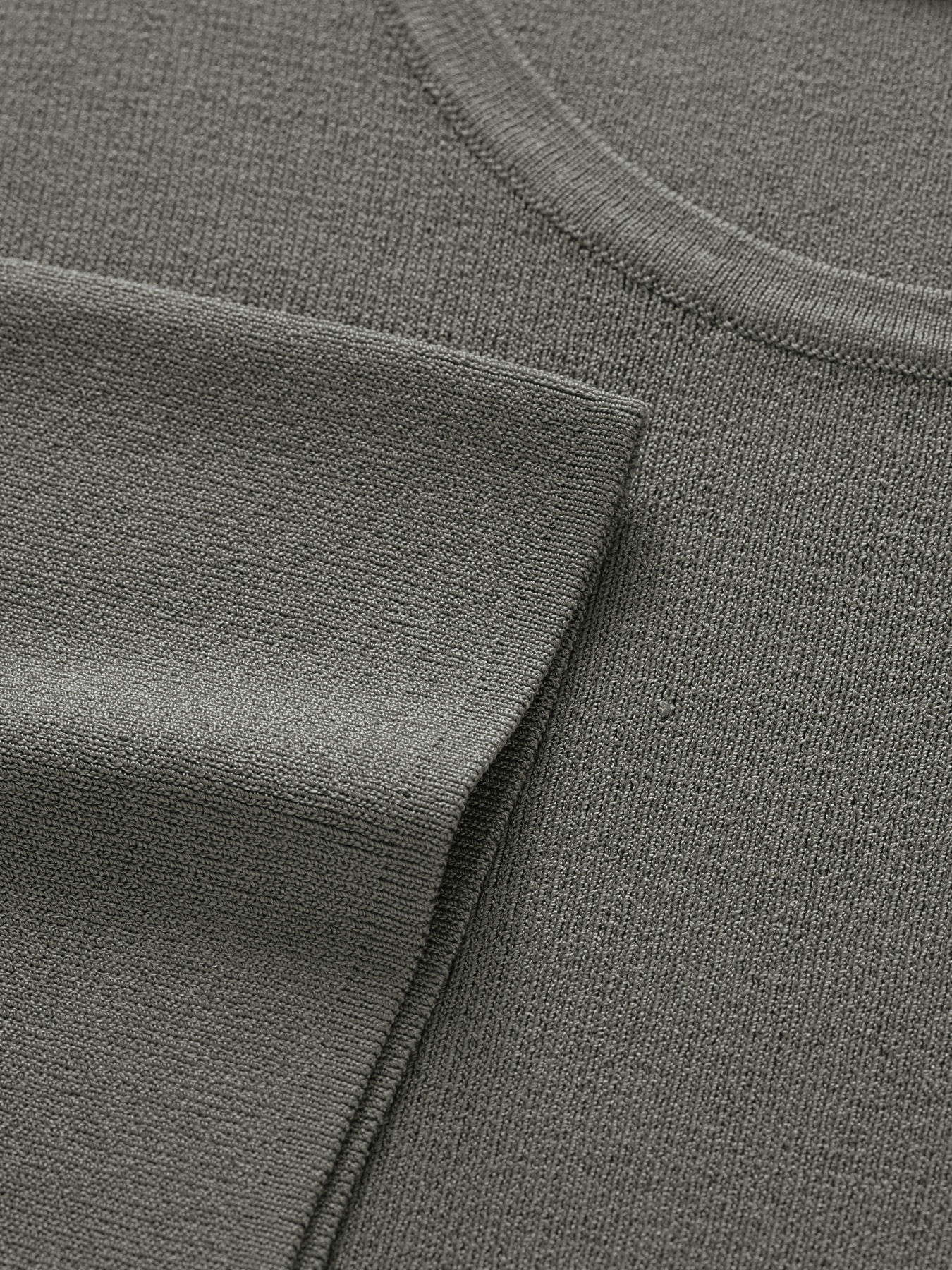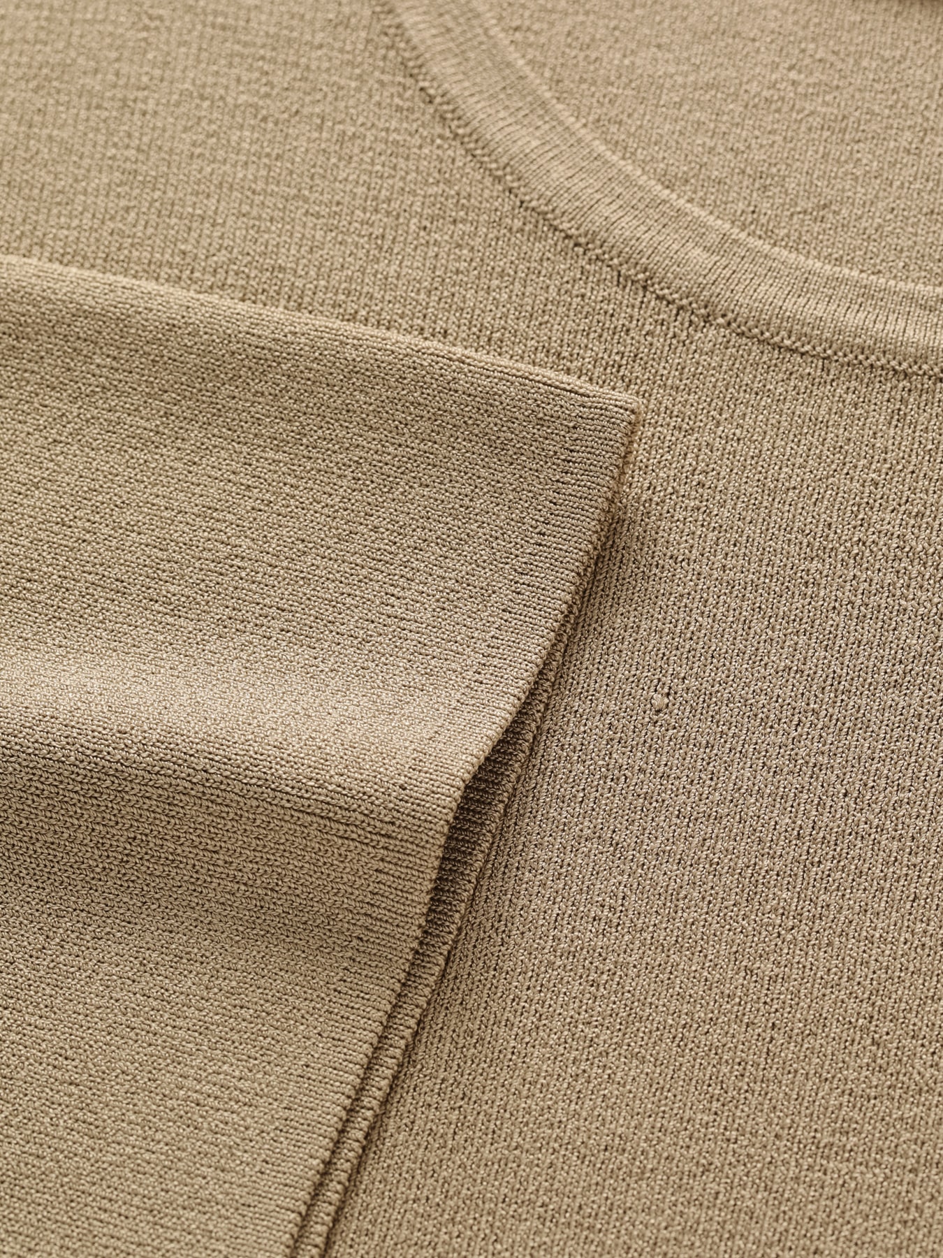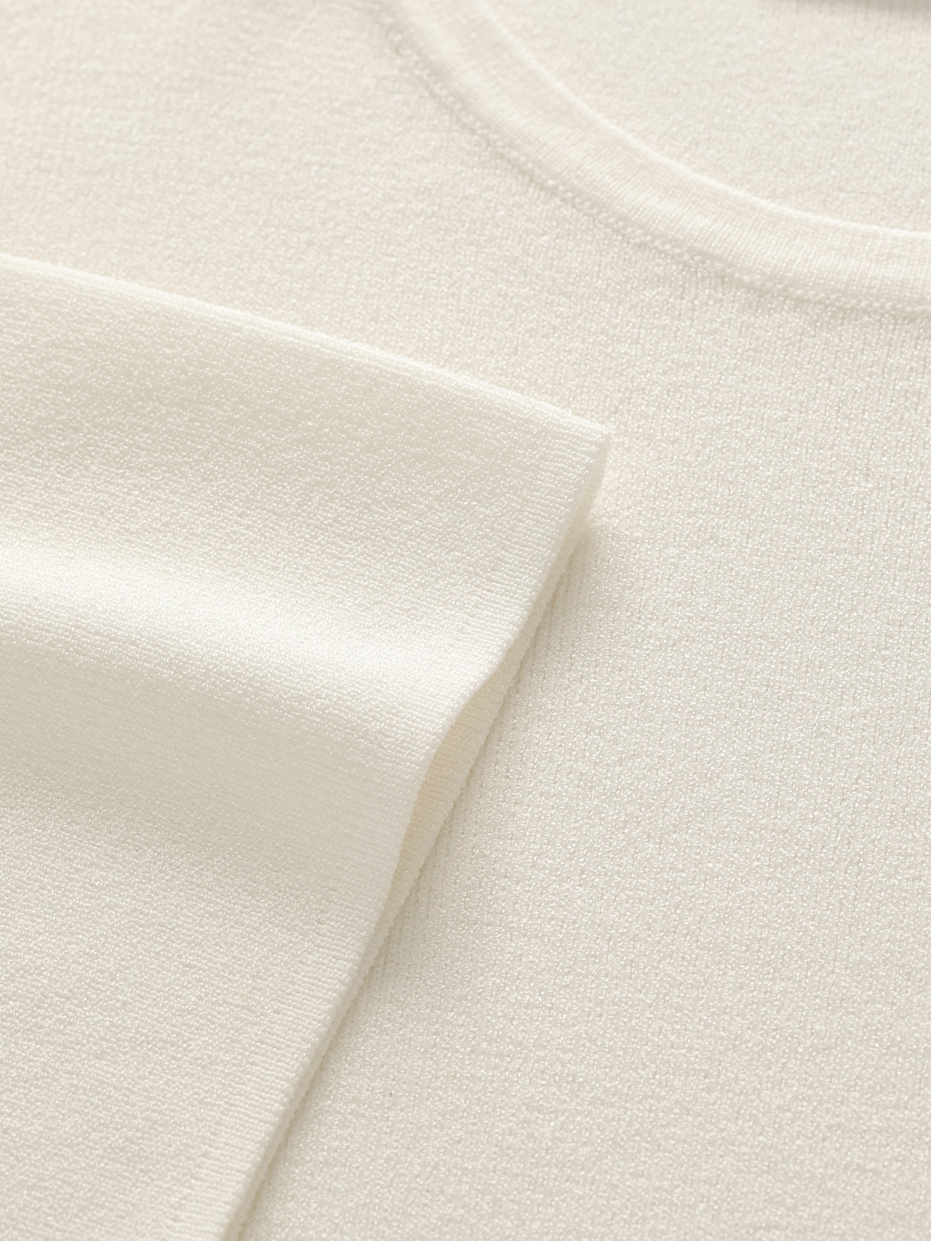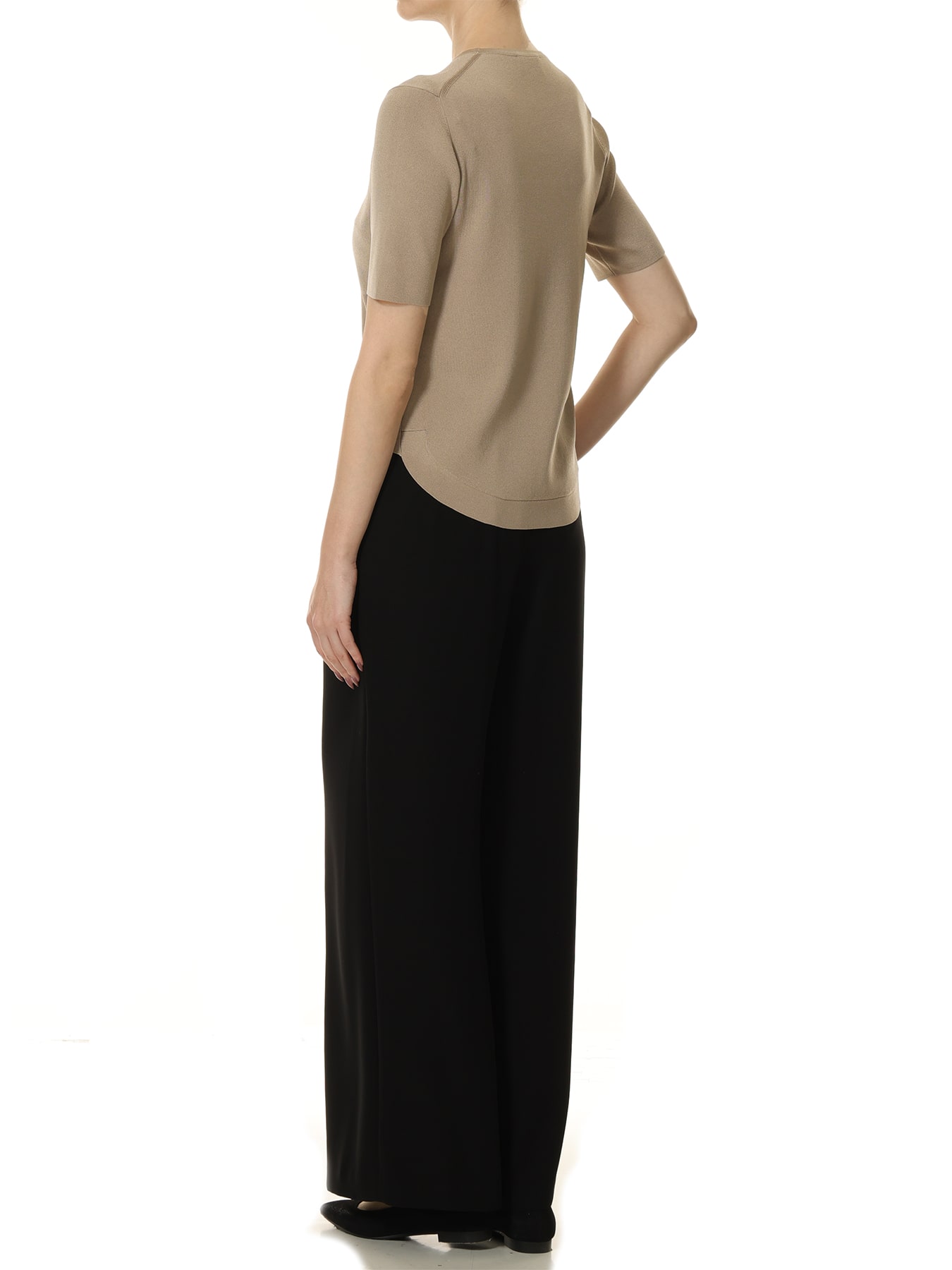 しなやかな総針編みで仕立てた、ミニマルな美しさが際立つ半袖ニット。滑らかな表面感の素材が身体のラインを拾いすぎず、エレガントでモードな印象へと導きます。無駄を削ぎ落としたクルーネックデザインが、洗練された大人の佇まいを演出。バックスタイルはラウンドカットで長めに設計し、動きに合わせて柔らかなラインを描くシルエットに。ヒップにかかる丈感がさりげなく体型をカバーし、横から見たときのバランスまで美しく整えます。シンプルだからこそ際立つカッティングが、装いにさりげない個性をプラスします。さらに、ご家庭で手洗い可能なイージーケア仕様も嬉しいポイント。デイリーに取り入れやすく、豊富なカラーバリエーションからお好みの一枚をお選びいただけます。ベーシックカラーはもちろん、ニュアンスカラーまで揃い、色違いで揃えたくなる万能さも魅力です。オンスタイルには、テーパードパンツやセンタープレスパンツと合わせて端正に。ジャケットやジレのインナーとしてもすっきり収まり、洗練されたオフィススタイルが完成します。オフの日は、ワイドパンツやロングスカートと合わせて抜け感のあるモードカジュアルに。バックのラウンドヘムを活かしたレイヤードスタイルもおすすめです。一枚で着ても、レイヤードしても様になる。ワードローブの軸となる、上質でタイムレスなニットです。 ・ご家庭で手洗いが可能 ・WHITEは透け感あり ・ジャストフィット。通常サイズをおすすめします。 ・モデル身長171cm/バスト82cm/ウエスト60cm/ヒップ88cm/Mサイズ着用 【お問い合わせ品番】 U747-002