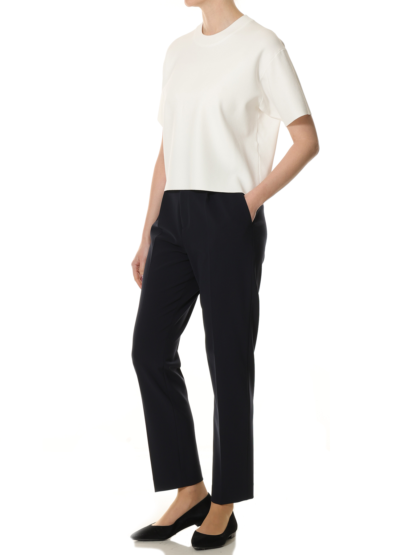 上品な表面感が魅力のミラノリブ素材で仕立てたニットプルオーバー。適度なハリと滑らかな編地が美しいシルエットを描き、ゆとりのあるフォルムでありながらも洗練された佇まいを叶えます。身体のラインを拾いすぎないリラックス感のあるシルエットに、コンパクトなネックラインと程よい丈感を組み合わせることで、シンプルながらも都会的でモダンなバランスに仕上げました。ミニマルなデザインが素材の上質さを引き立て、装いにさりげない品格を添えてくれる一着です。パンツスタイルには、テーパードパンツやセンタープレスパンツを合わせて、シャープで洗練された大人のモードスタイルに。程よくゆとりのあるシルエットがボトムをすっきりと引き立て、都会的なバランスのコーディネートが完成します。休日にはワイドパンツと合わせて、抜け感のあるリラックスモードな着こなしもおすすめです。スカートスタイルには、フレアスカートやタイトスカートを合わせることで、ニットのミニマルなデザインとのコントラストが生まれ、上品で女性らしい装いに。シンプルだからこそ様々なボトムと好相性で、オンオフ問わず幅広いスタイリングを楽しんでいただけます。 ・ご家庭で手洗い可能 ・WHITEは透け感あり ・スチーム可能 ・ゆとりのあるフィット。通常サイズをお勧めします。 ・モデル身長171cm/バスト82cm/ウエスト60cm/ヒップ88cm/Mサイズ着用 【お問い合わせ品番】 U747-003