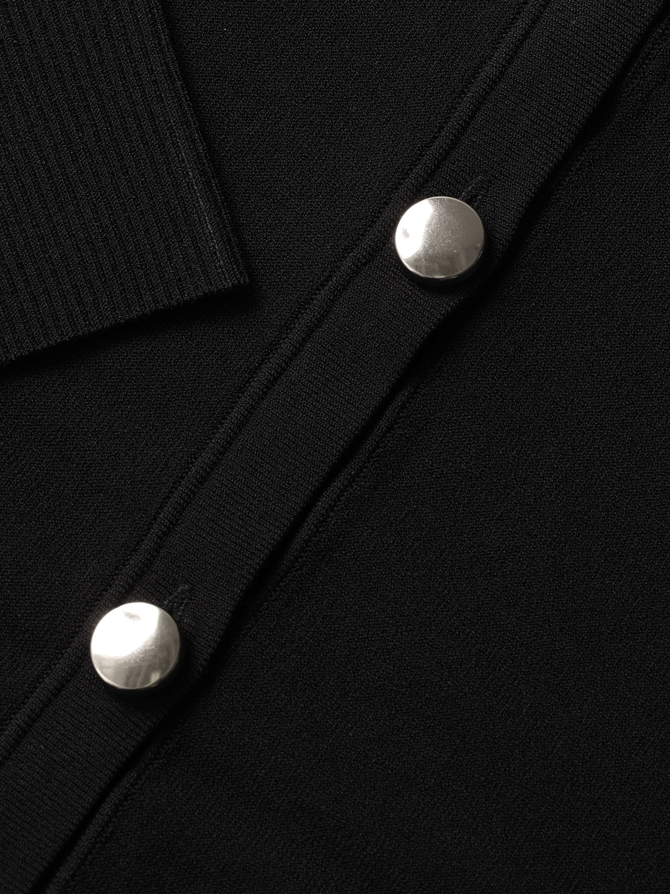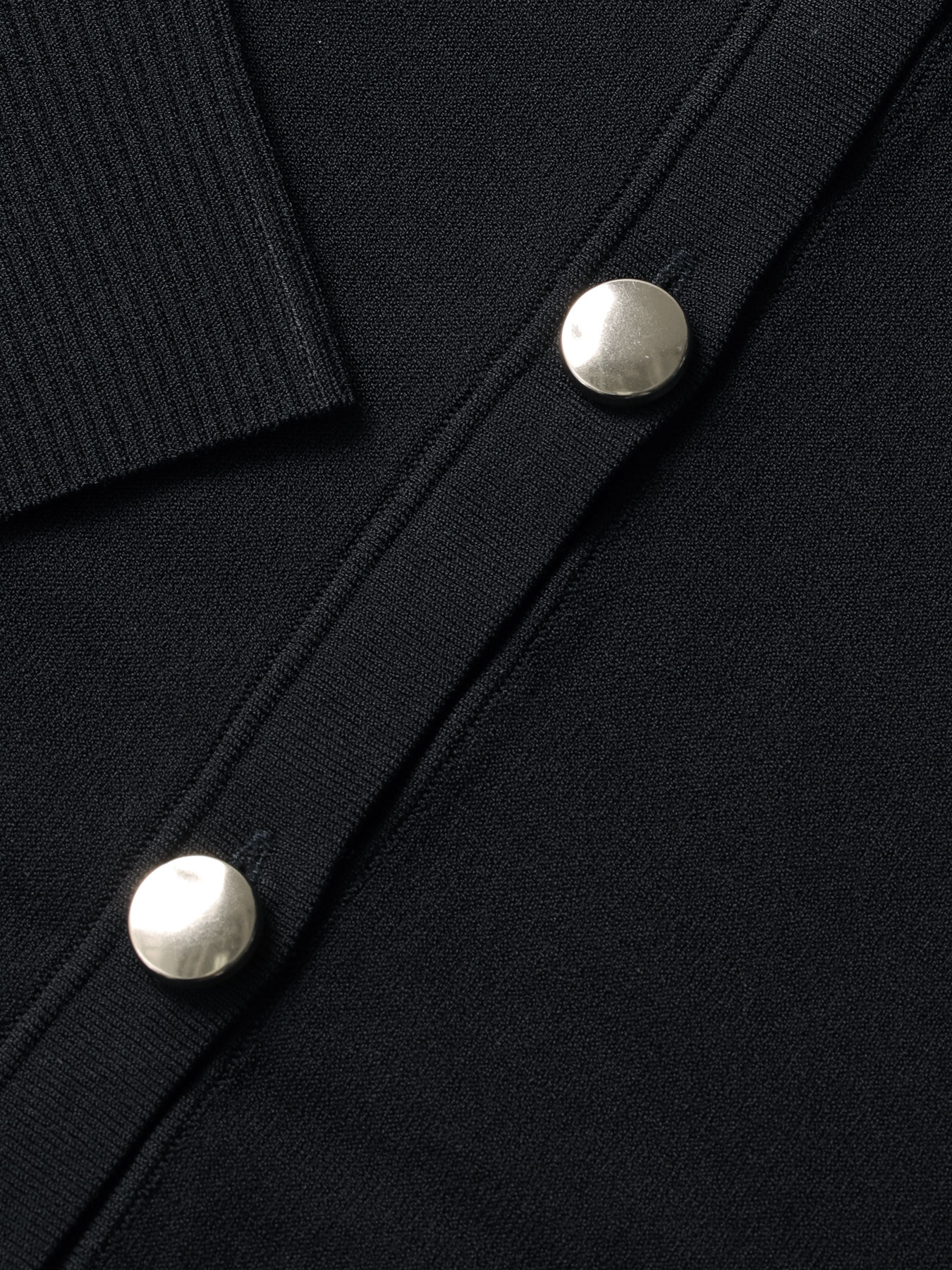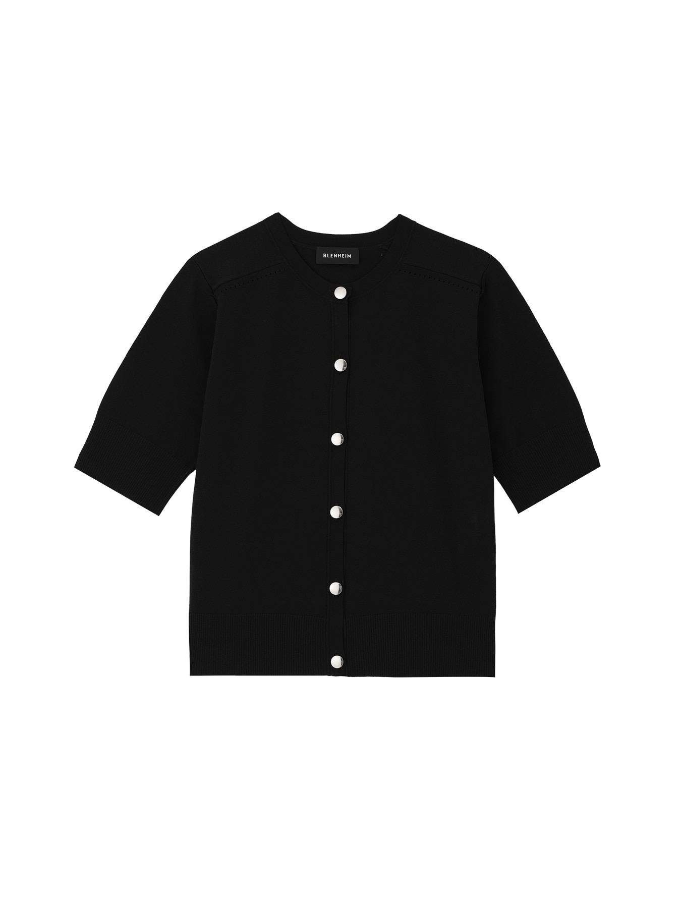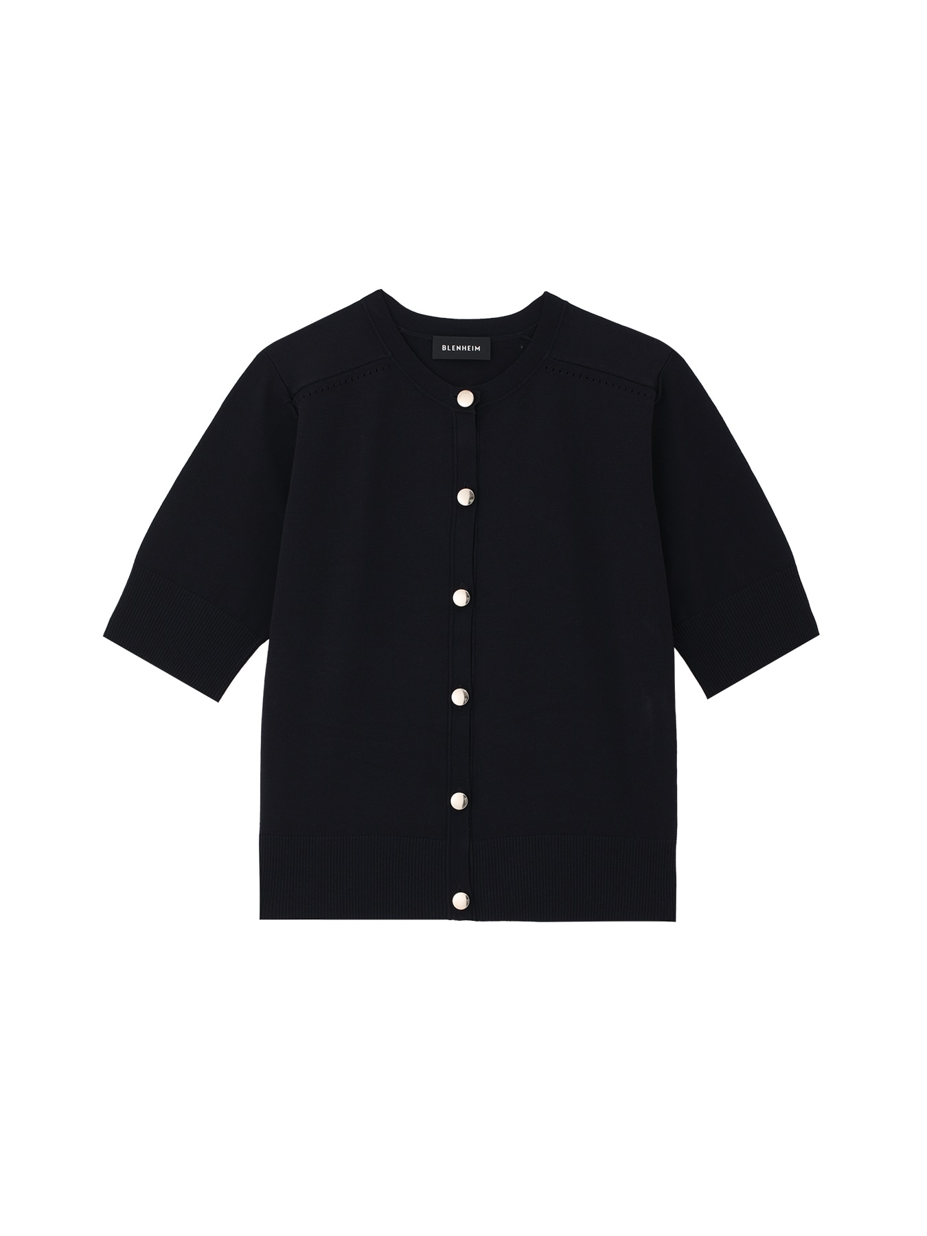 ミニマルな美しさの中に、さりげないディテールで個性を添えたニットカーディガン。肩部分に施されたアイレットデザインが繊細なアクセントとなり、シンプルながらも奥行きのある表情を演出します。コンパクトなシルエットが身体のラインを美しく引き立て、エレガントでありながらどこかモードな雰囲気を纏える一着。フロントにあしらわれたメタルボタンが、洗練された印象をさらに高めてくれます。UVカット機能を備えた素材を使用しており、日差しが気になる季節にも快適にお召しいただけるのも魅力です。スカートスタイルには、落ち感のあるフレアスカートやナロースカートと合わせることで、トップスのコンパクトさが際立ち、バランスの取れた女性らしいシルエットが完成します。ワントーンやモノトーンでまとめることで、よりモードな印象に仕上がります。パンツスタイルには、センタープレスパンツやテーパードパンツを合わせて、シャープで洗練された着こなしに。きちんと感を保ちながらも、程よい抜け感をプラスしてくれます。さらにデニムを合わせれば、カジュアルダウンしながらも上品さを損なわない、大人のためのきれいめスタイルをお楽しみいただけます。 ・ご家庭で手洗いが可能 ・UVカット加工素材 ・WHITEは透け感あり ・スチーム可能 ・ジャストフィット。通常サイズをおすすめします。 【お問い合わせ品番】 U747-007