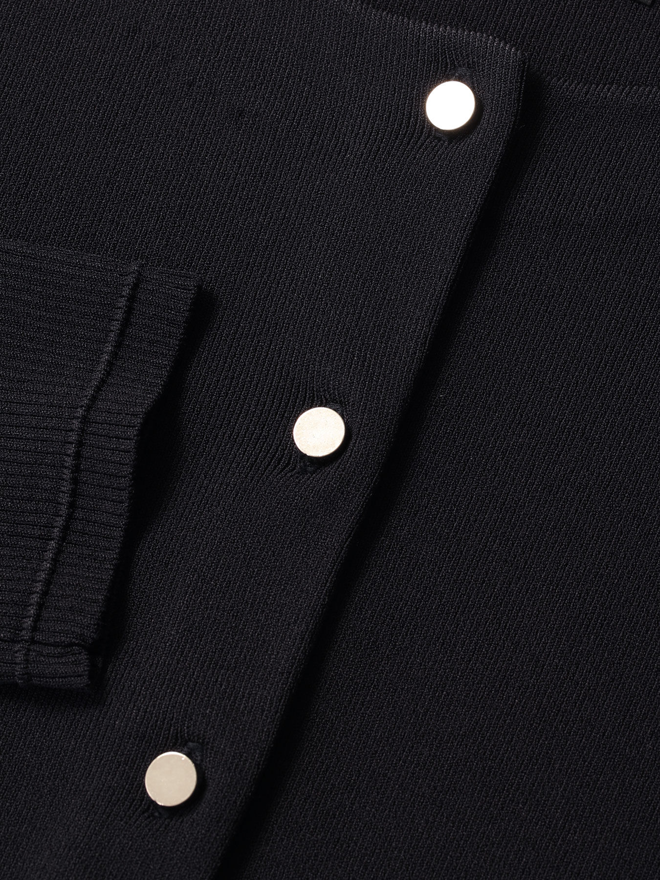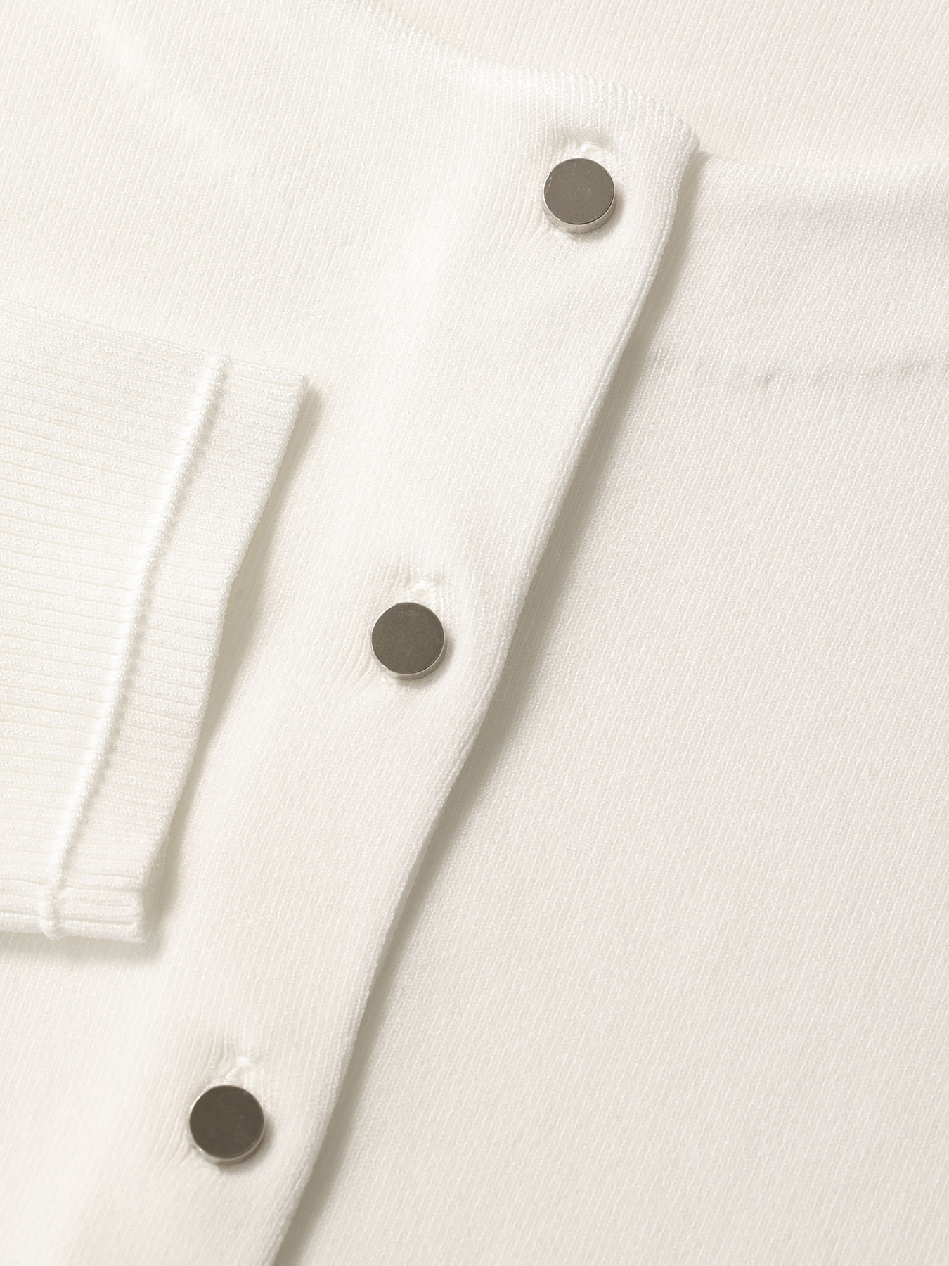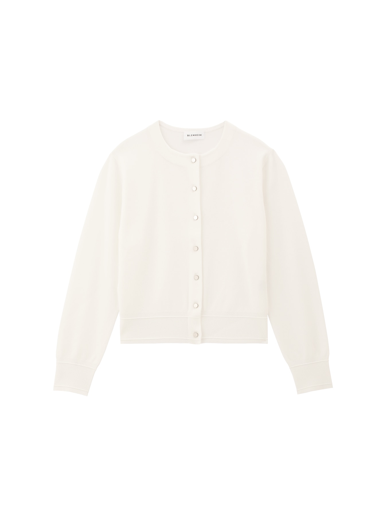 ミニマルな佇まいにさりげないアクセントを効かせた、エレガントかつモードな印象のUVカット加工が施されたニットカーディガン。すっきりとしたクルーネックに、フロントにあしらわれたメタルボタンが上品な輝きを添え、シンプルながらも洗練された存在感を放ちます。裾や袖口に施されたリブデザインが全体を程よく引き締め、コンパクトで美しいシルエットを演出。軽やかで滑らかな編み地により、快適な着心地と上品な表面感を両立。カーディガンとしてはもちろん、ボタンを閉じてトップスのように着こなすことで、よりミニマルでモードなスタイリングもお楽しみいただけます。スカートスタイルには、フレアスカートやシアースカートを合わせて、コンパクトなトップスとのバランスが際立つエレガントな装いに。ウエスト位置が高く見えることで、自然とスタイルアップも叶います。パンツスタイルには、ワイドパンツやセンタープレスパンツを合わせて、洗練された大人のモードスタイルに。トップスとして着用することで、シンプルながらも印象的な着こなしが完成し、オンオフ問わず幅広く活躍する一着です。 ・ご家庭で手洗いが可能 ・UVカット加工素材 ・WHITEは透け感あり ・フロントボタン開き ・スチーム可能 ・ジャストフィット。通常サイズをおすすめします。 ・モデル身長171cm/バスト82cm/ウエスト60cm/ヒップ88cm/Mサイズ着用 【お問い合わせ番号】 U748-001