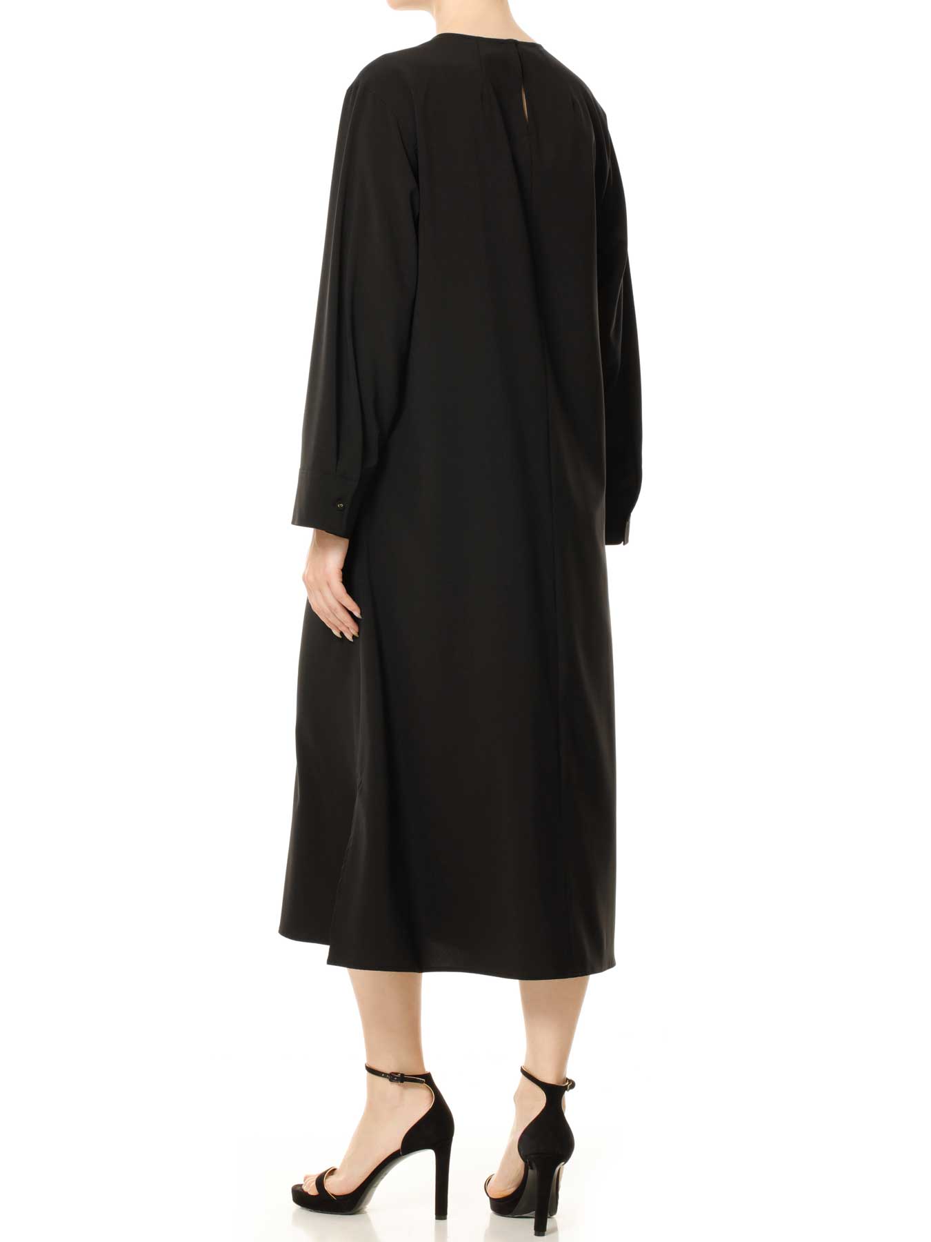 身幅をゆったりと取ったリラックスシルエットが魅力のワンピース。シルクのような質感が動きに合わせて光沢を持ち、上品な佇まいです。大きめのカフスデザインがモード感を強めてくれるので、1枚でさらりとお召しいただくだけでお洒落に着こなしていただけます。 ・裏地なしの1枚仕立て ・脇シームポケット付き ・ご家庭で手洗い可能 ・スチーム可能 ・モデル身長171cm/バスト82cm/ウエスト60cm/ヒップ88cm/Sサイズ着用 【お問い合わせ品番】 U935-007