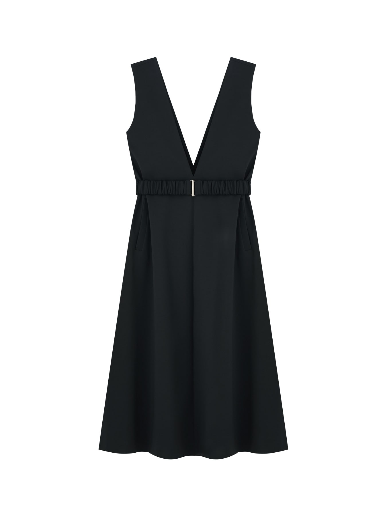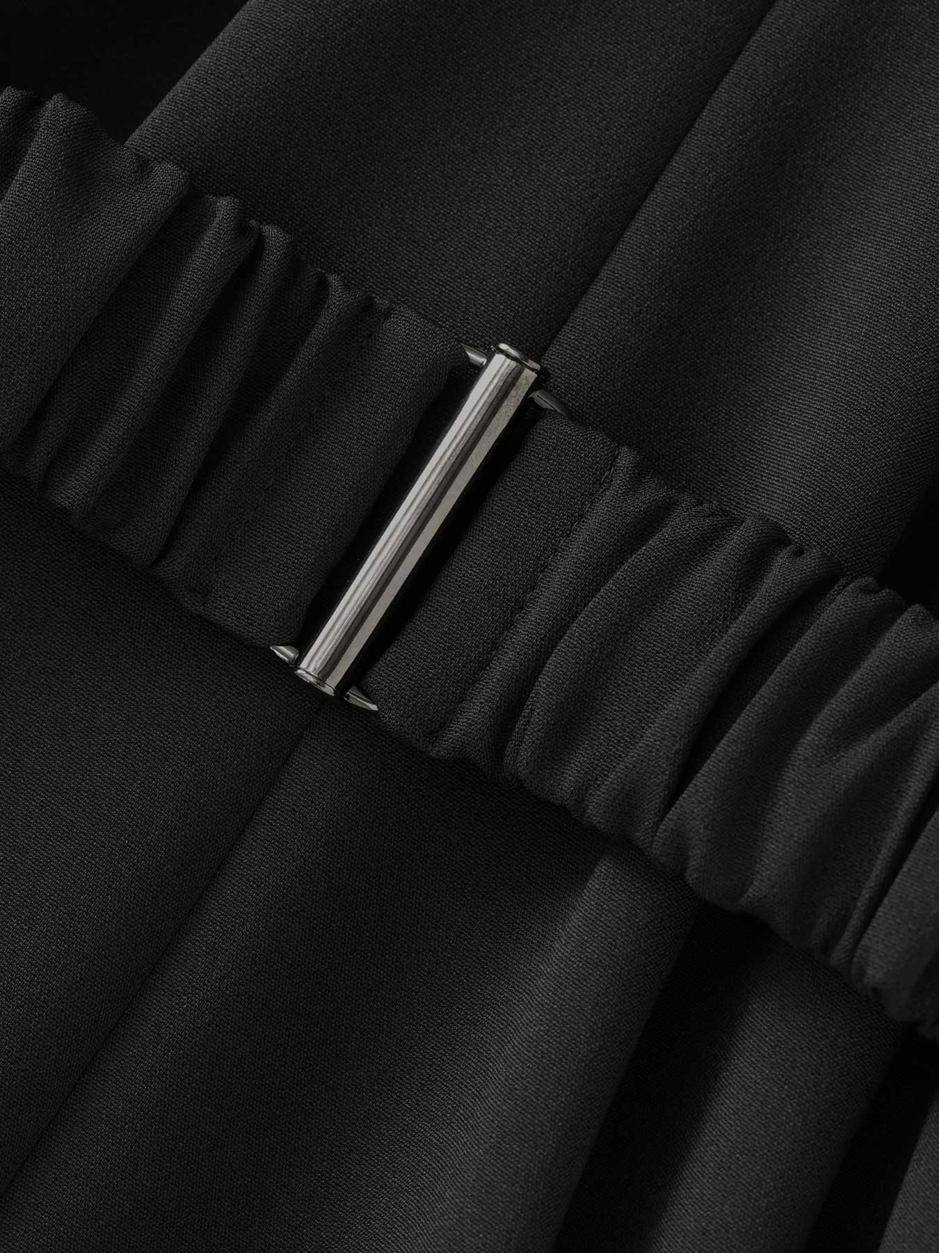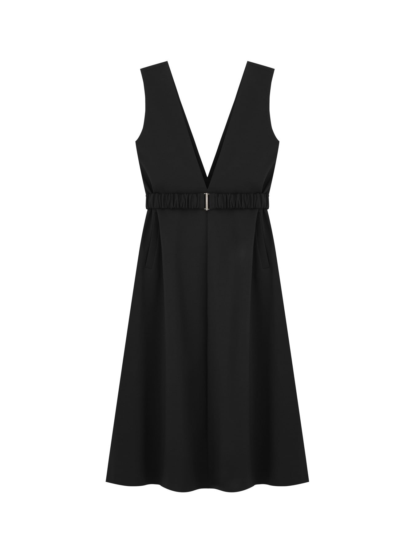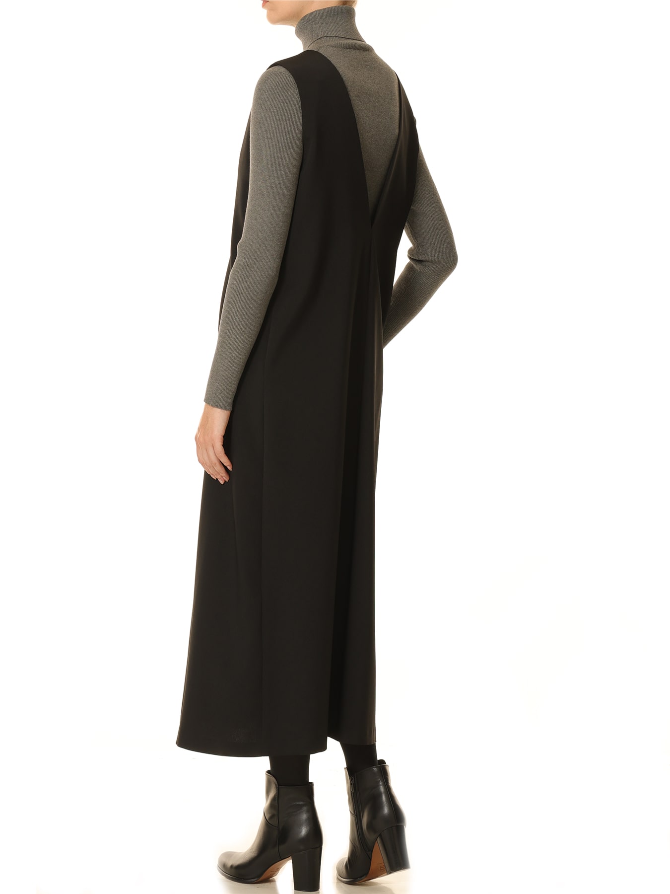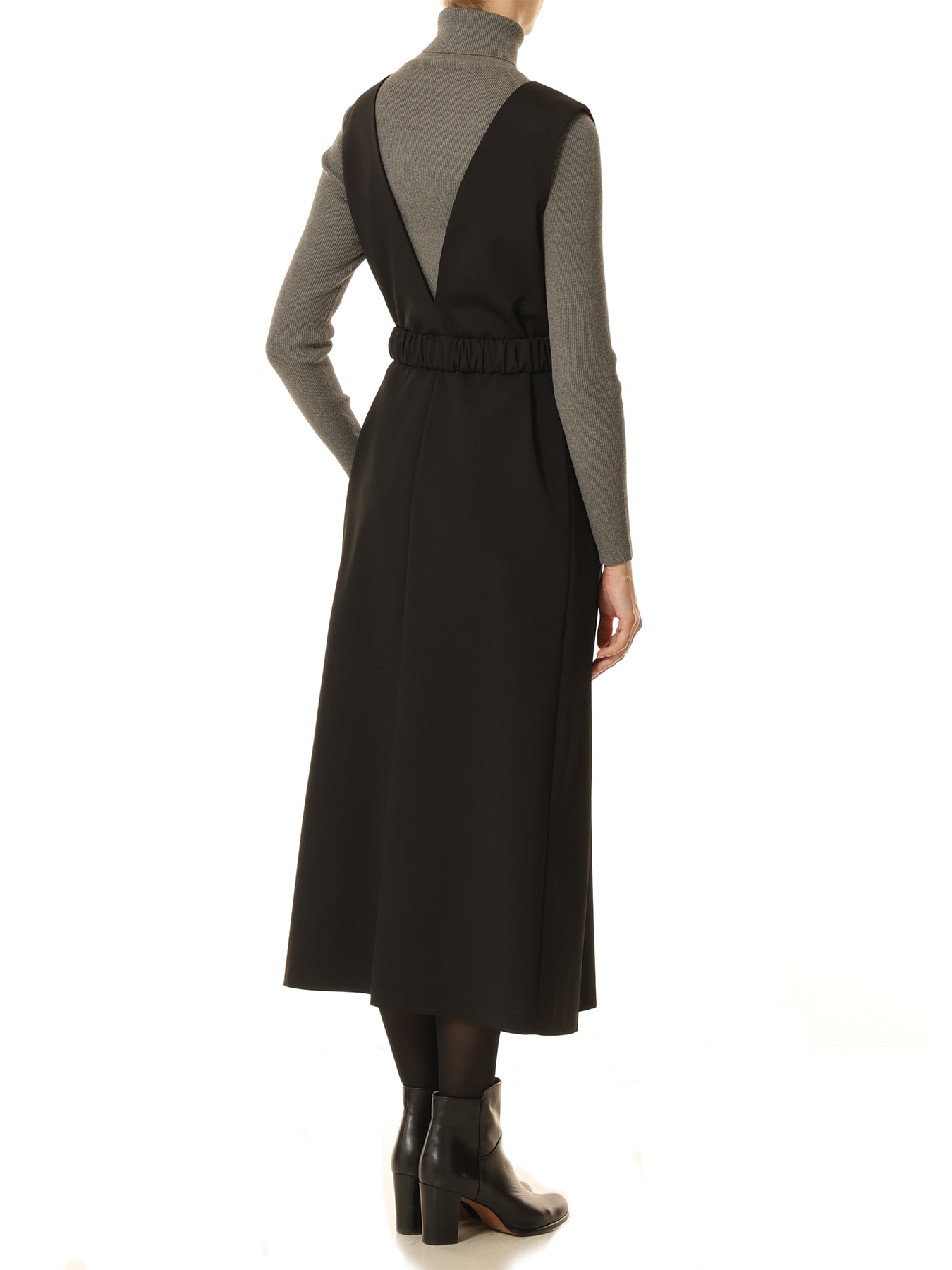 深いVネックがモードな印象を引き立てるジャンパースカート。美しい光沢感を持つダブルクロス素材を使用し、しなやかさと上品さを兼ね備えた仕上がりです。ウエストには取り外し可能な共布ゴムベルトを配し、シルエットにメリハリをプラス。インナーにタートルニットを合わせればシックに、ブラウスを重ねればフェミニンにと、着こなし次第で多彩な表情を楽しめます。デイリーからお出かけまで幅広く活躍し、モードとエレガントを兼ね備えた大人のスタイルを叶える一枚です。 ・ご家庭で手洗い可能 ・ポケットあり ・ファスナー開きなし ・ジャストフィット。通常サイズをお勧めします。 【お問い合わせ品番】 U946-001