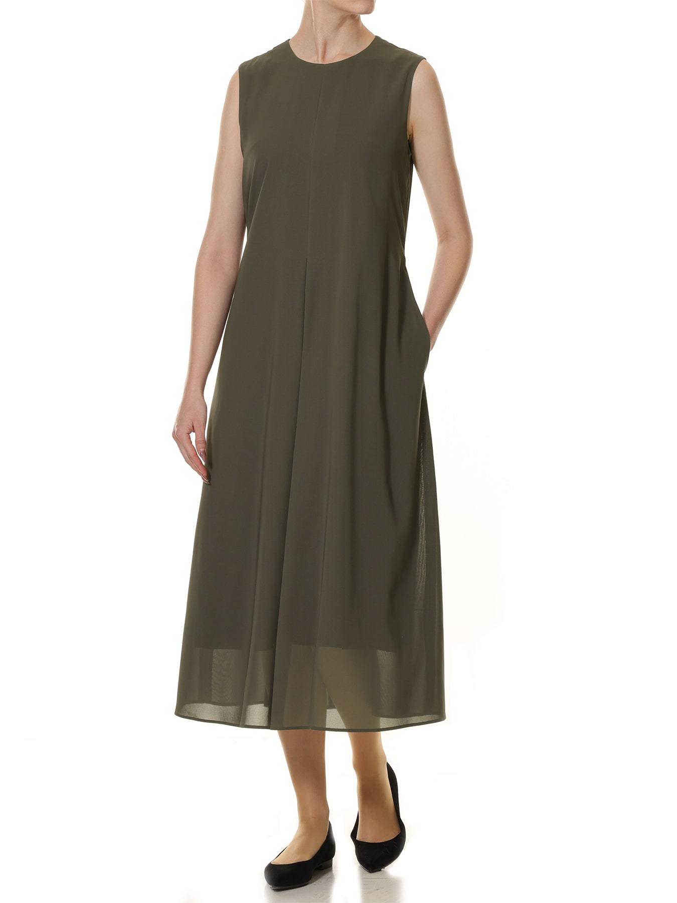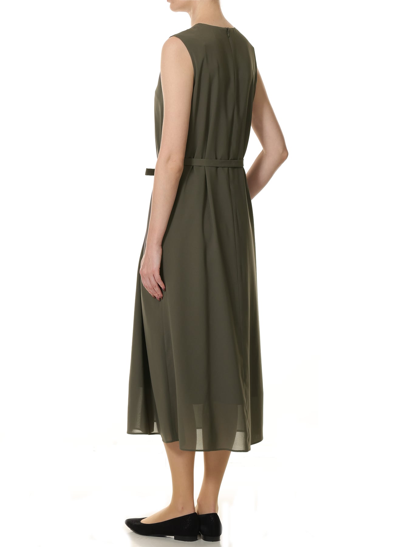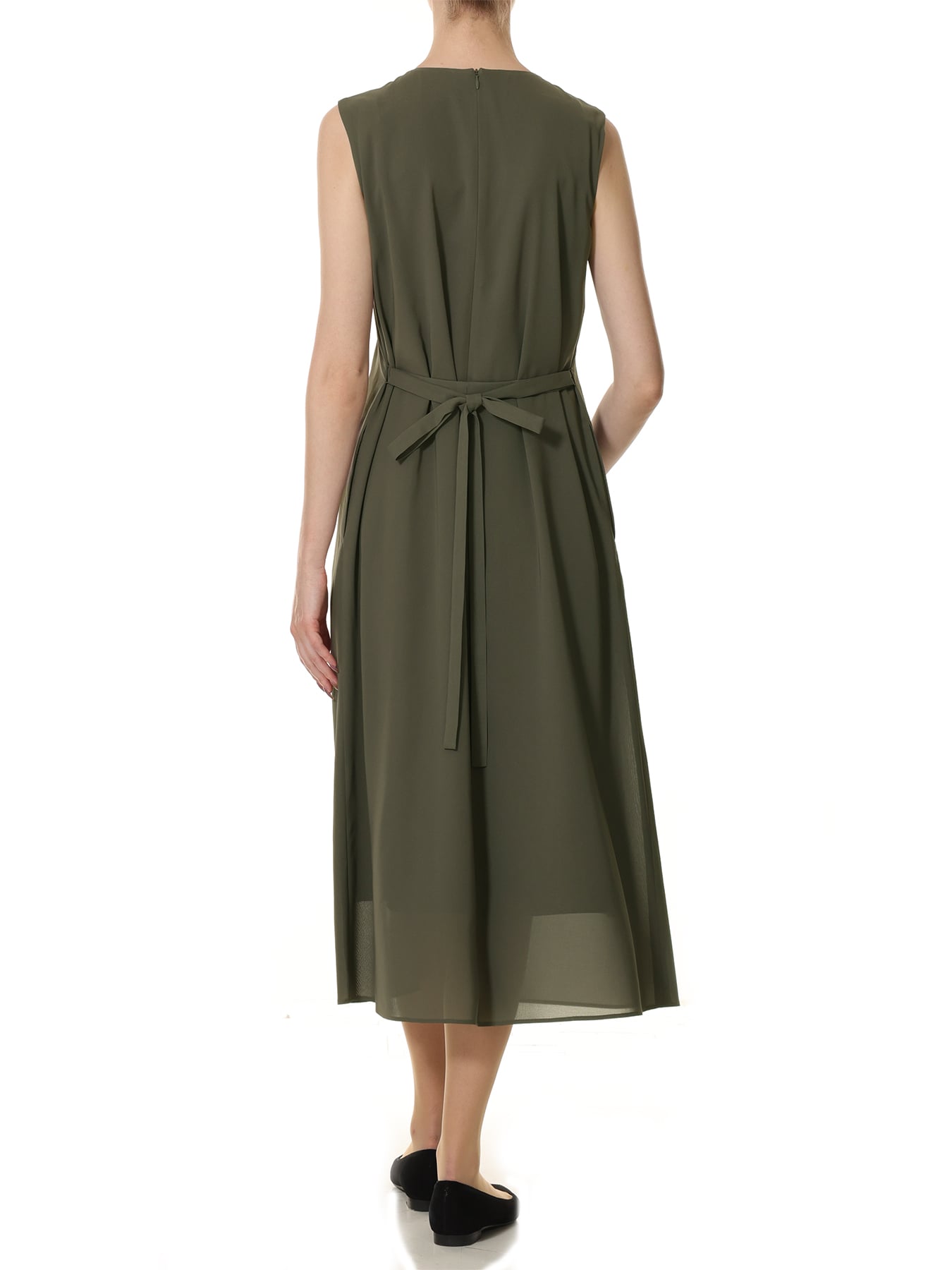 軽やかで上品な雰囲気を纏う、エレガントなノースリーブワンピース。ドライタッチでさらりとした風合いが魅力のボイル素材を使用し、空気を含むような軽やかな着心地を実現しました。程よく透け感のある素材が生み出す柔らかな表情が、動くたびに優雅なニュアンスを演出します。フロントには縦のラインを意識したタックデザインを施し、シンプルながらも洗練された立体感のあるシルエットに。さらにウエストには共布のリボンベルトを通しており、結び方によってシルエットの変化を楽しめるのも魅力です。ウエストマークすれば女性らしいメリハリのある印象に、リボンを外したり緩めたりすればリラックス感のあるエレガントなシルエットでお召しいただけます。オンスタイルには、ウエストリボンをきゅっと結んで美しいフィット&フレアラインを作り、パンプスや華奢なサンダルを合わせたきちんと感のある装いがおすすめ。ジャケットやカーディガンを羽織れば、オフィスやきちんとしたシーンにもふさわしい上品なスタイルが完成します。オフスタイルでは、リボンをラフに結ぶことでリラックス感のある軽やかな着こなしに。フラットシューズやサンダルを合わせれば、休日のお出かけや食事シーンにもぴったりの大人のエレガントカジュアルが楽しめます。シンプルながらも着こなしの幅が広く、オンオフ問わず活躍する一着です。 ・ご家庭で手洗い可能 ・裏地あり ・バックコンシールファスナー開き ・ポケットあり ・両脇ベルトループあり ・表地は透け感あり ・スチーム可能 ・ジャストフィット。通常サイズをお勧めします。 ・モデル身長171cm/バスト82cm/ウエスト60cm/ヒップ88cm/Mサイズ着用 【お問い合わせ品番】 U947-003