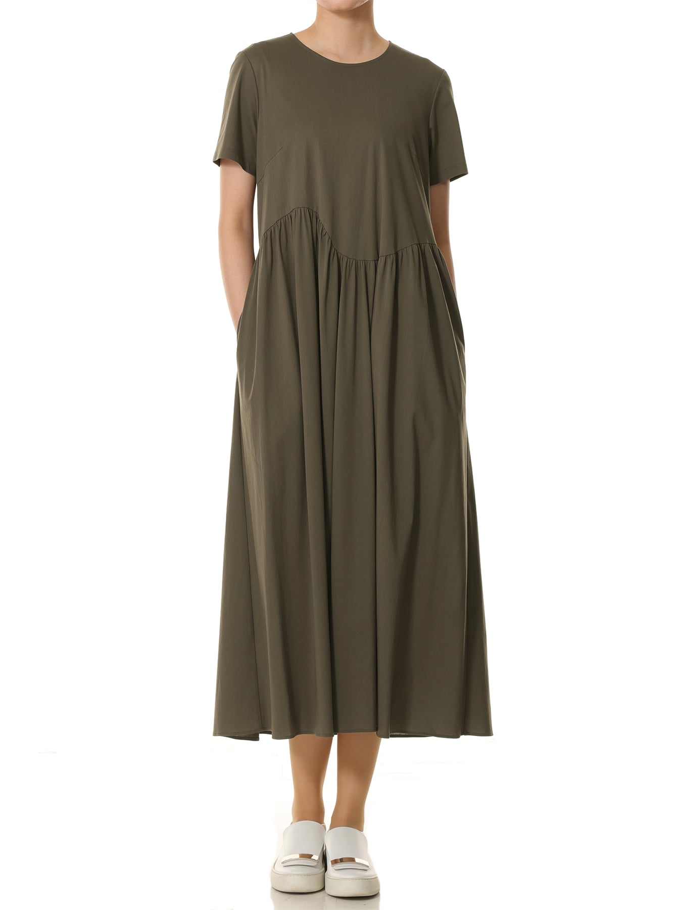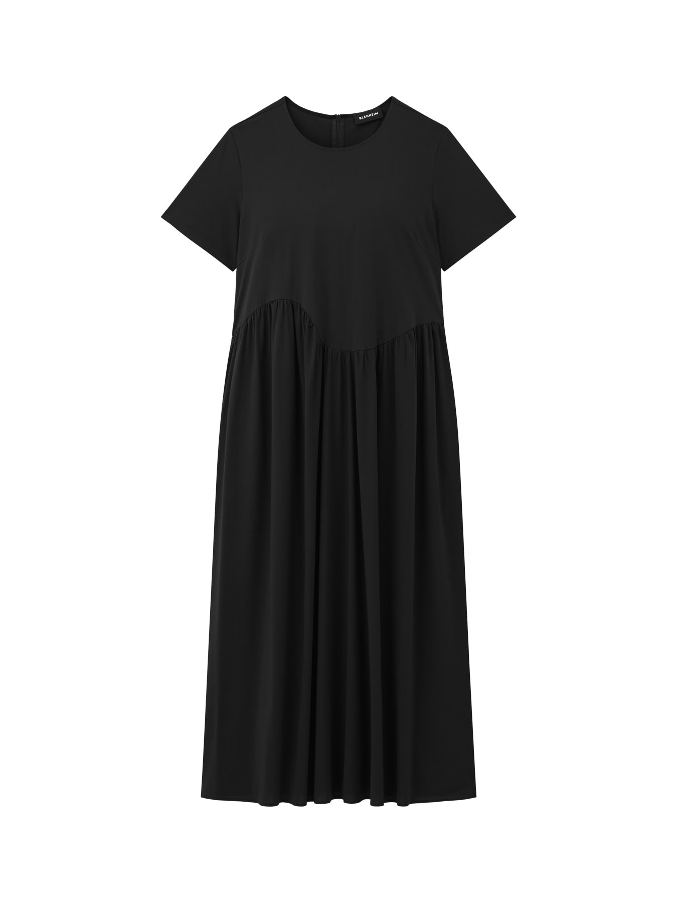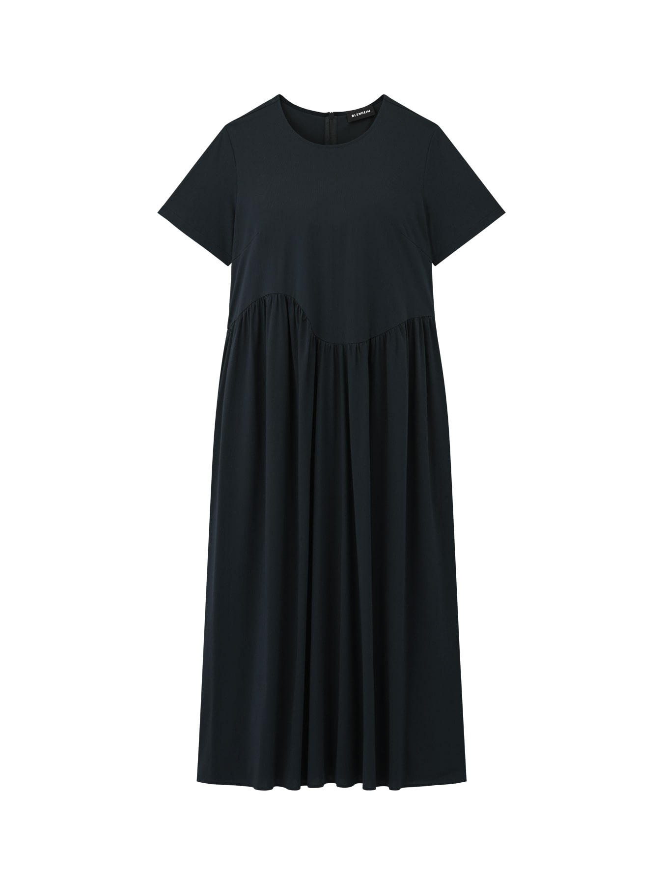 しなやかな落ち感と構築的なデザインが調和した、エレガントかつモードな印象のワンピース。ウエストの切替部分に施されたアシンメトリーなラインが、視線を引きつけるアクセントとなり、シンプルな中に洗練された個性を添えます。自然に広がるドレープが動きに合わせて美しく揺れ、軽やかで女性らしいシルエットを演出します。コットンベースのトリコット編み素材を使用し、柔らかさと伸縮性を兼ね備えた快適な着心地も魅力。程よいハリとしなやかさが共存し、日常使いしやすい一着に仕上がっています。デイリーシーンには、フラットサンダルやスニーカーを合わせてリラックス感のある着こなしに。シンプルなバッグを添えることで、抜け感のある大人のカジュアルスタイルが完成します。オフィスやきちんとしたシーンには、レザーのパンプスやミニマルなバッグを合わせて、モード感を活かした洗練された装いに。ジャケットやカーディガンを羽織ることで、より端正な印象に仕上がります。ワントーンでまとめることで、より一層都会的で洗練された雰囲気をお楽しみいただけます。 ・ご家庭で手洗いが可能 ・ポケットあり ・バックコンシールファスナー開き ・スチーム可能 ・ややゆとりのあるフィット。通常サイズをおすすめします。 ・モデル身長170cm/バスト82cm/ウエスト59cm/ヒップ87cm/Mサイズ着用 【お問い合わせ品番】 U947-006